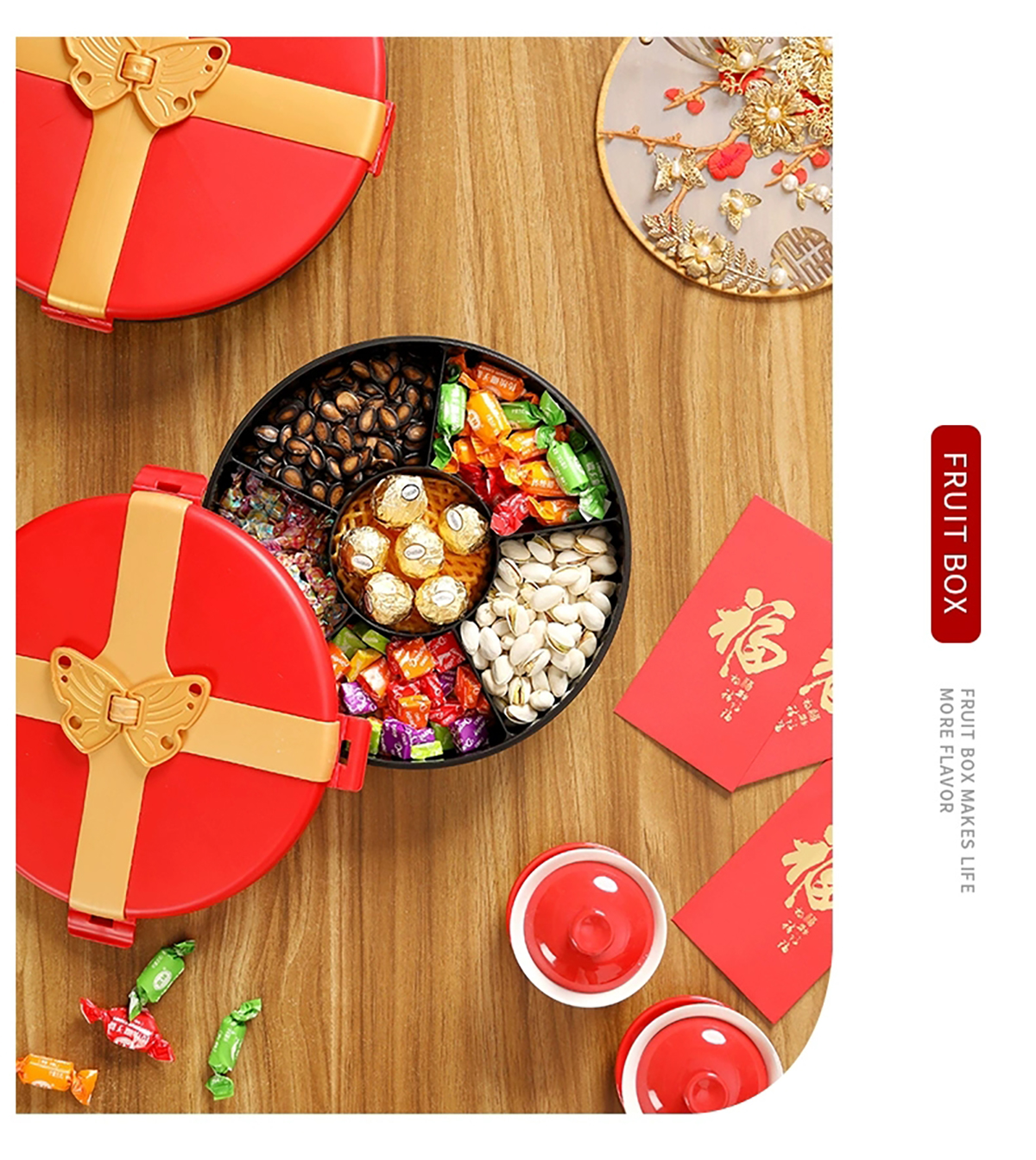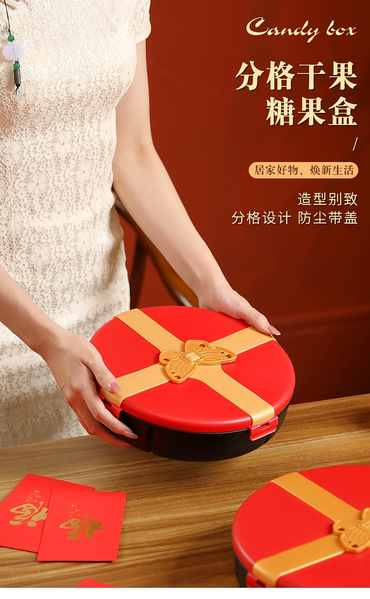 小號(hào)/大號(hào)蝴蝶結(jié)糖果盒(紅蓋紅底 紅蓋黑底)