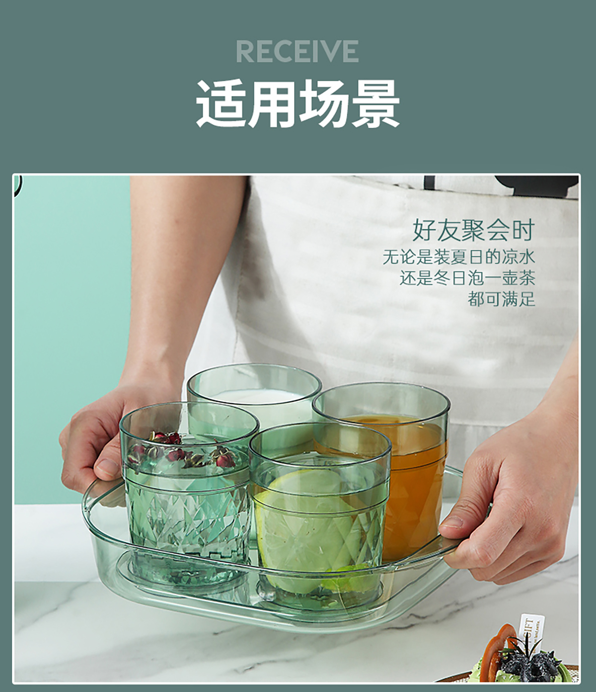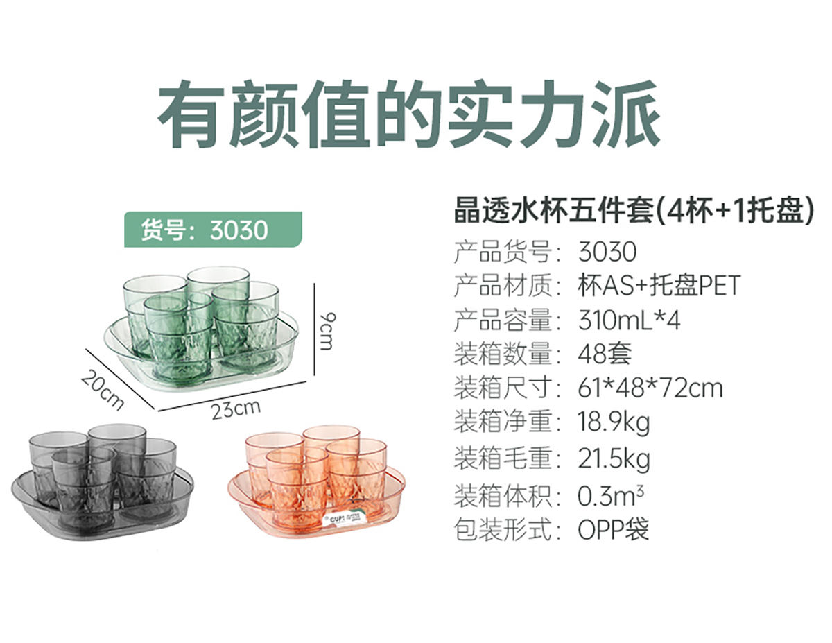 晶透水杯套裝(4杯+托盤)310mlx4