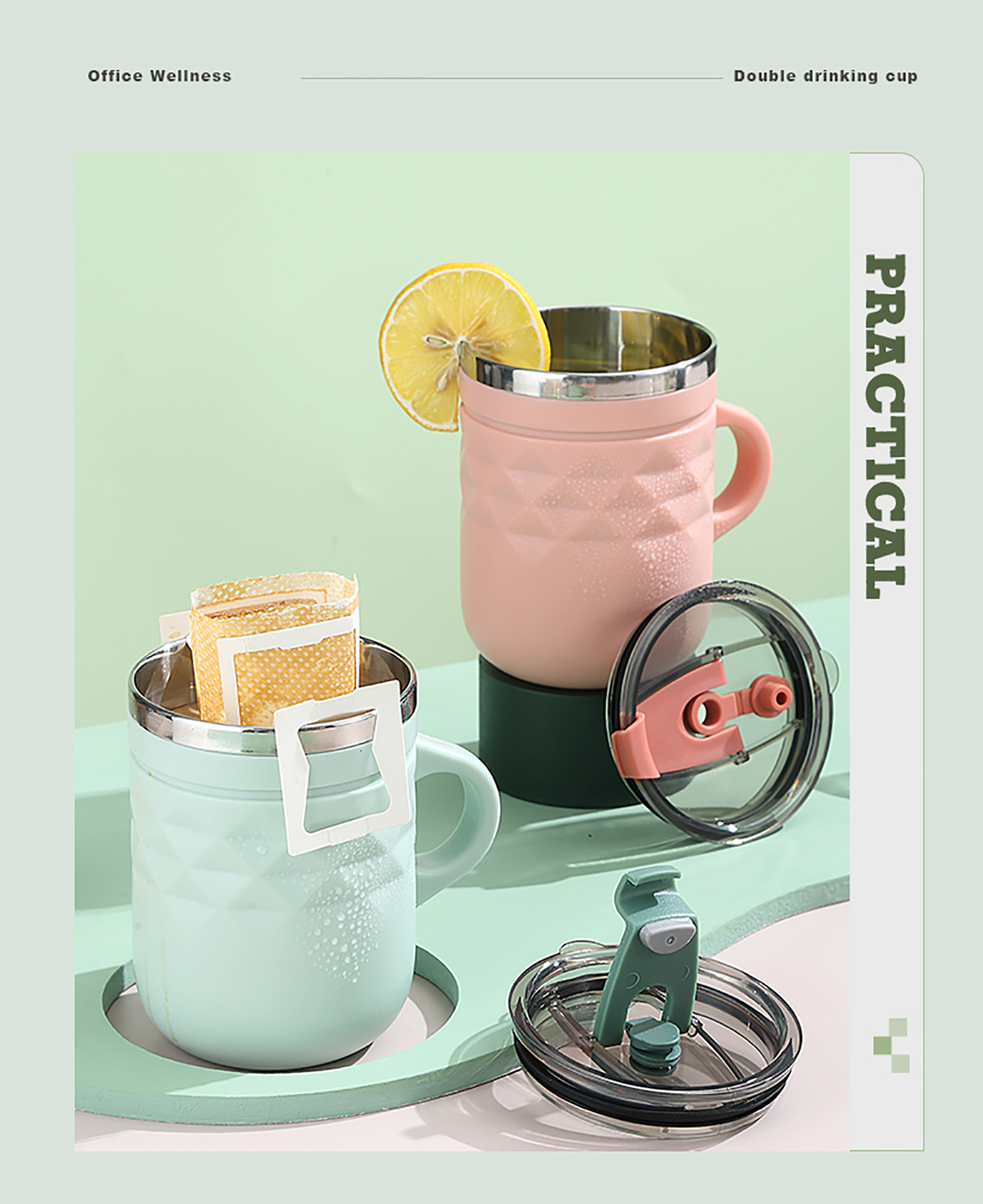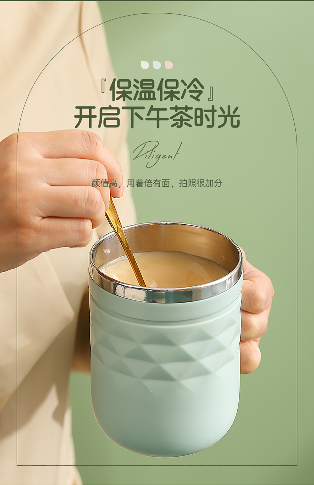 格紋不銹鋼雙飲杯400ml