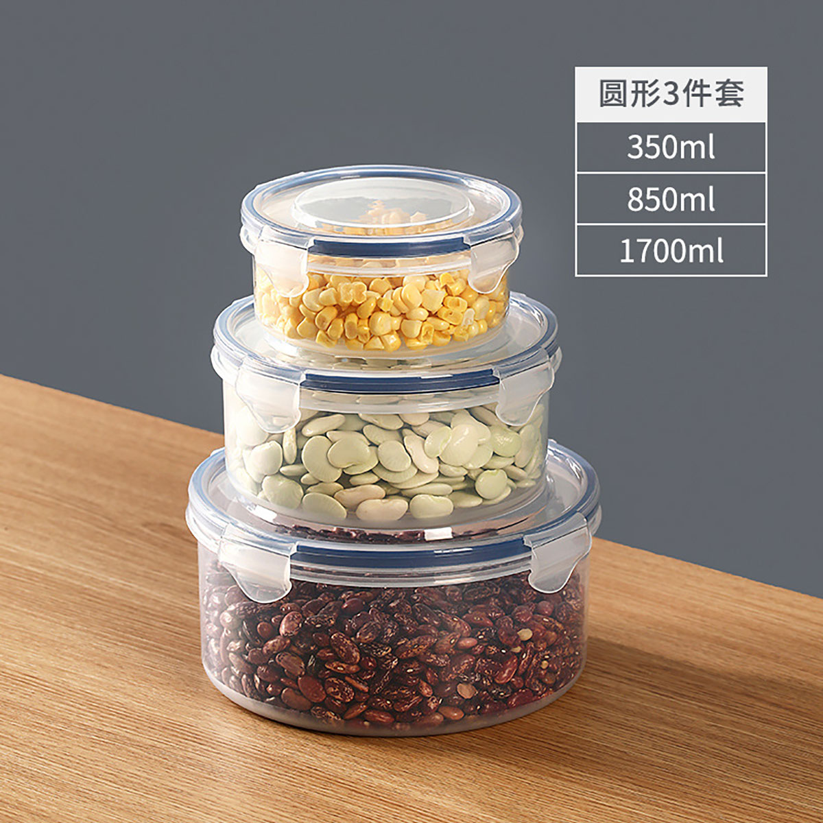 美時(shí)圓形保鮮盒(小350ml/中850ml/大1700ml)