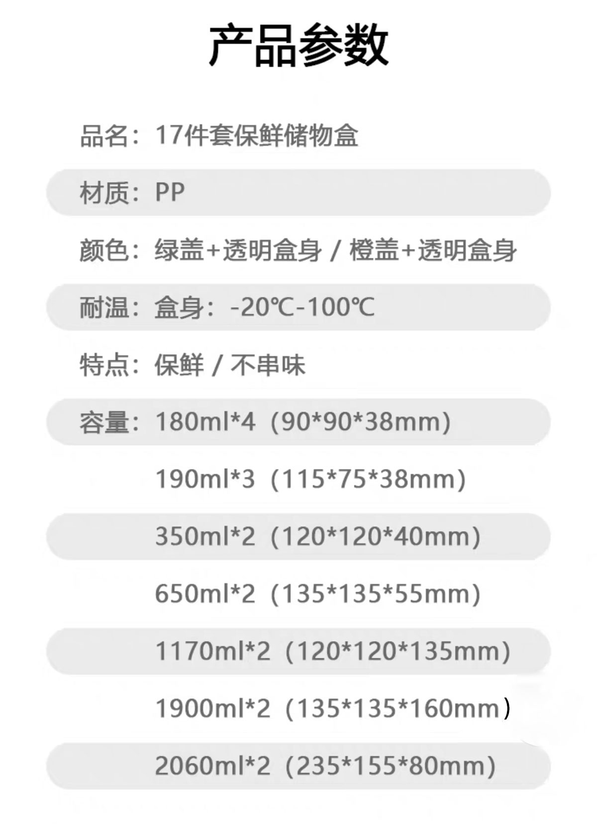 17件套帶蓋保鮮盒