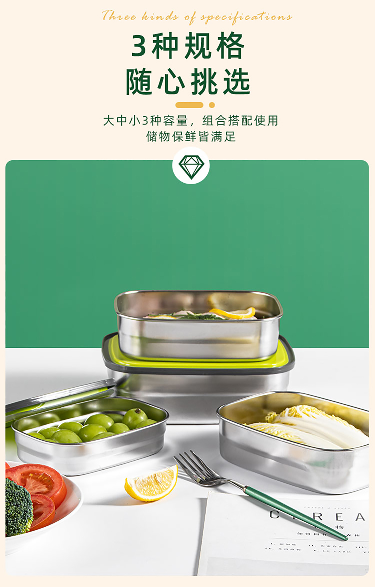 長(zhǎng)方形不銹鋼保鮮盒(小/中/大)