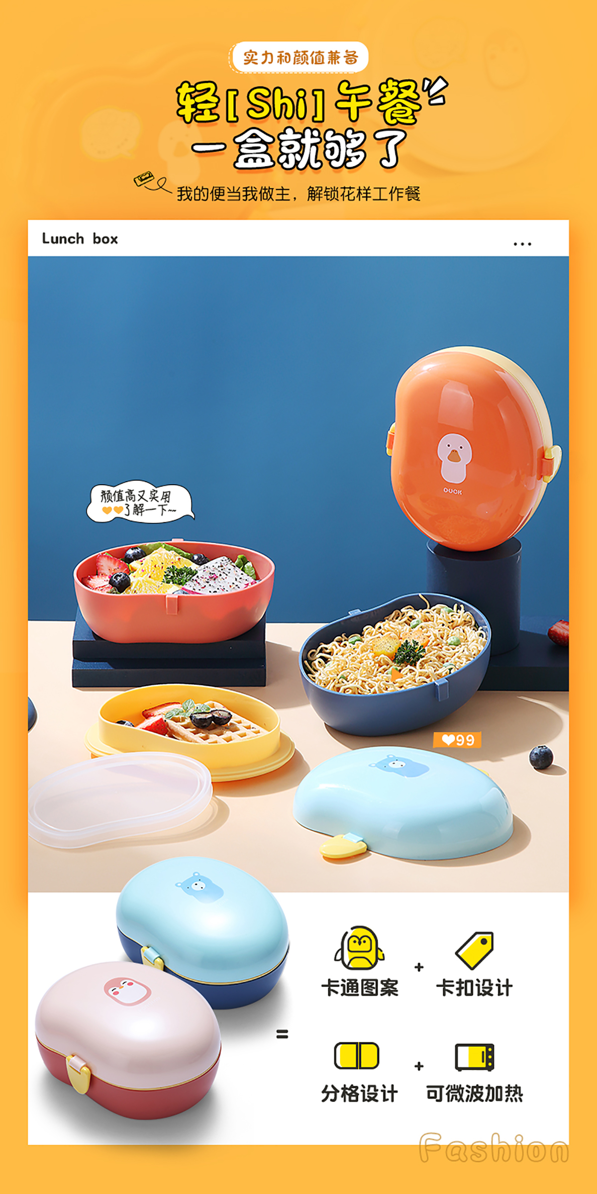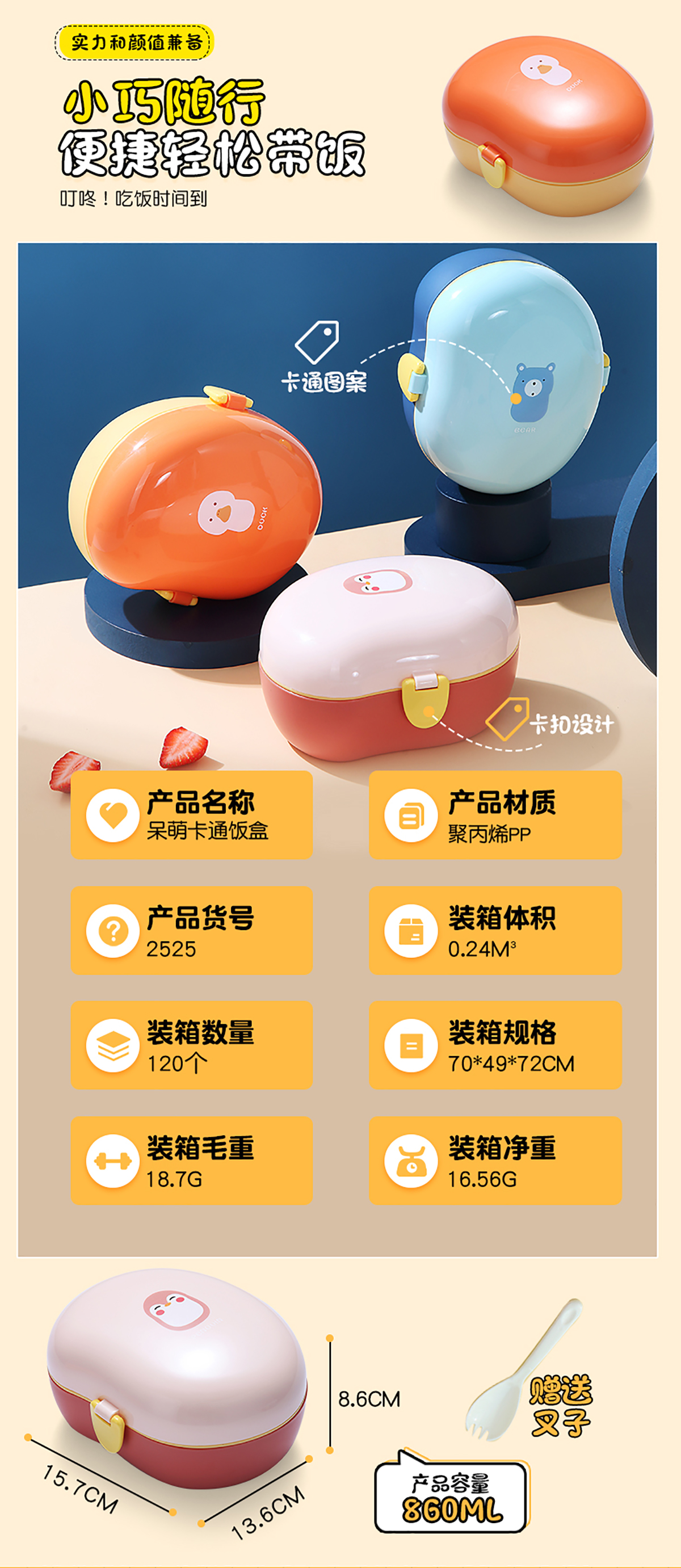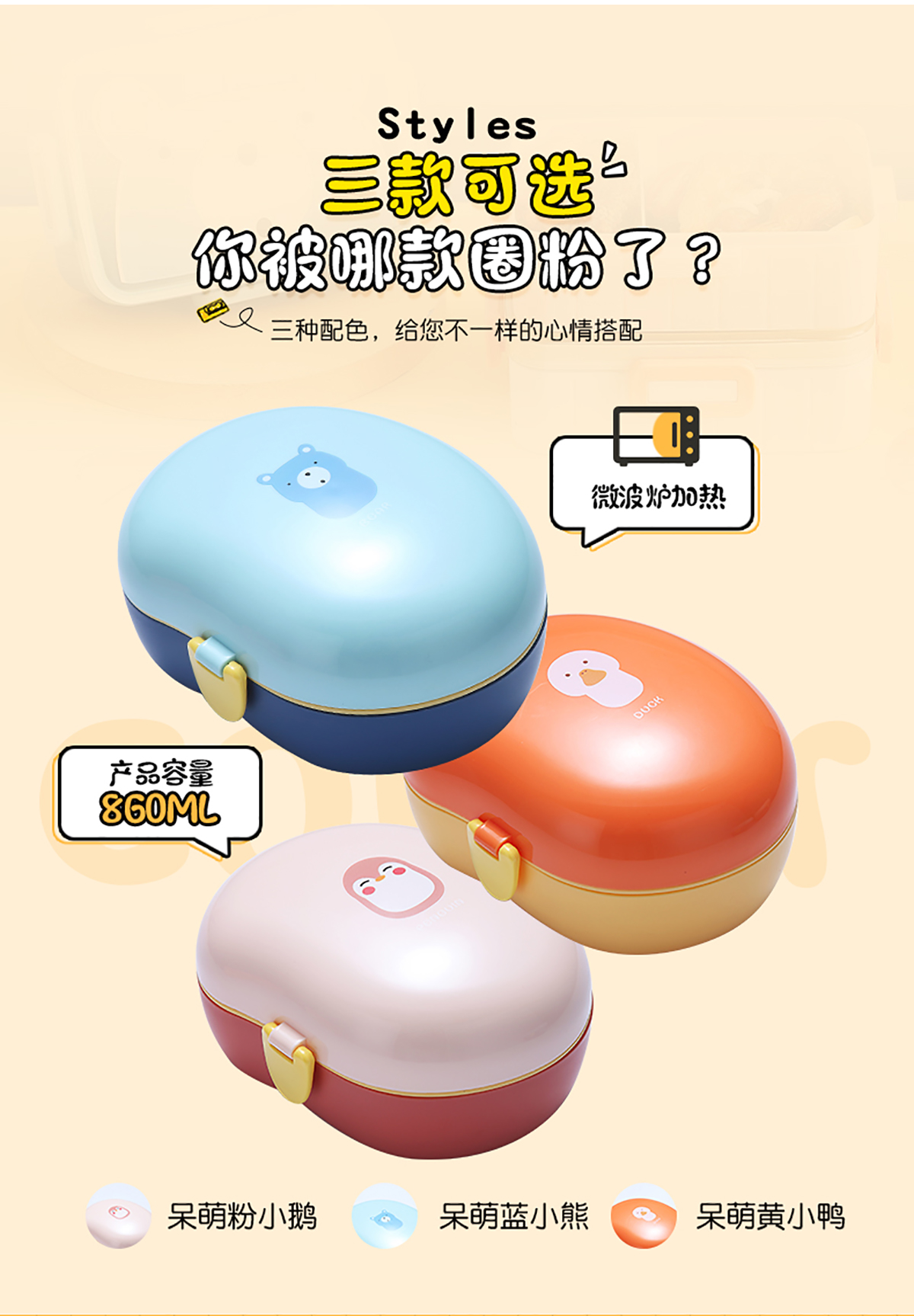 860ml呆萌卡通飯盒