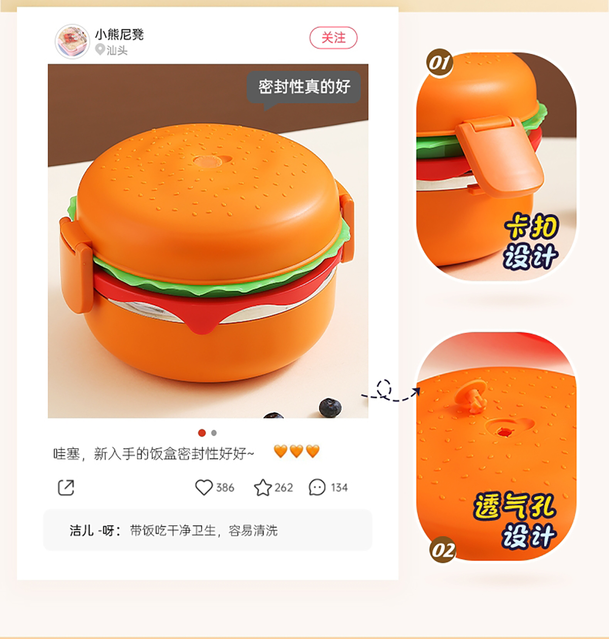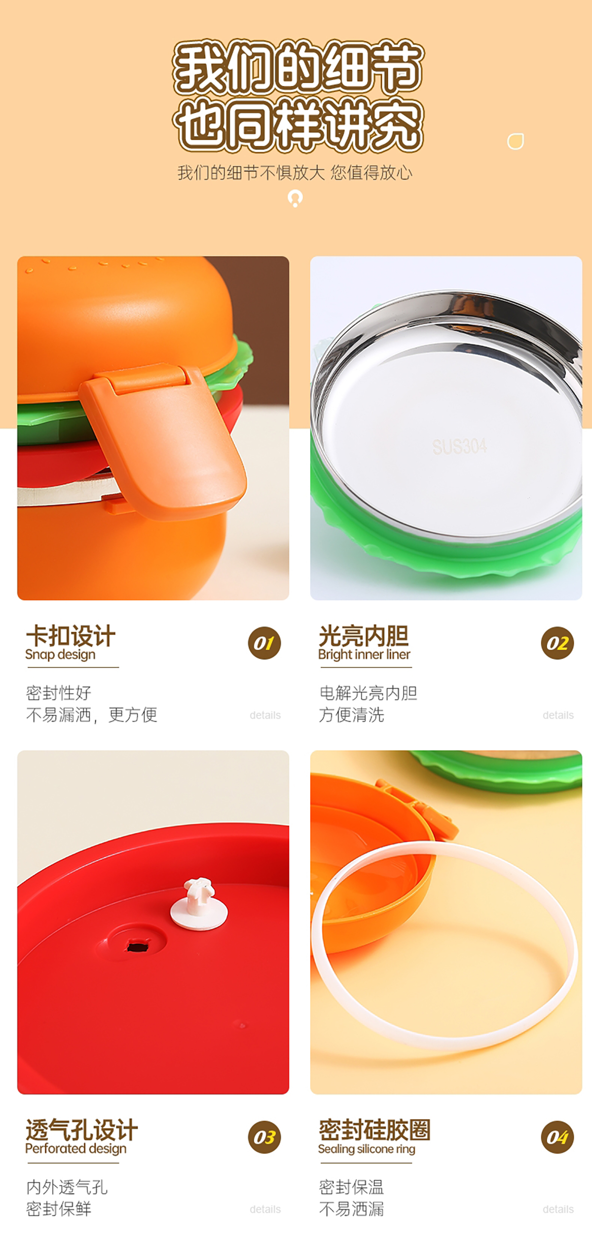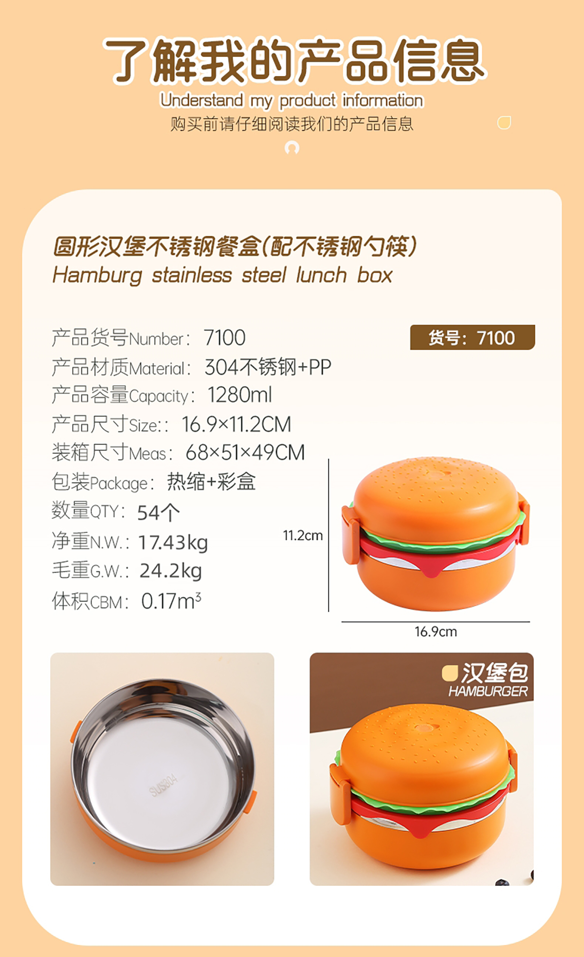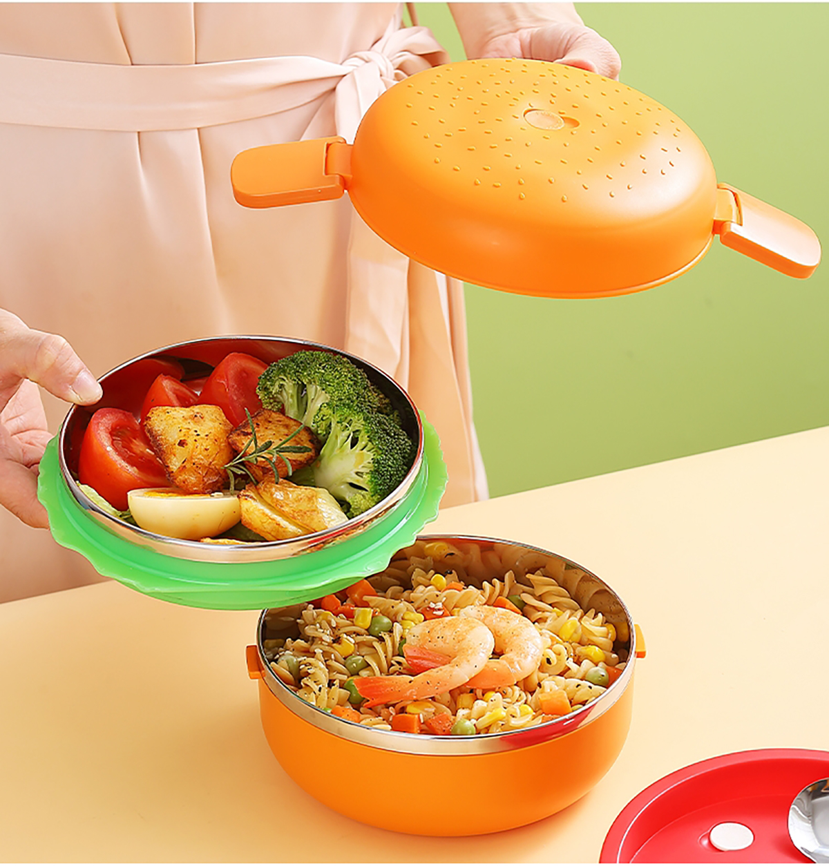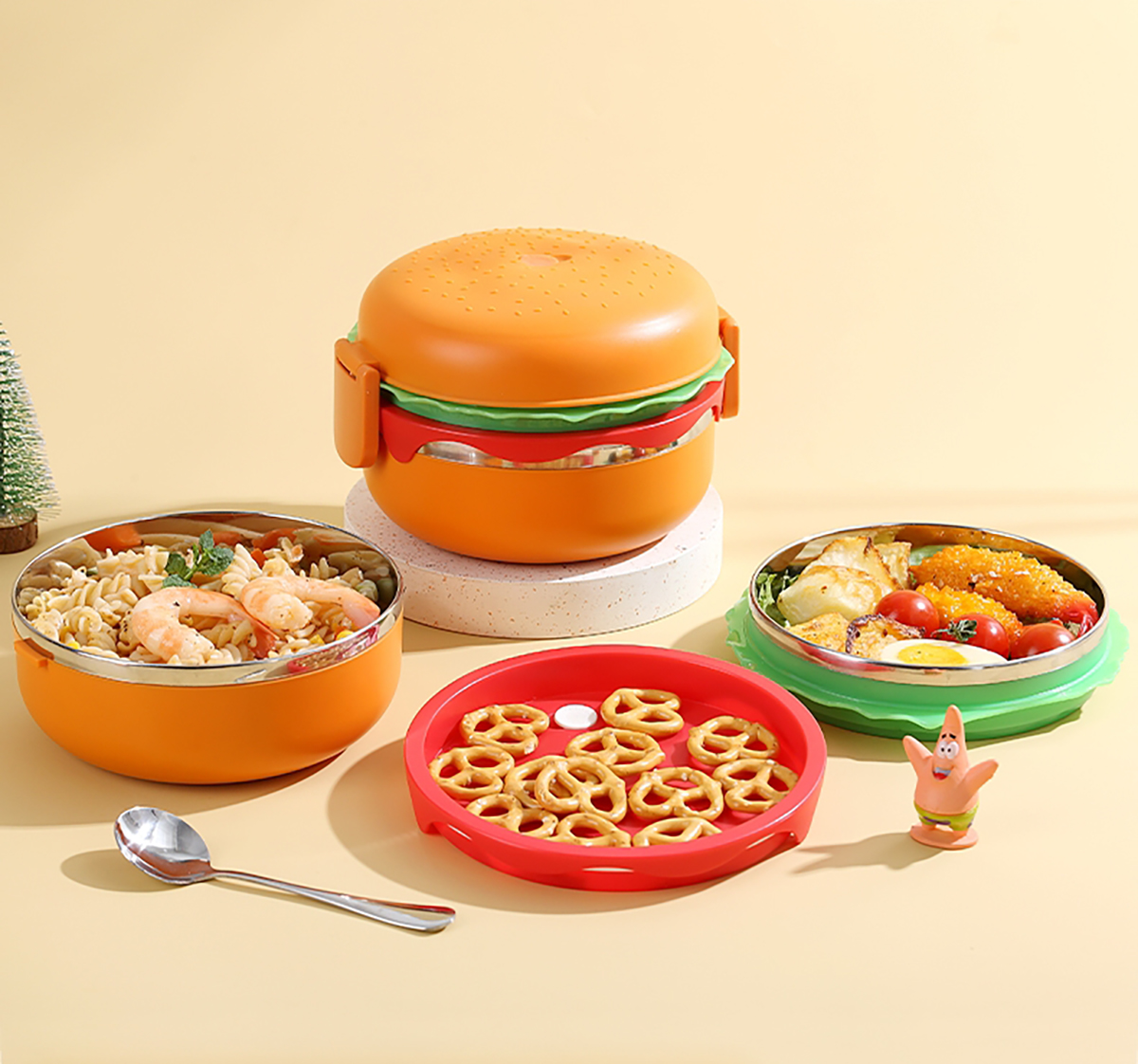 圓形漢堡不銹鋼餐盒(配不銹鋼勺筷)