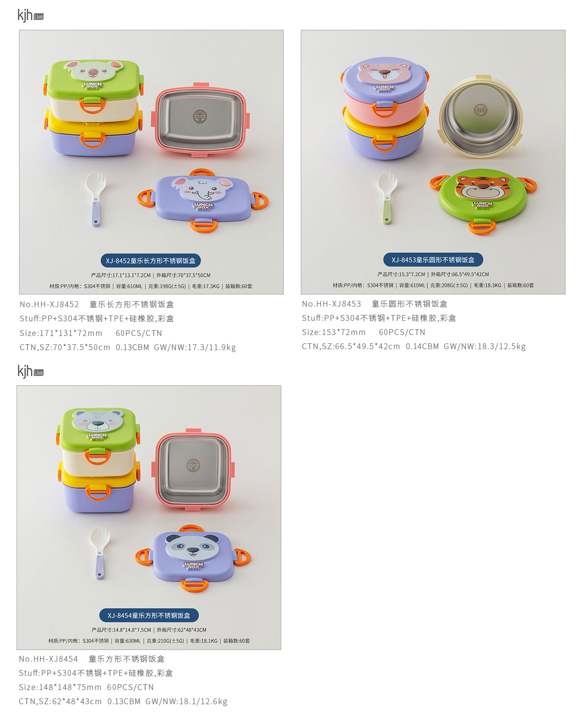 童樂長(zhǎng)方形/圓形/方形不銹鋼飯盒