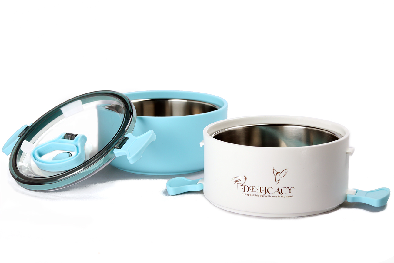 可伊圓形不銹鋼雙層便當(dāng)盒(中精裝)