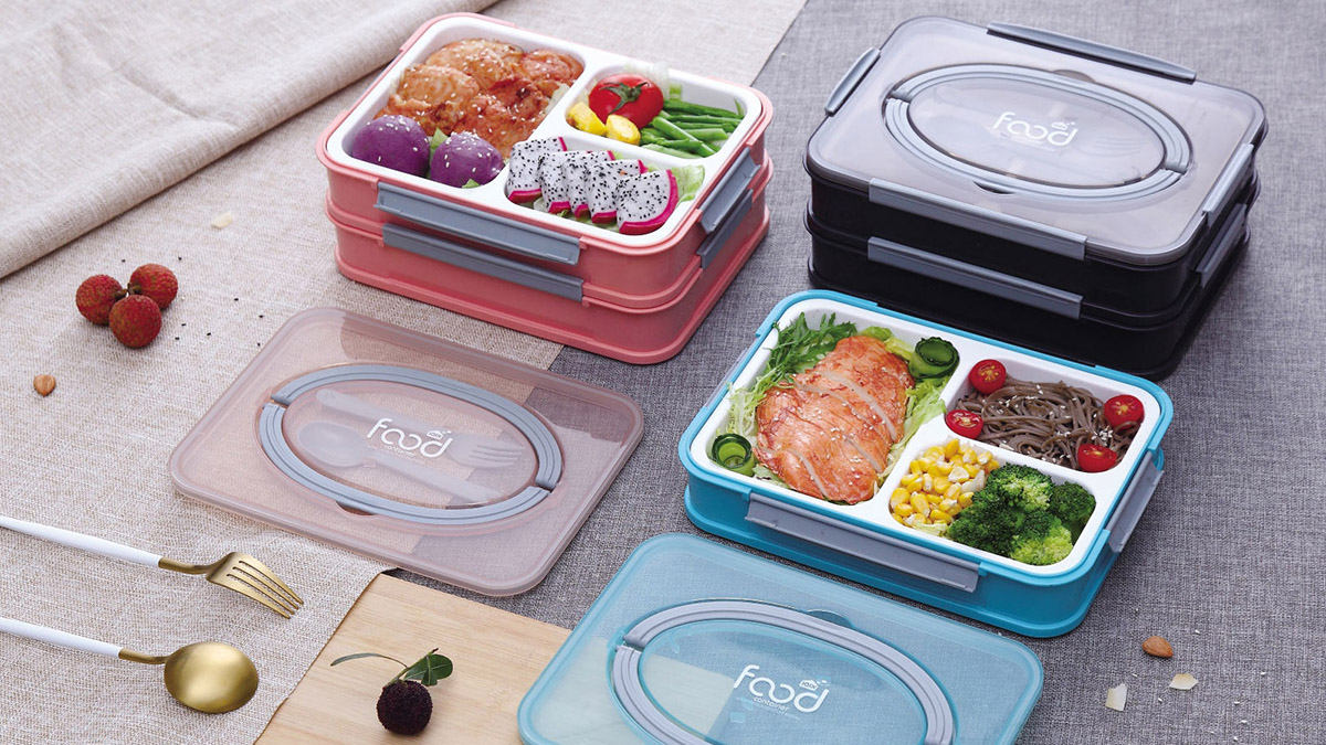 塑料分格手提餐盒(雙層)2L