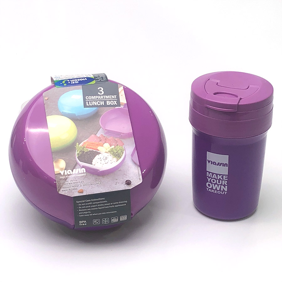 鮮樂3格餐盒+隨手杯套裝(圓形600ml+350ml)