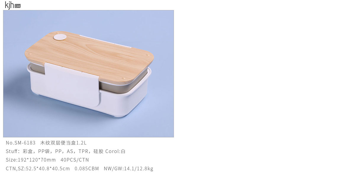 木紋雙層便當(dāng)盒1.2L