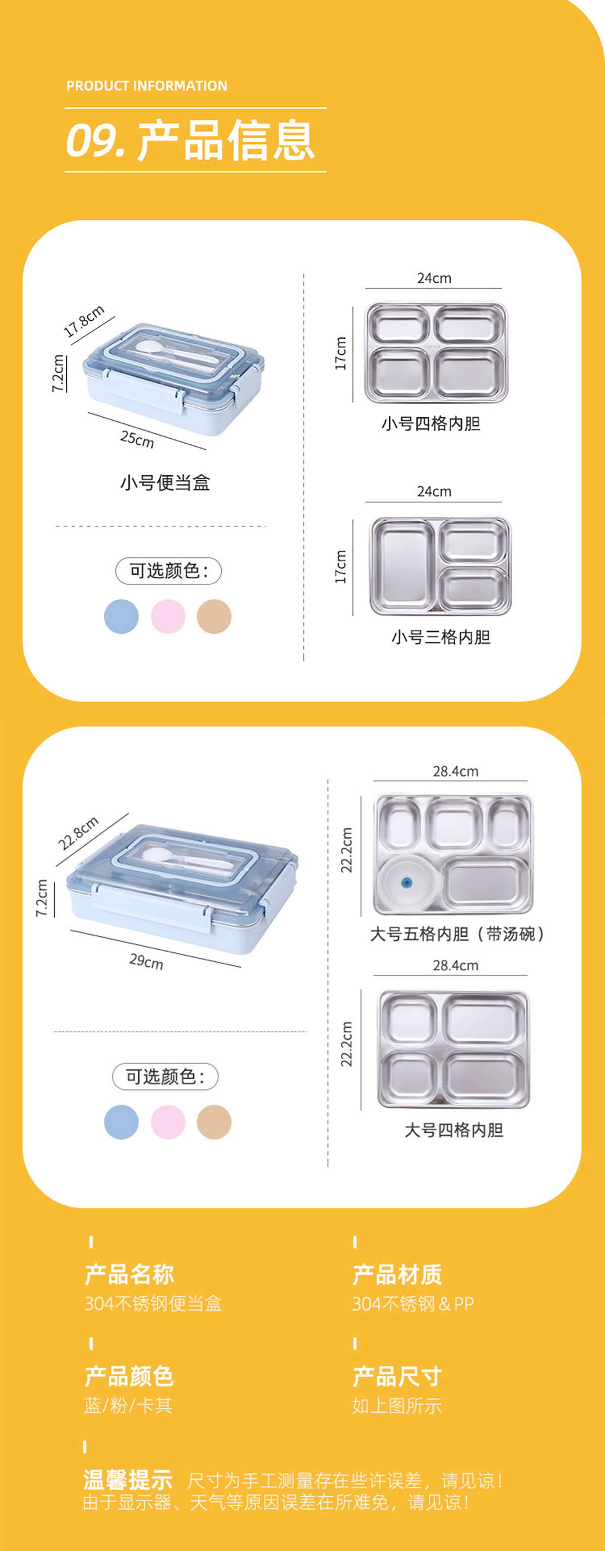 便捷式不銹鋼飯盒 小號(hào)(三格/四格)大號(hào)(四格/五格)