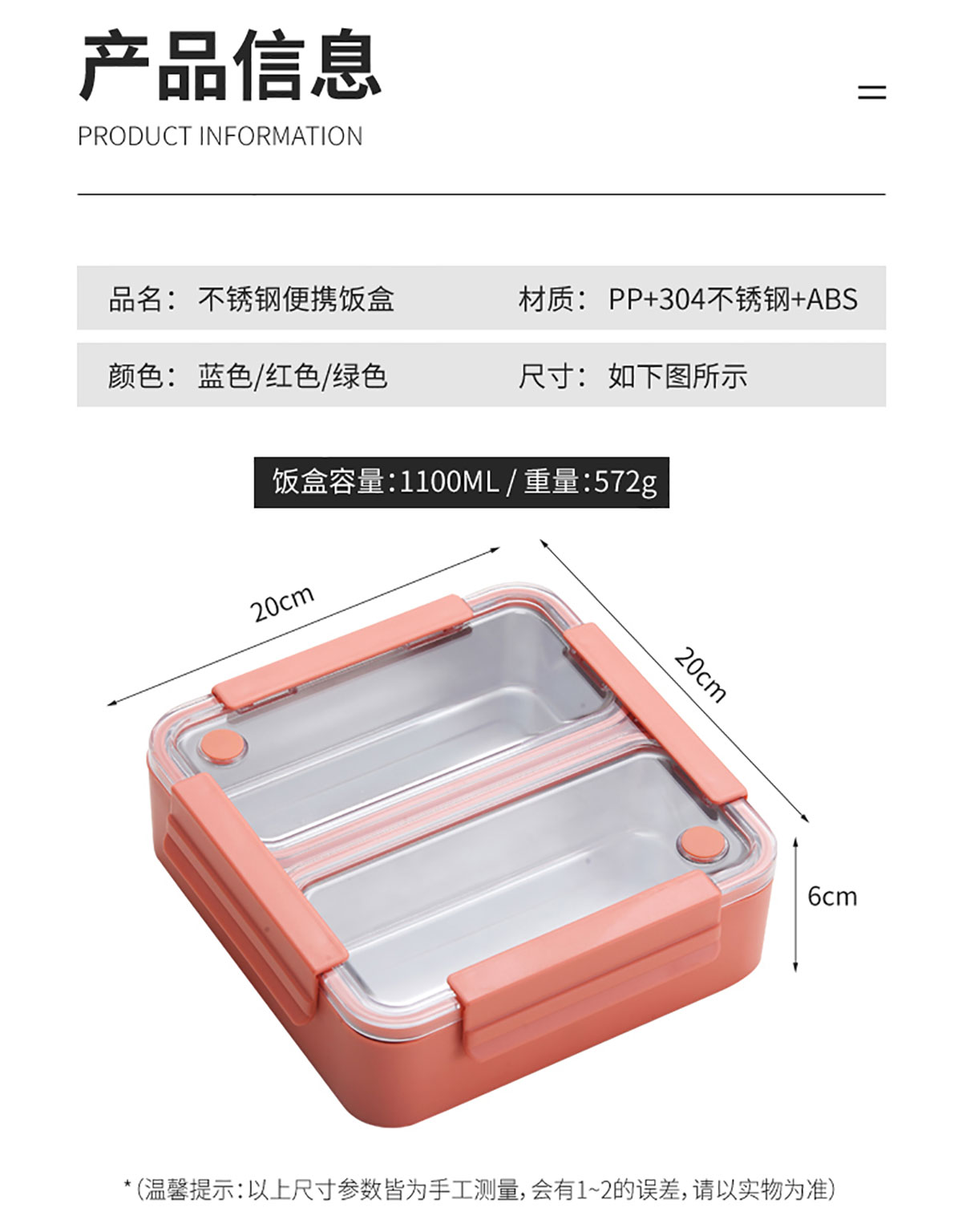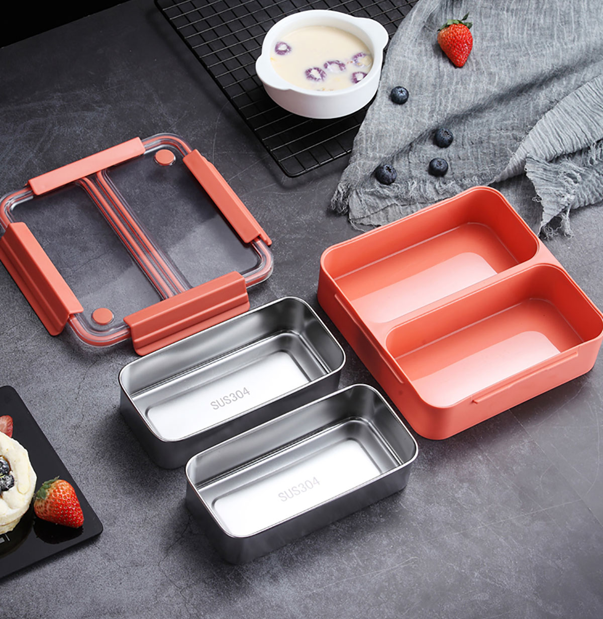 雙內(nèi)格304不銹鋼便當盒