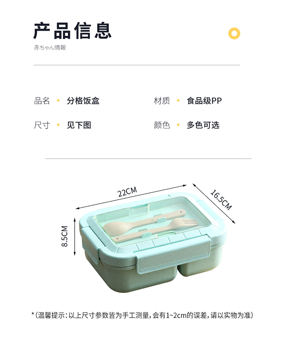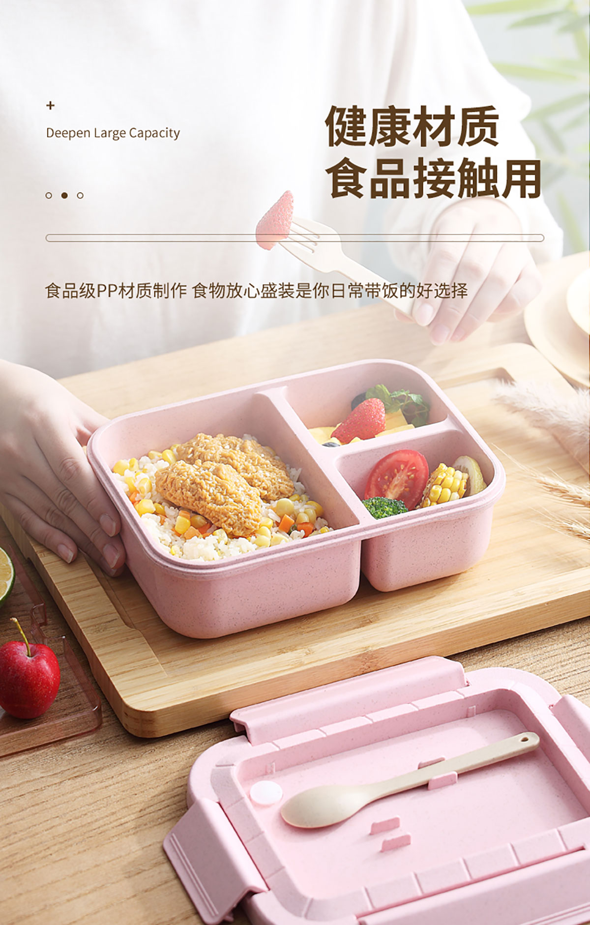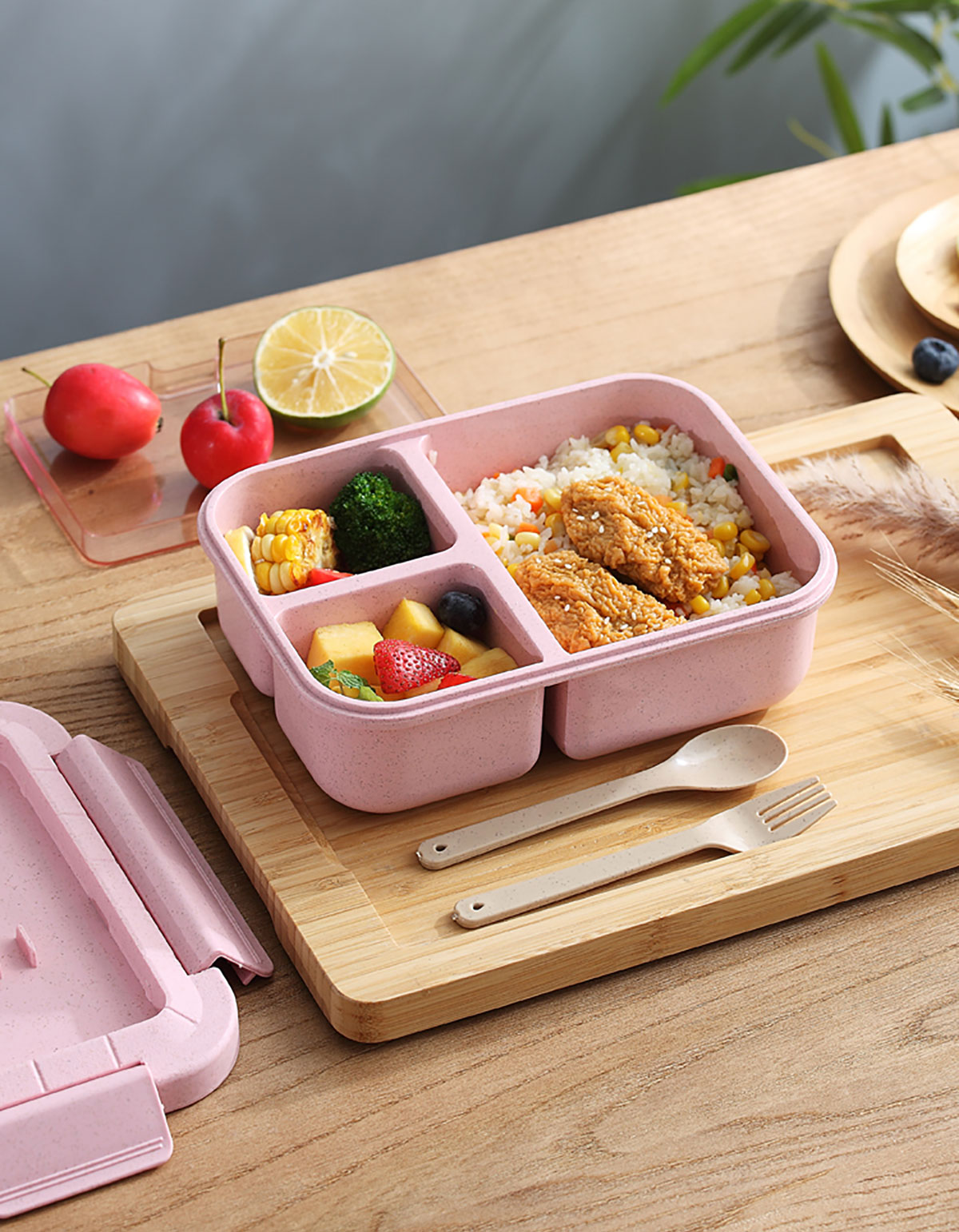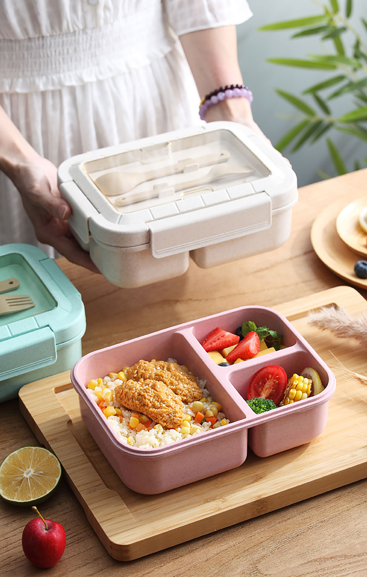 麥秸長方三格飯盒