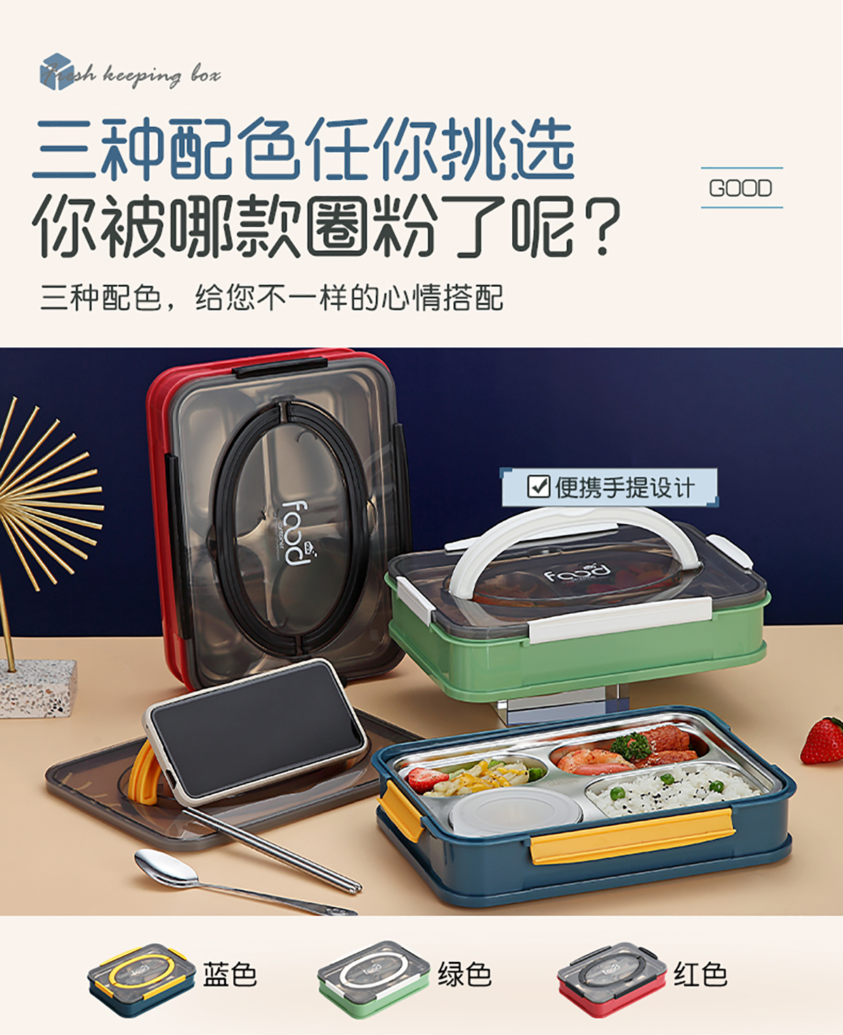 AQX-2523B(4格帶湯碗):260*185*60mm