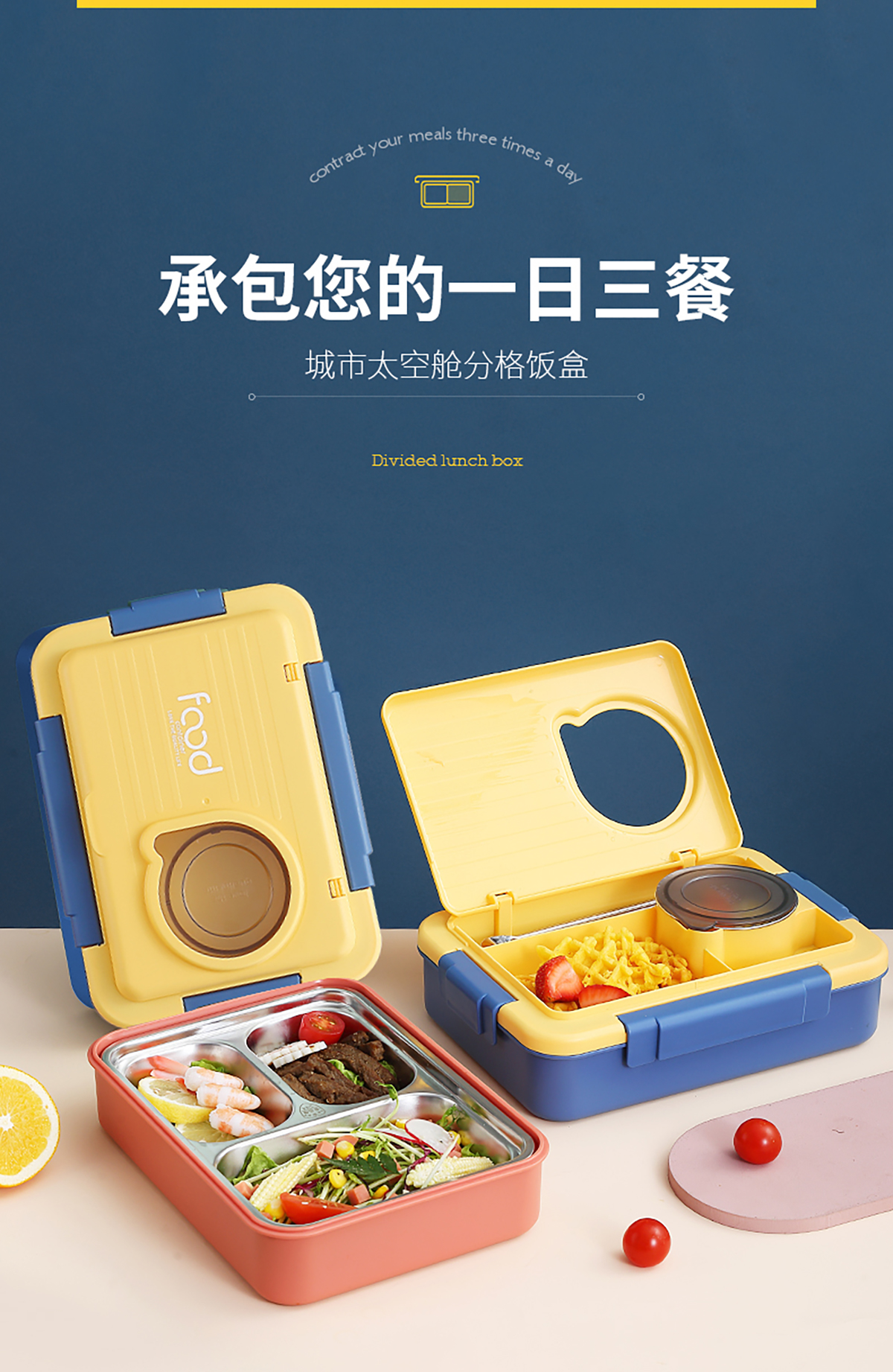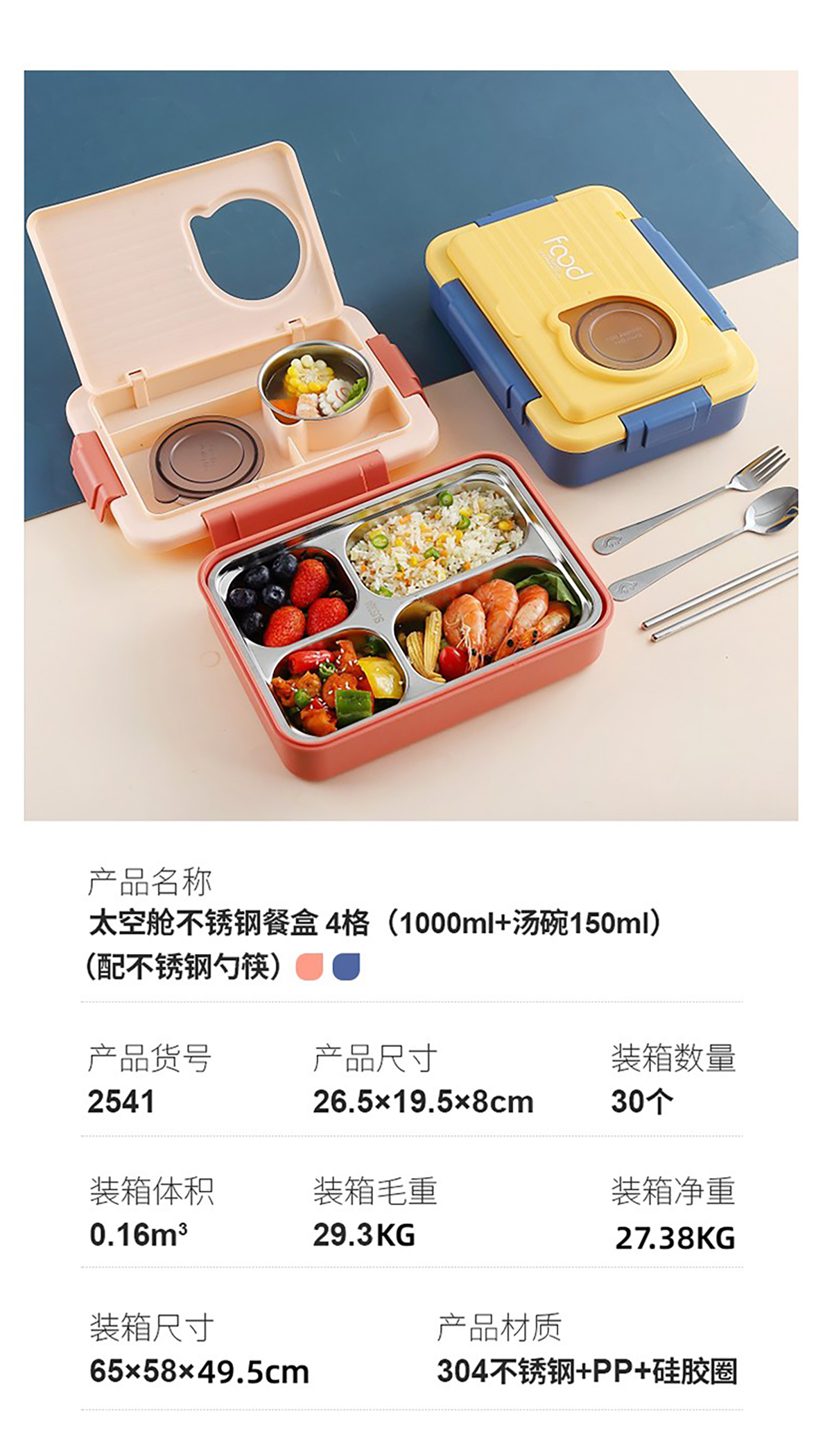 太空艙不銹鋼餐盒 3格/4格1000ml+湯碗150ml(配不銹鋼勺筷)