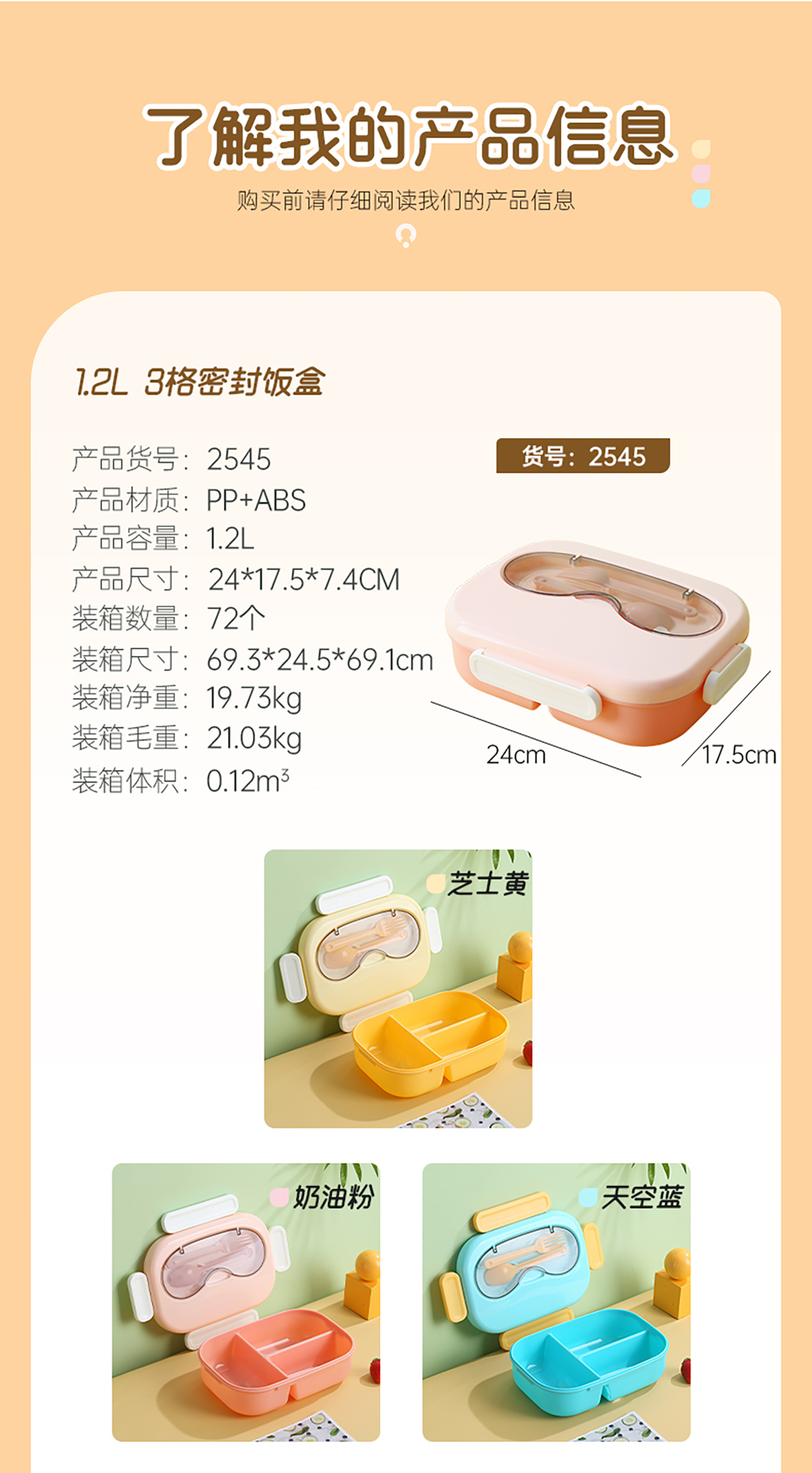 Size: AQX-2545(3格/1.2L):240*175*74mm