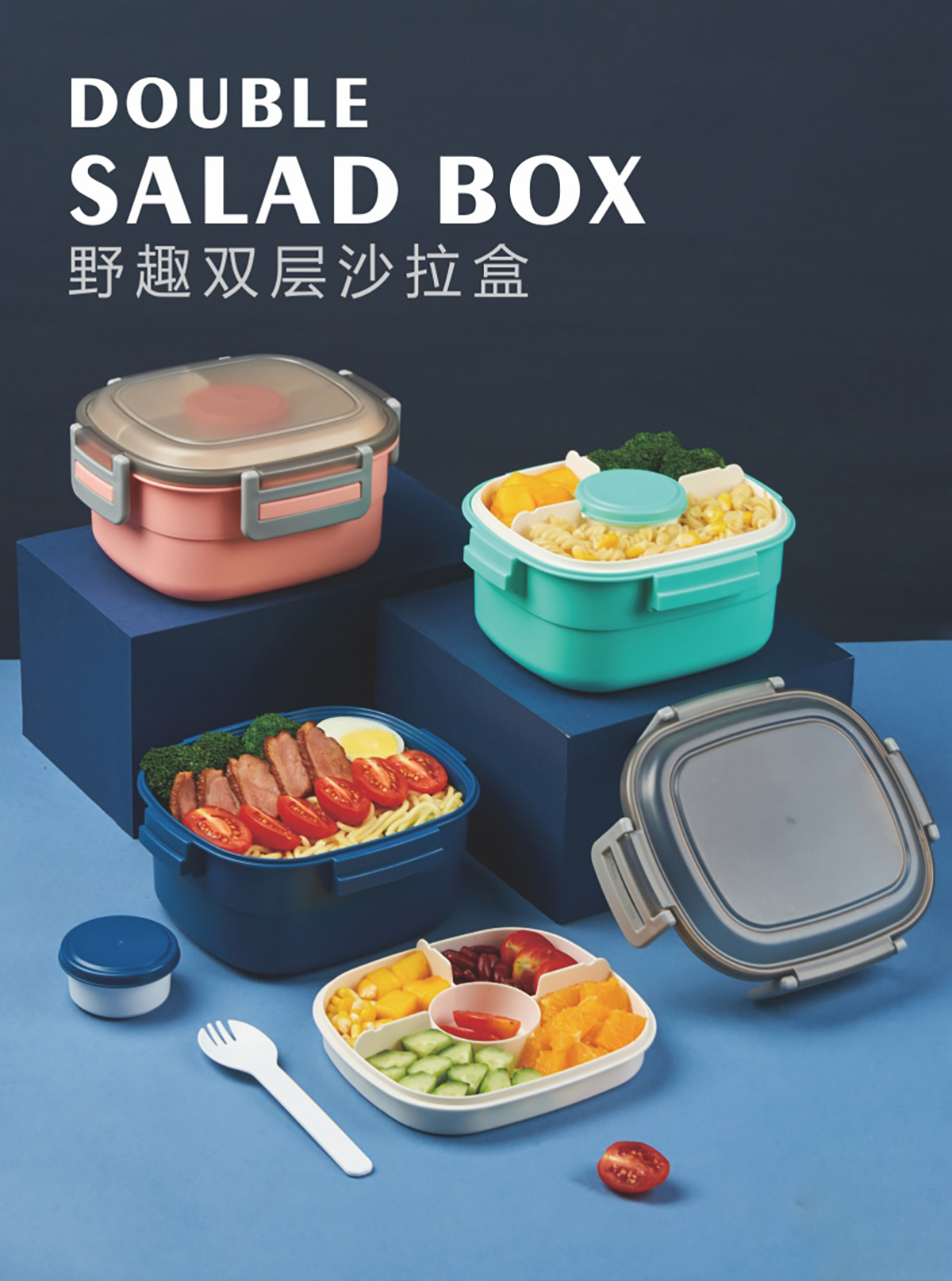 野趣雙層沙拉盒1.6L