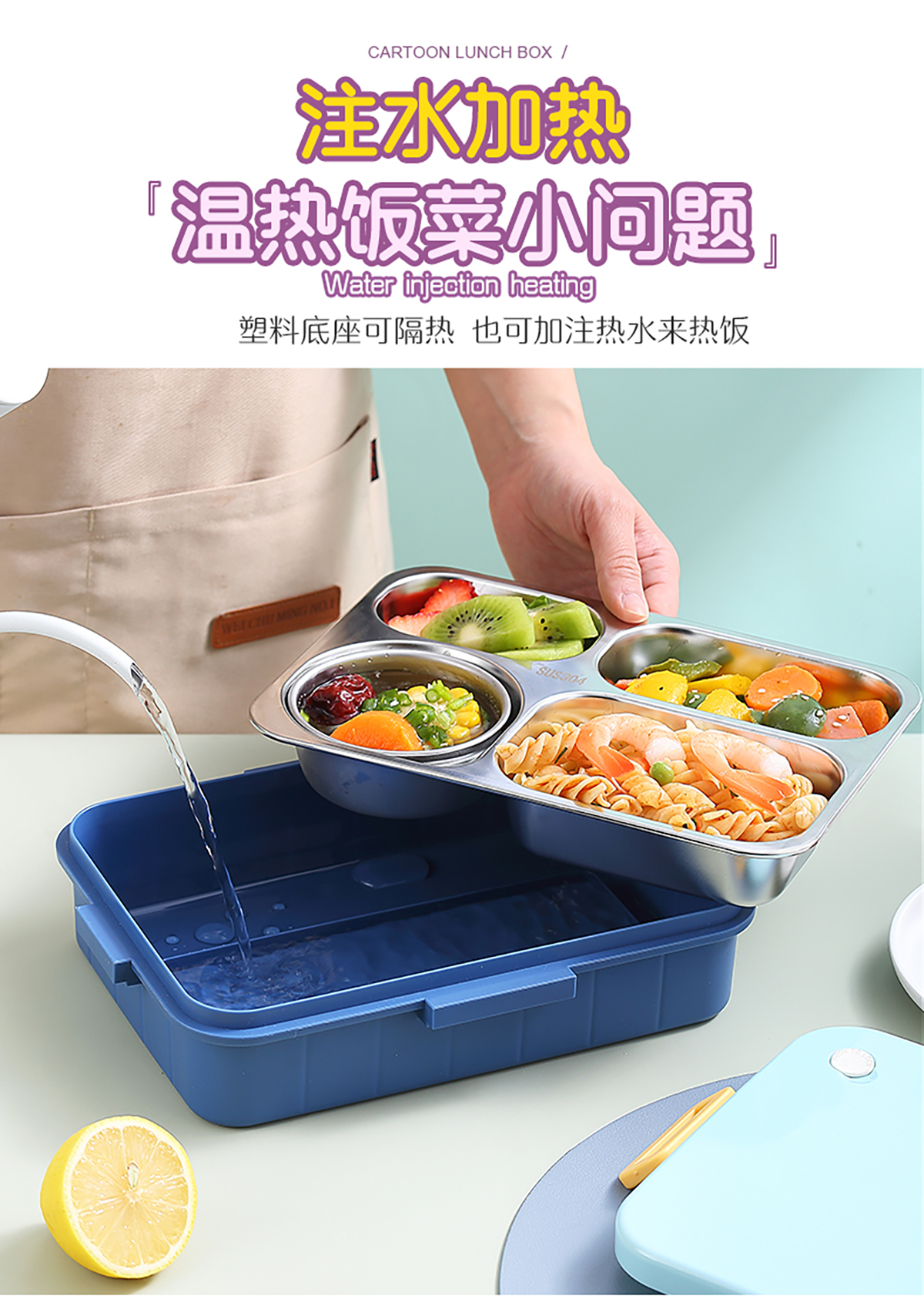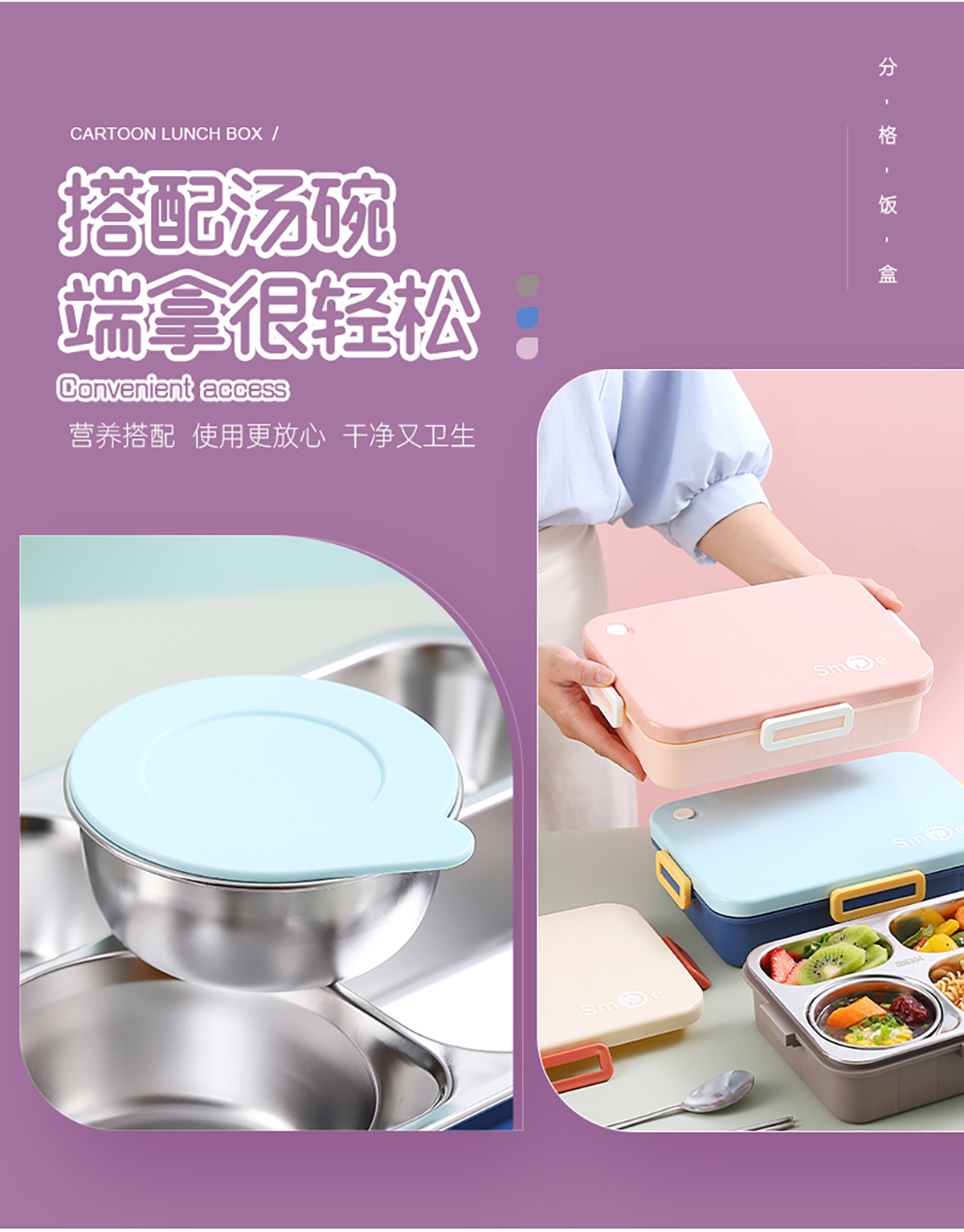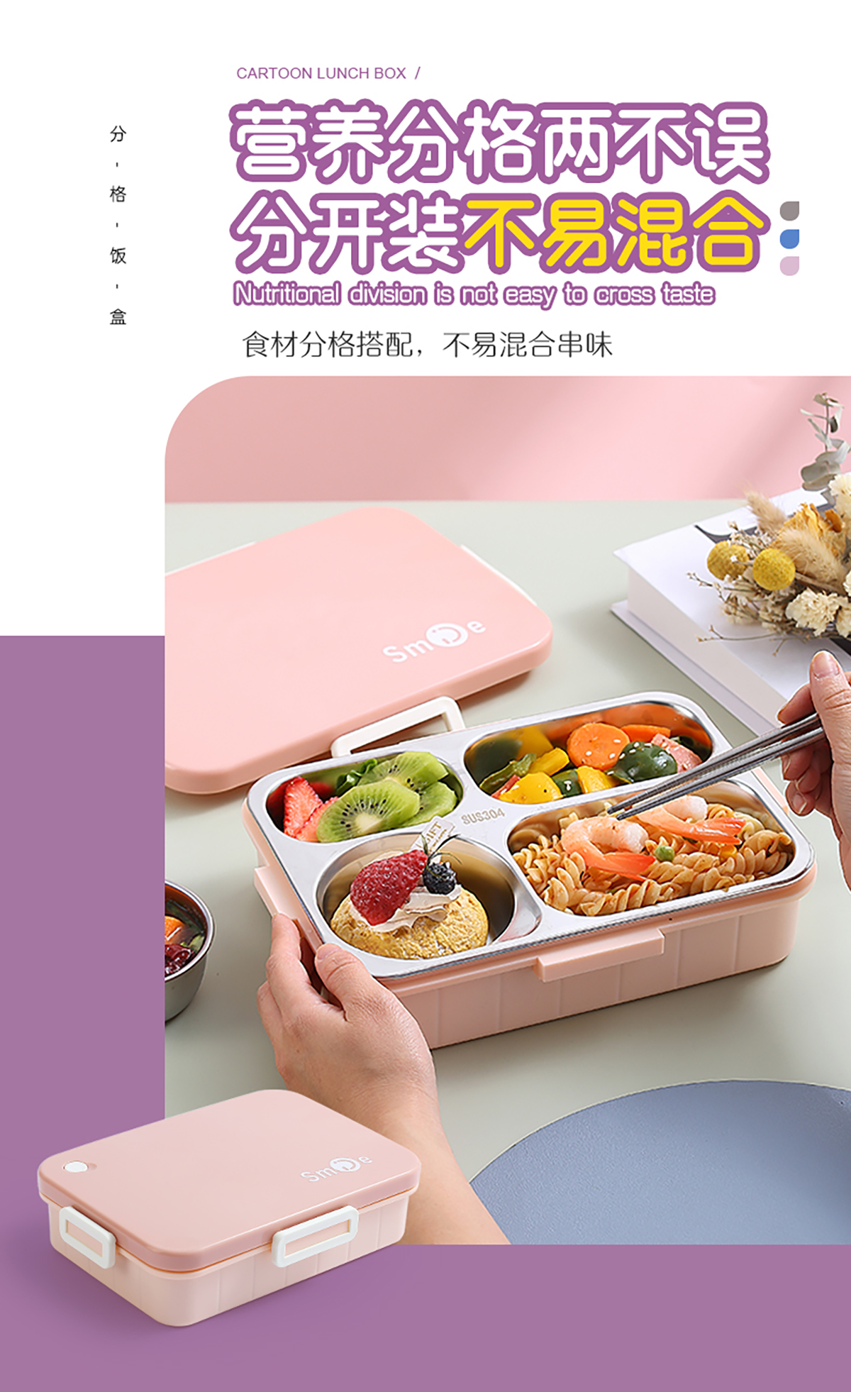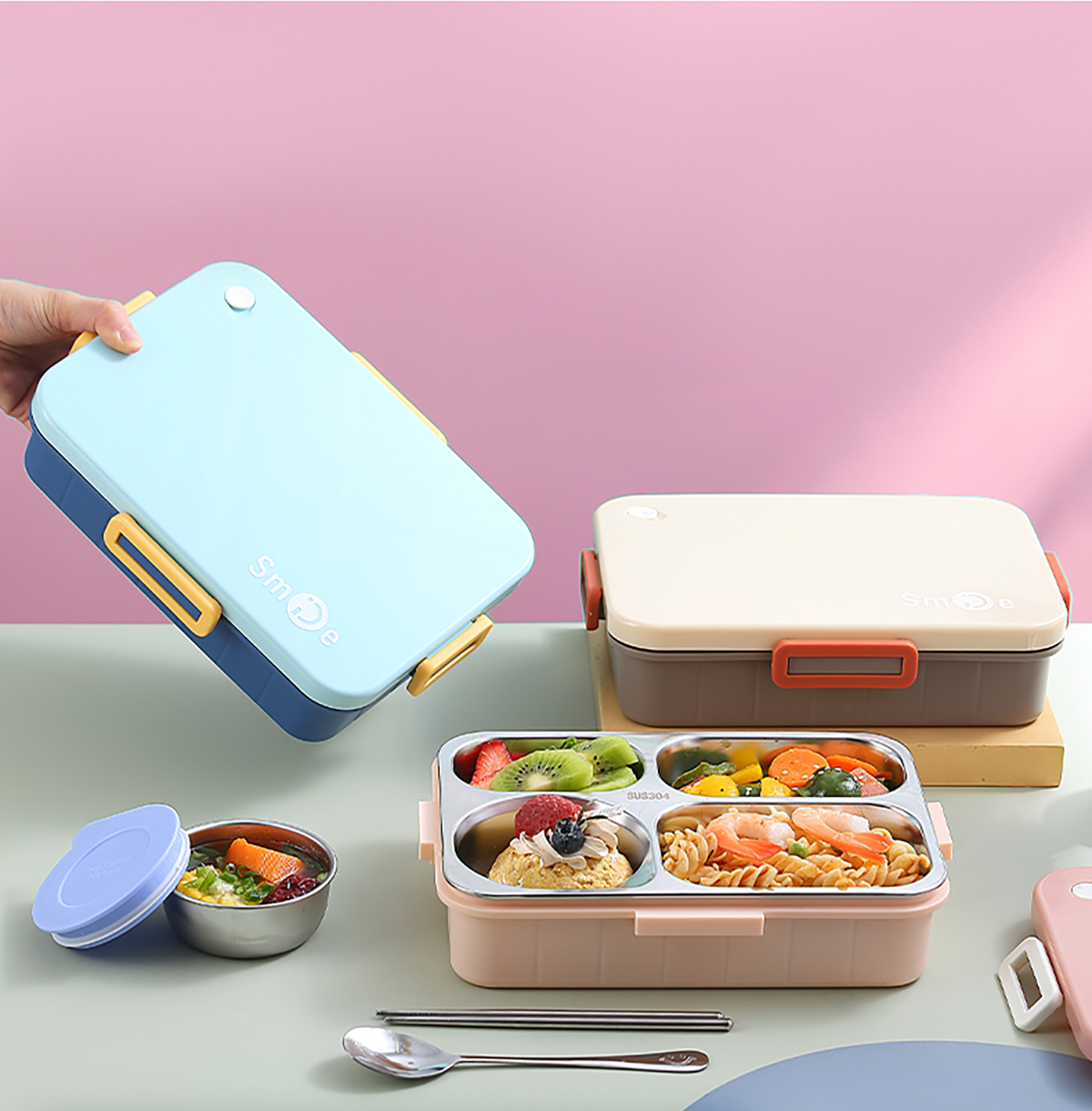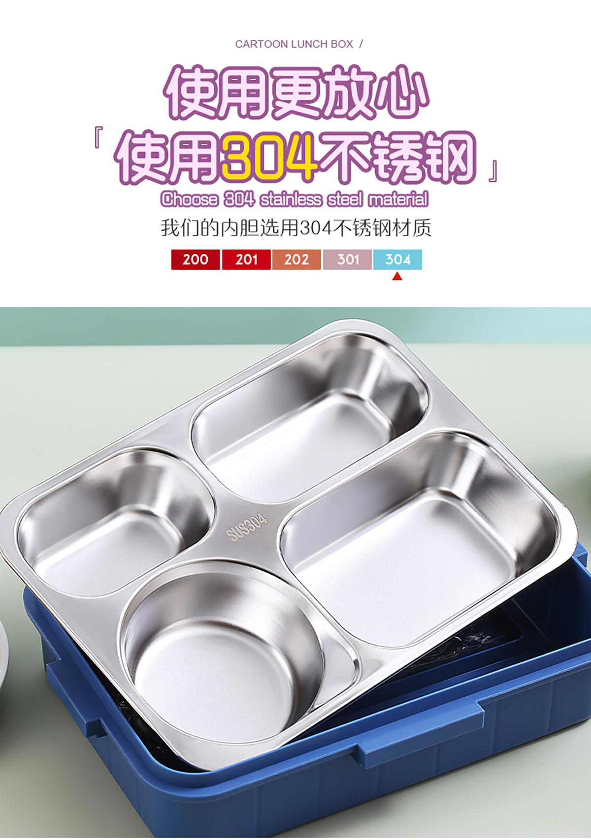 900ml獨(dú)立密封不銹鋼餐盒(時(shí)尚四格+不銹鋼勺筷/碗150ml不銹鋼勺筷)