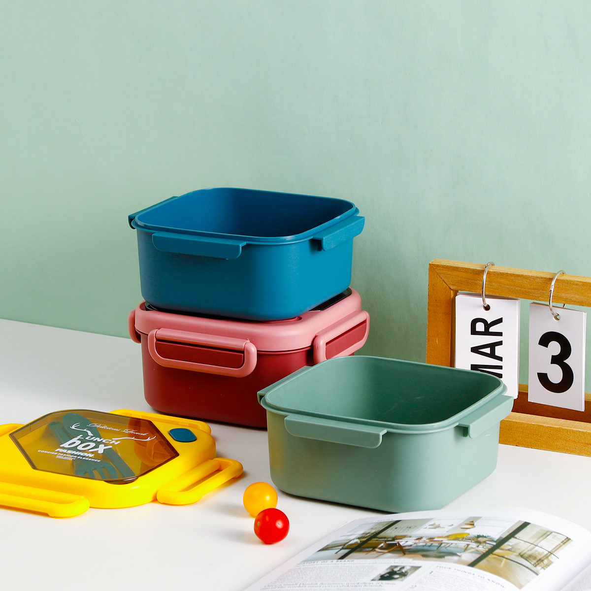 品悅正方單層/雙層密封飯盒+圓形/八角隨行杯