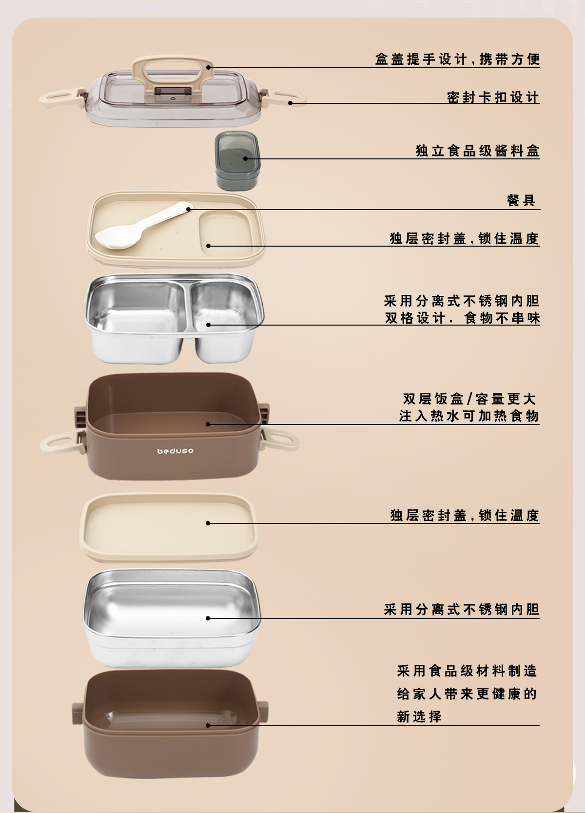 Size: FX-BDX1260(單層800ml):200*120*90mm