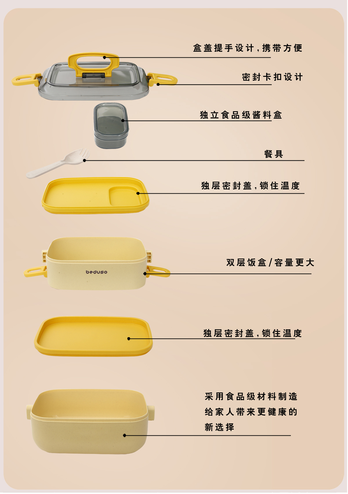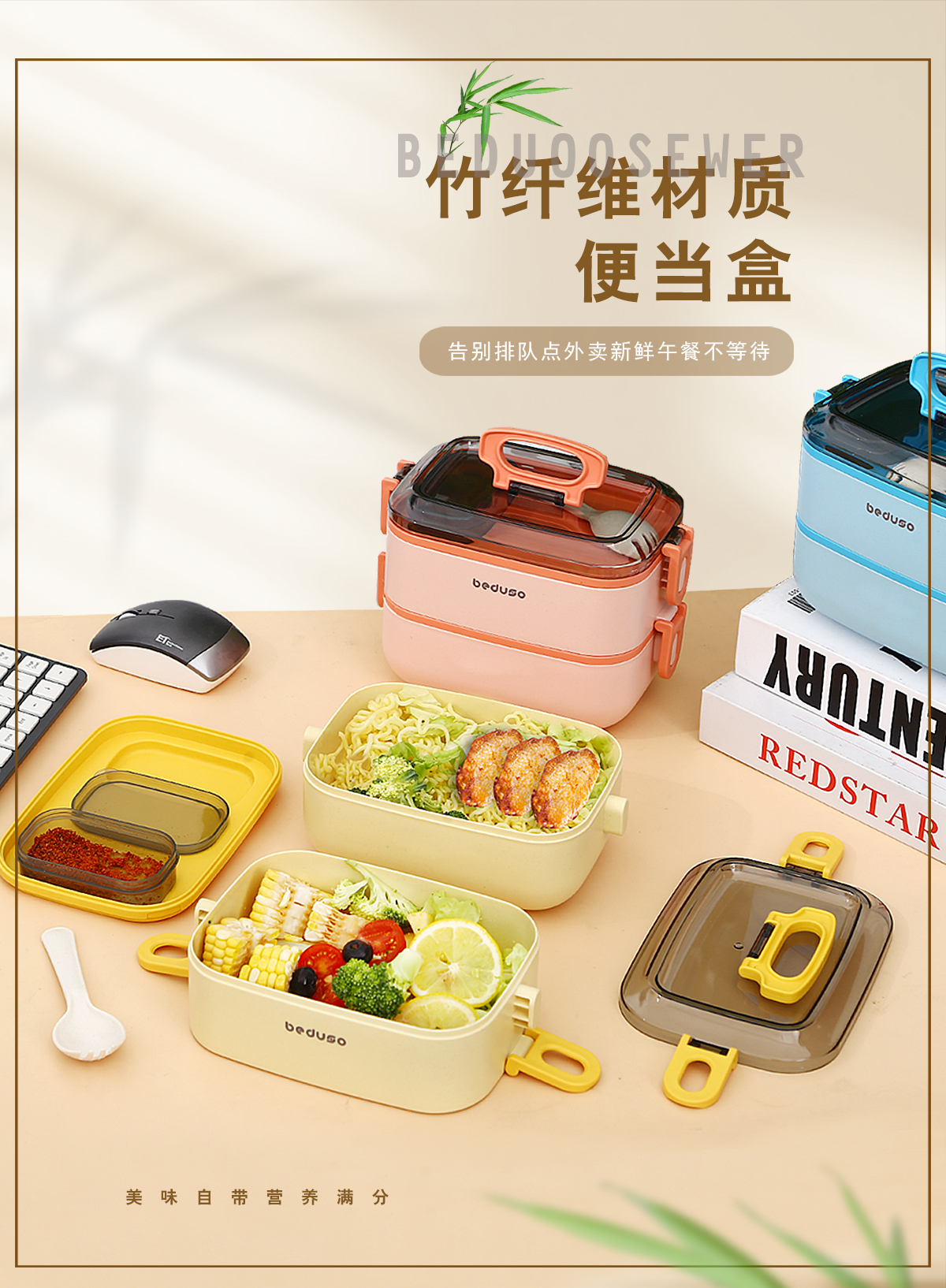 長(zhǎng)方形竹纖維便當(dāng)盒單層1000ml/雙層1800ml