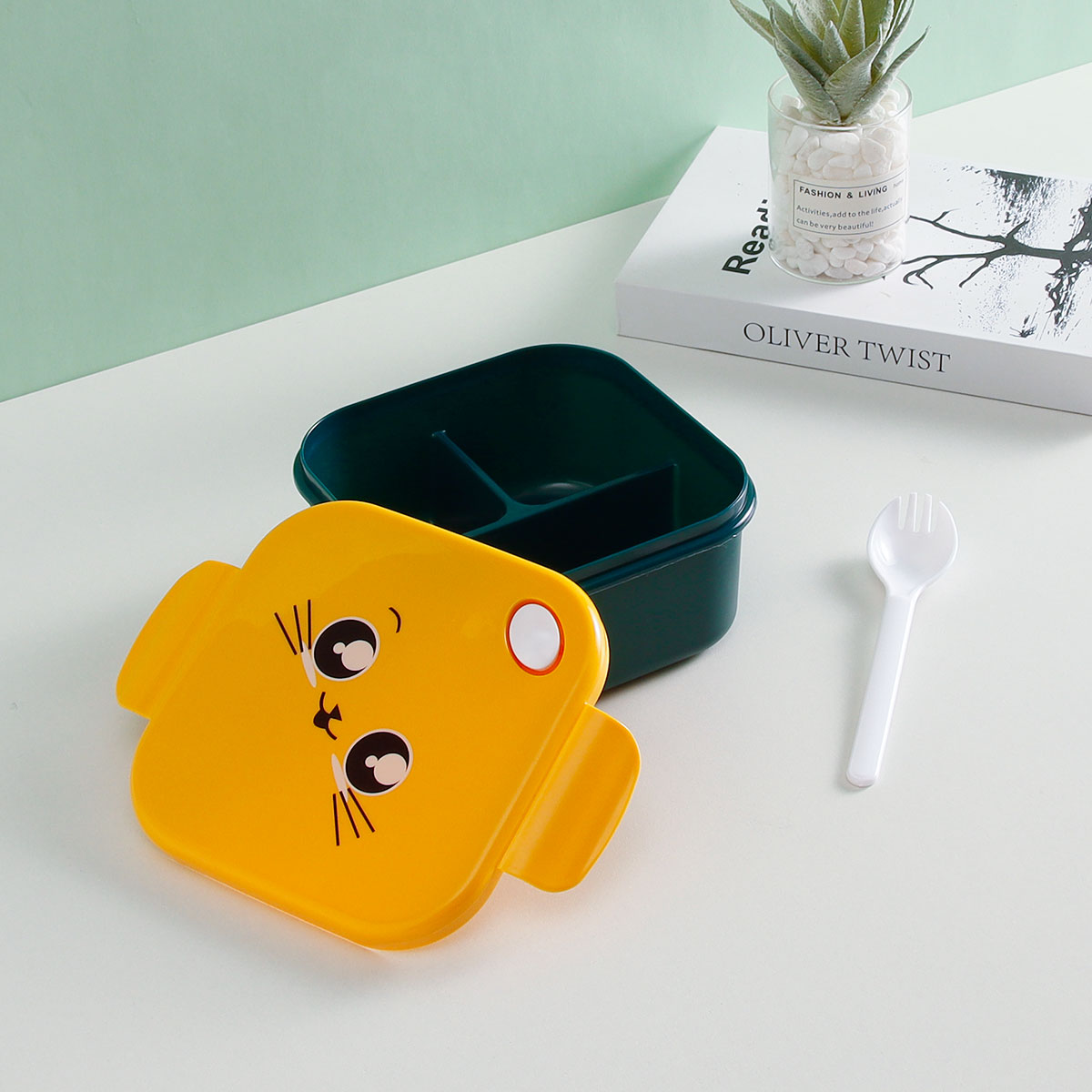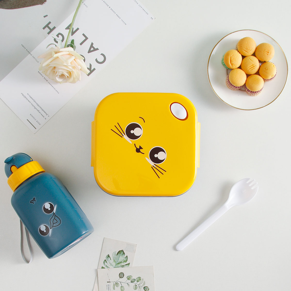 三格方型飯盒+600ml卡通水壺