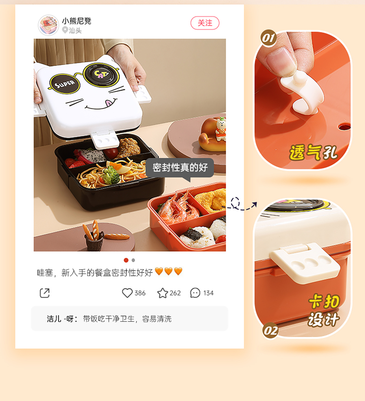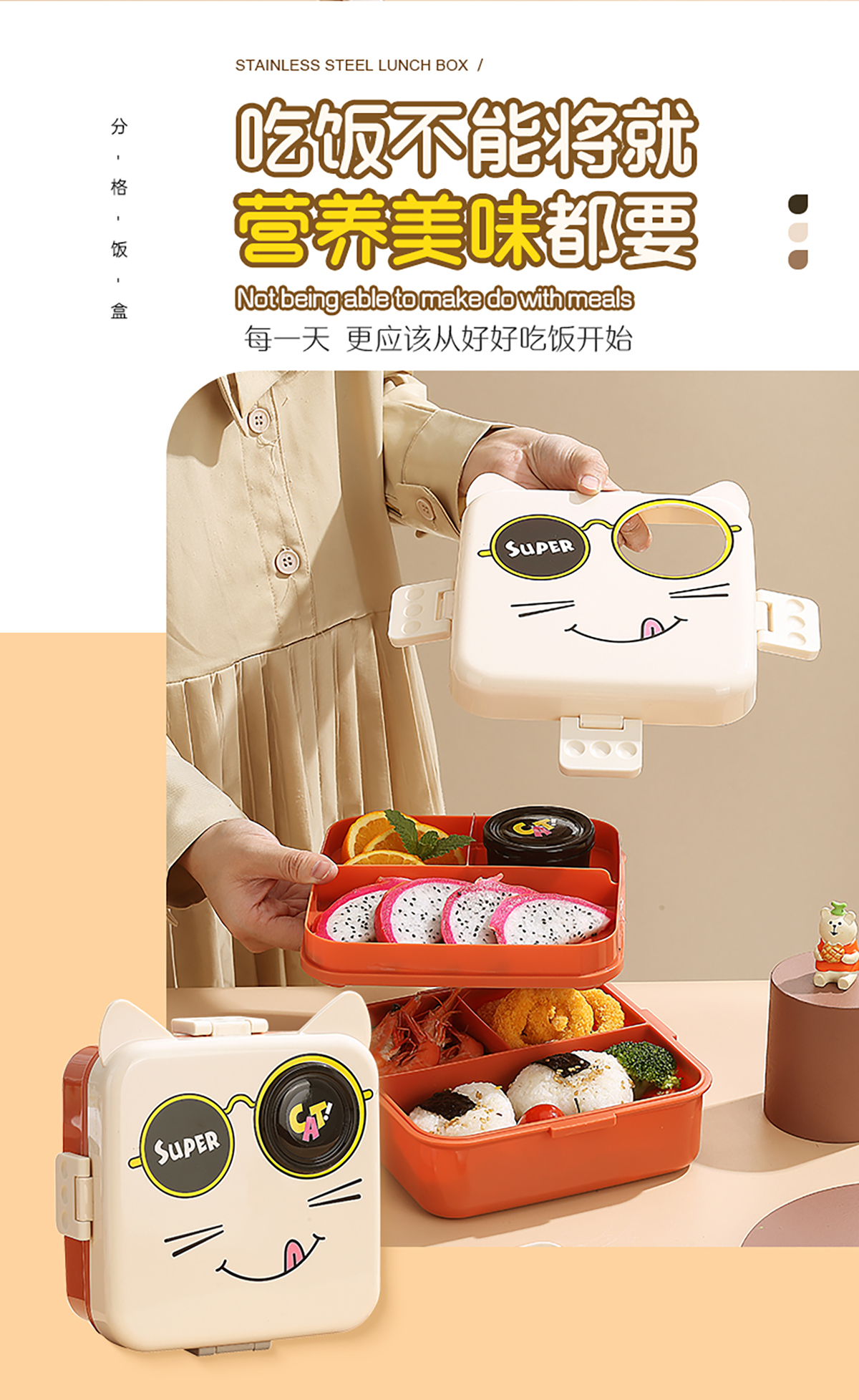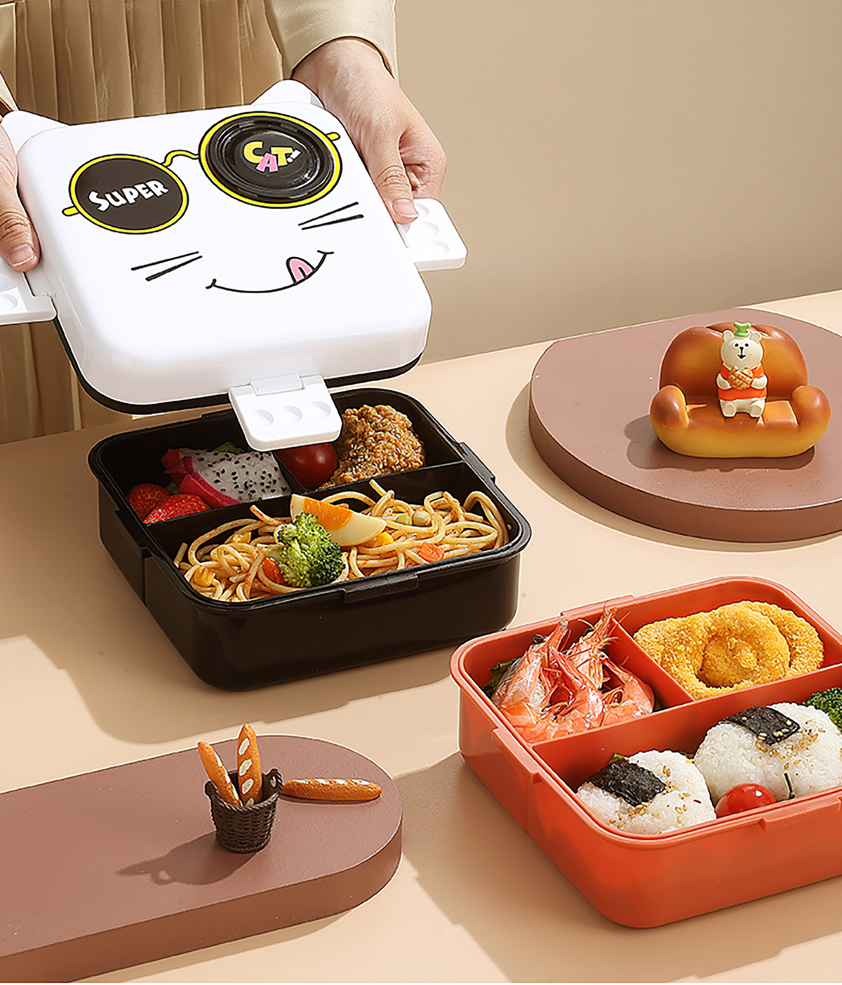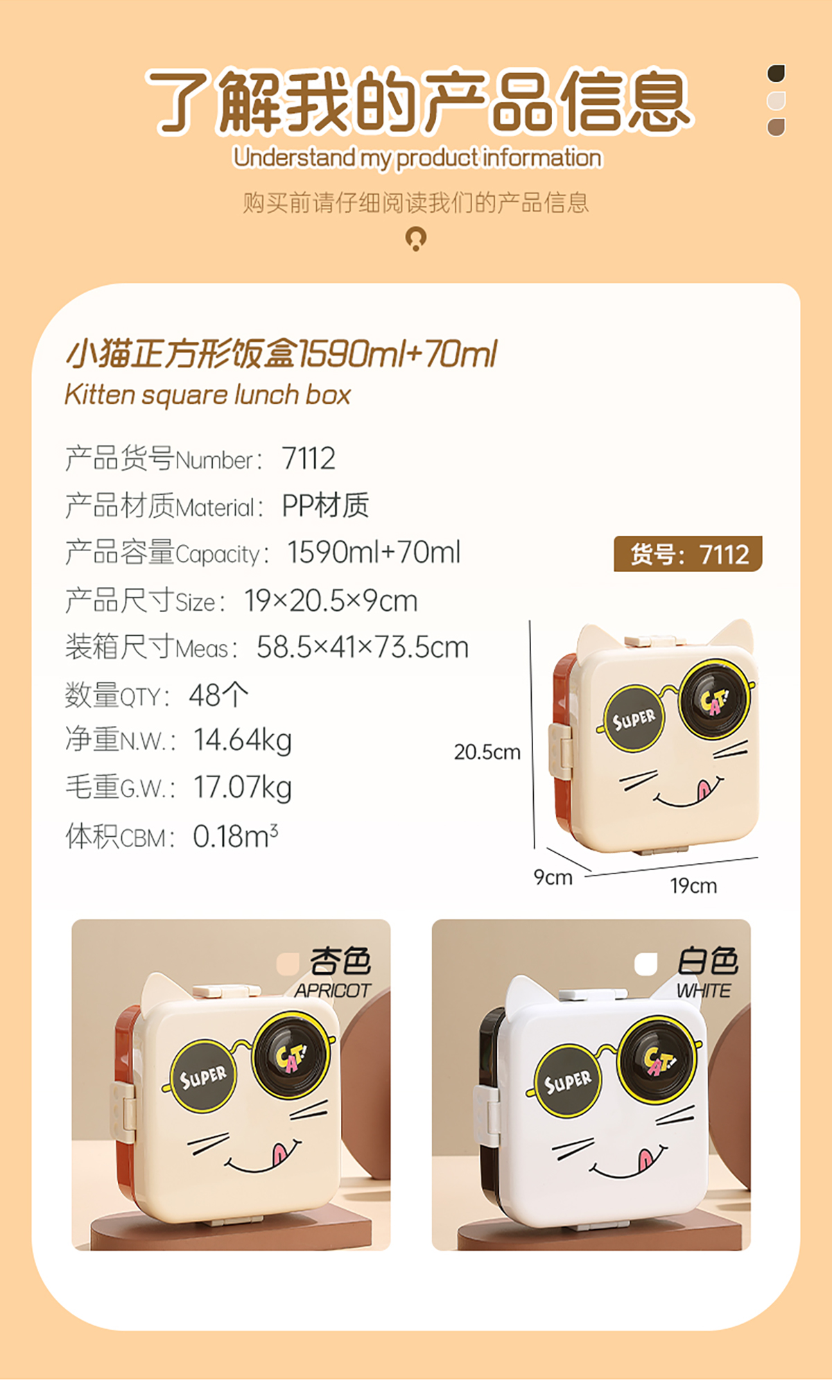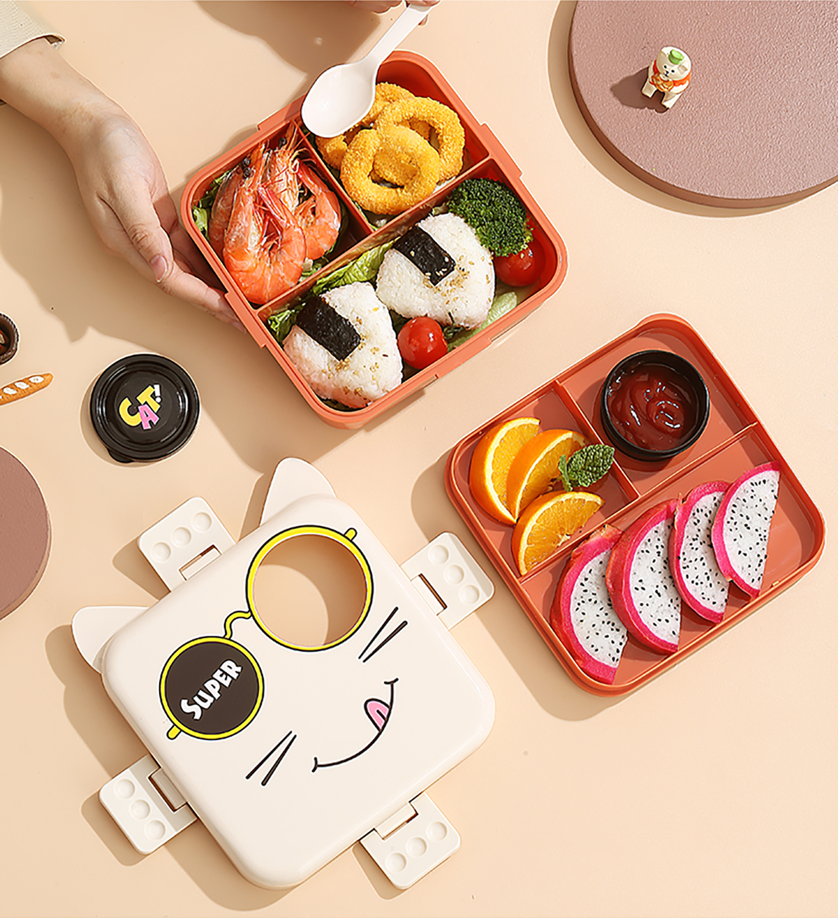 小貓正方形飯盒(塑料)1590ml+70ml