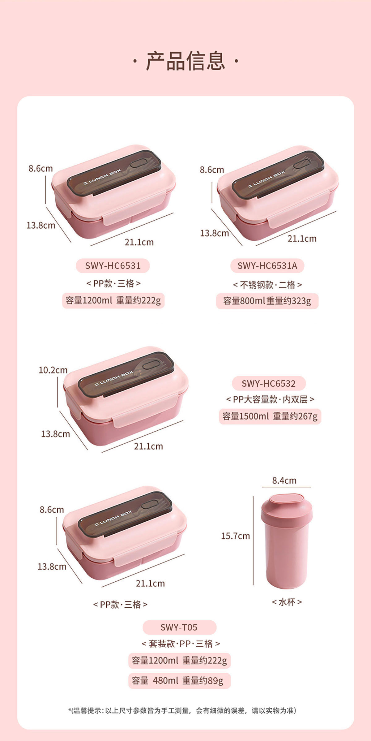 SWY-T05(套裝款):211*138*86mm/1200ml 水壺:84*157mm/480ml