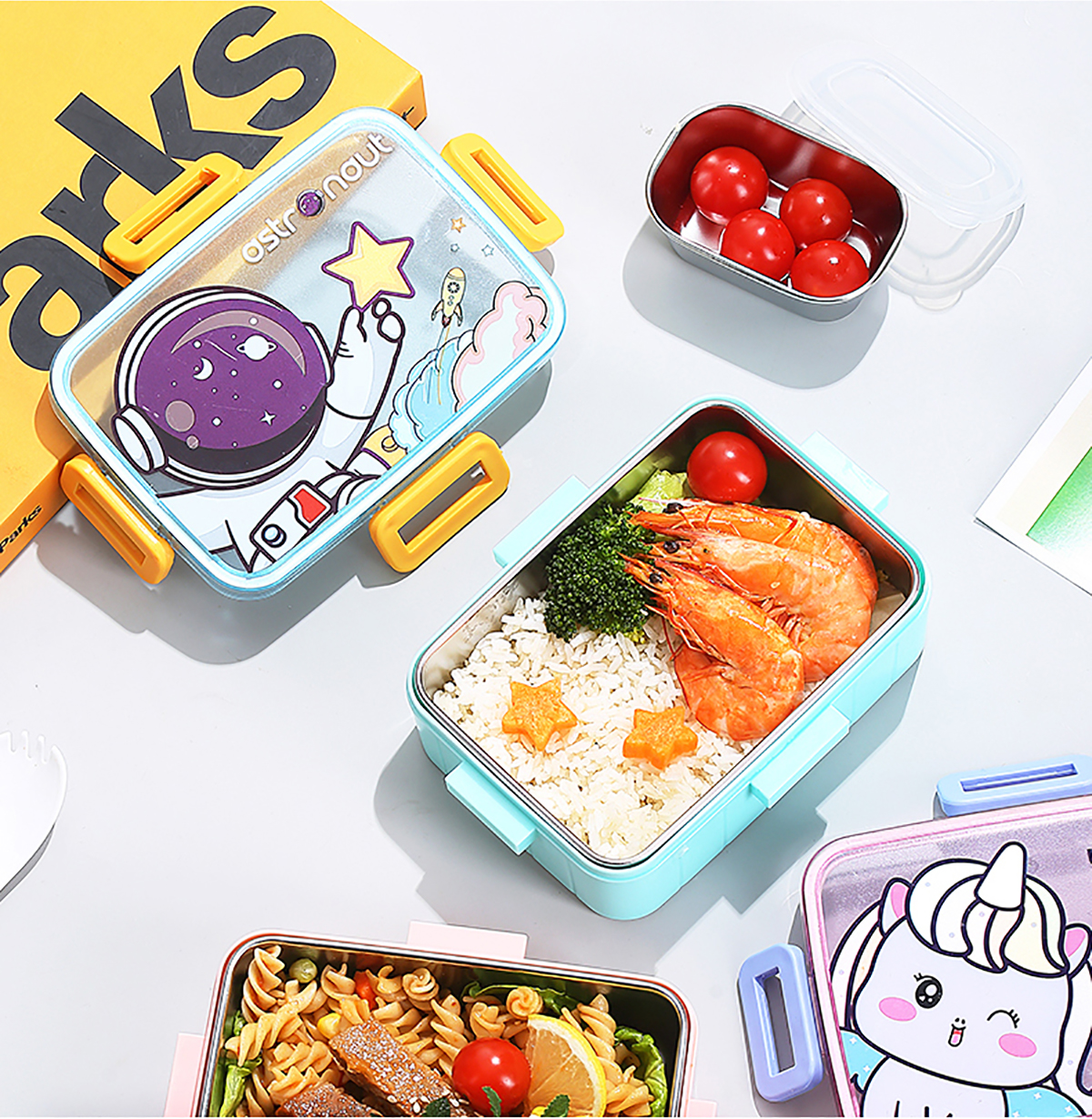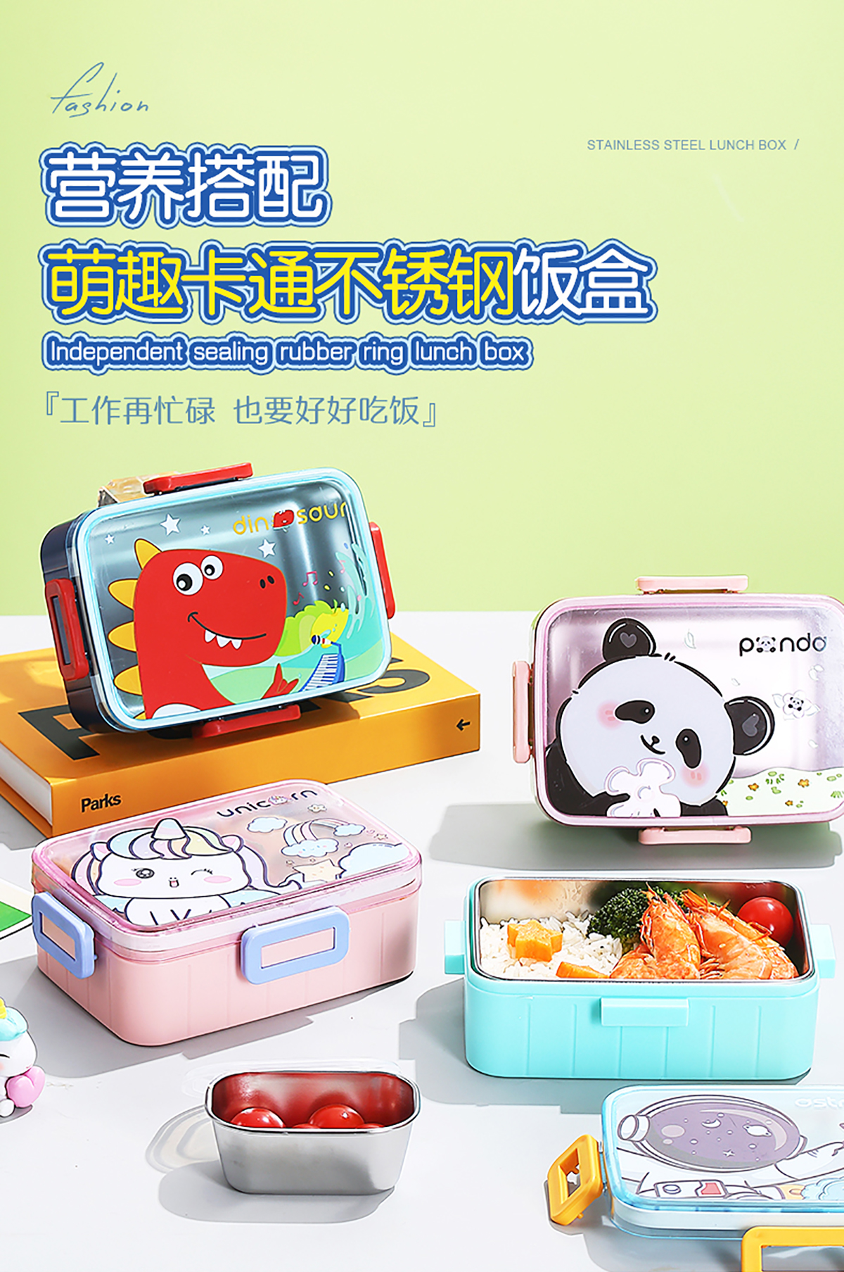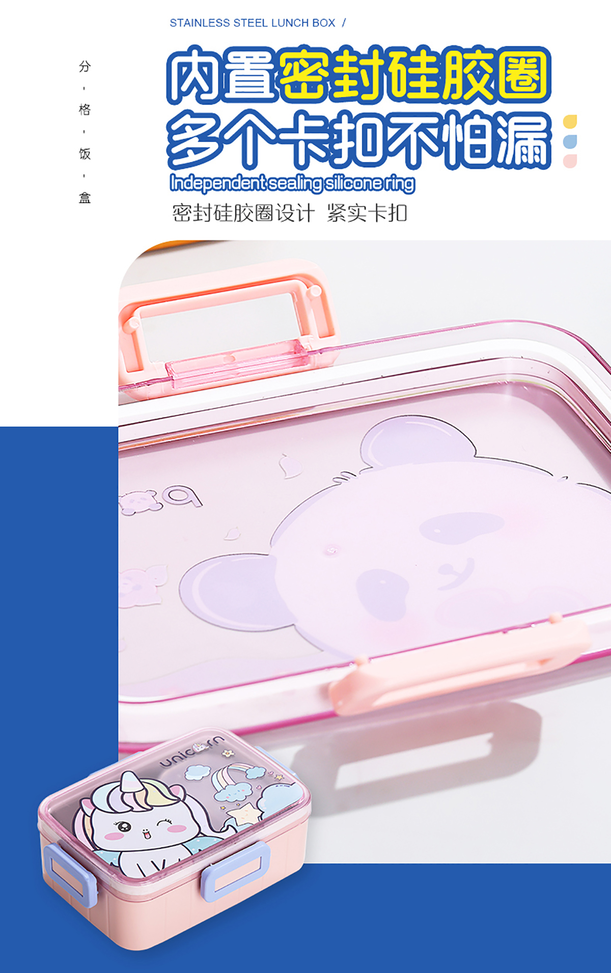 萌趣卡通不銹鋼飯盒(1格600ml/600ml+碗100ml)