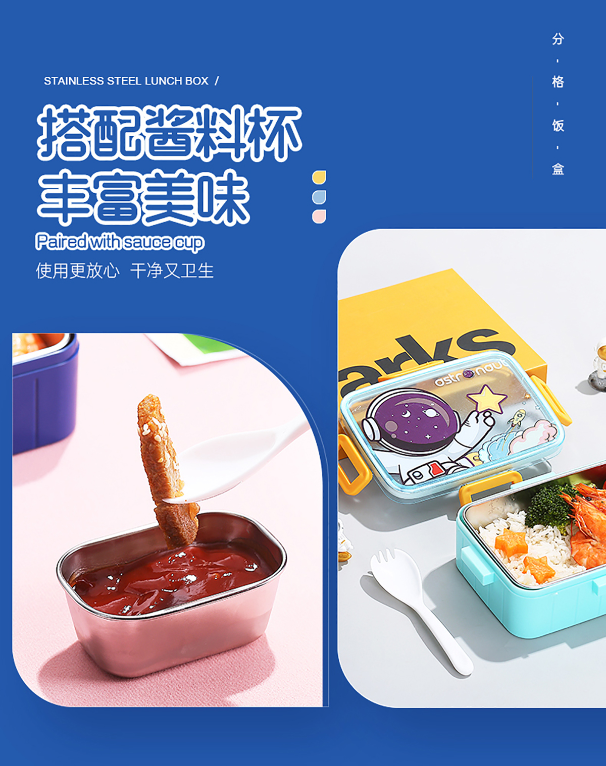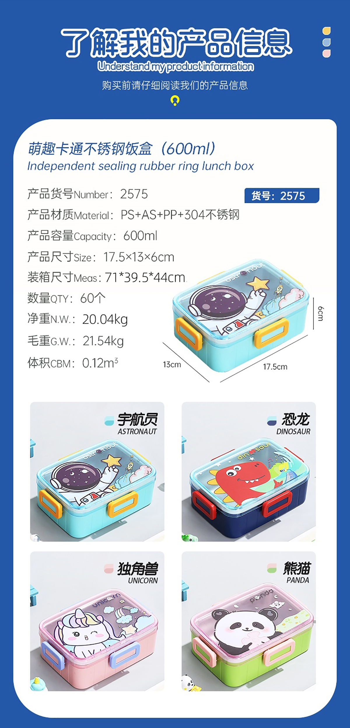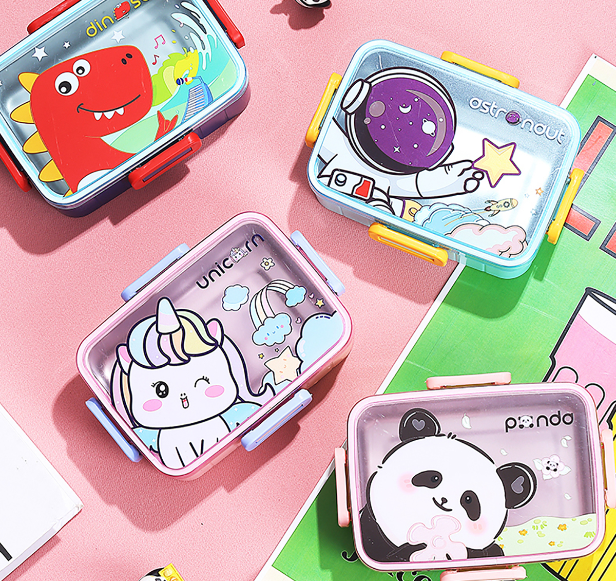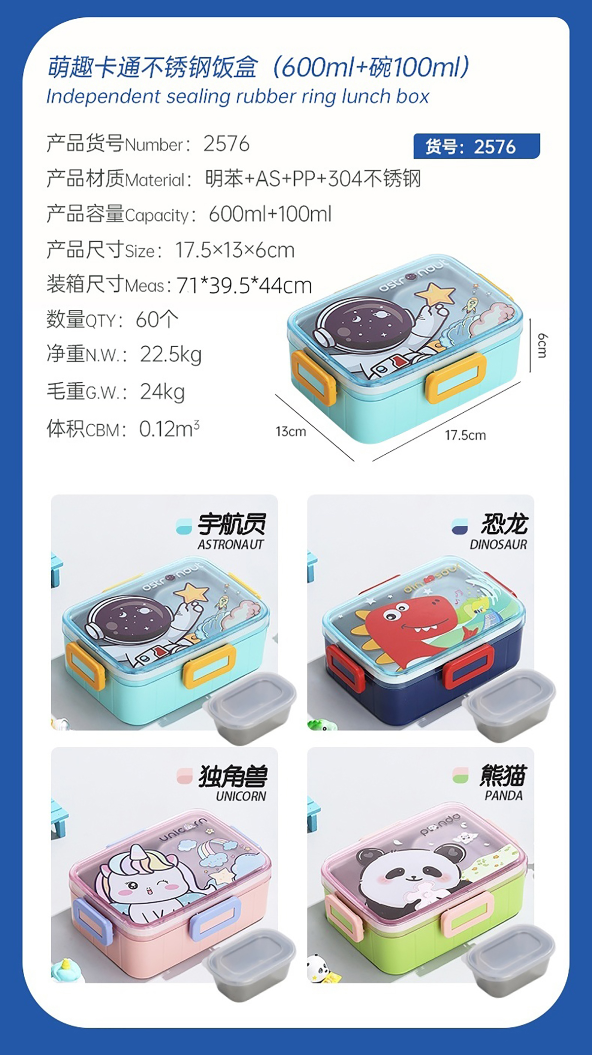 萌趣卡通不銹鋼飯盒(1格600ml/600ml+碗100ml)