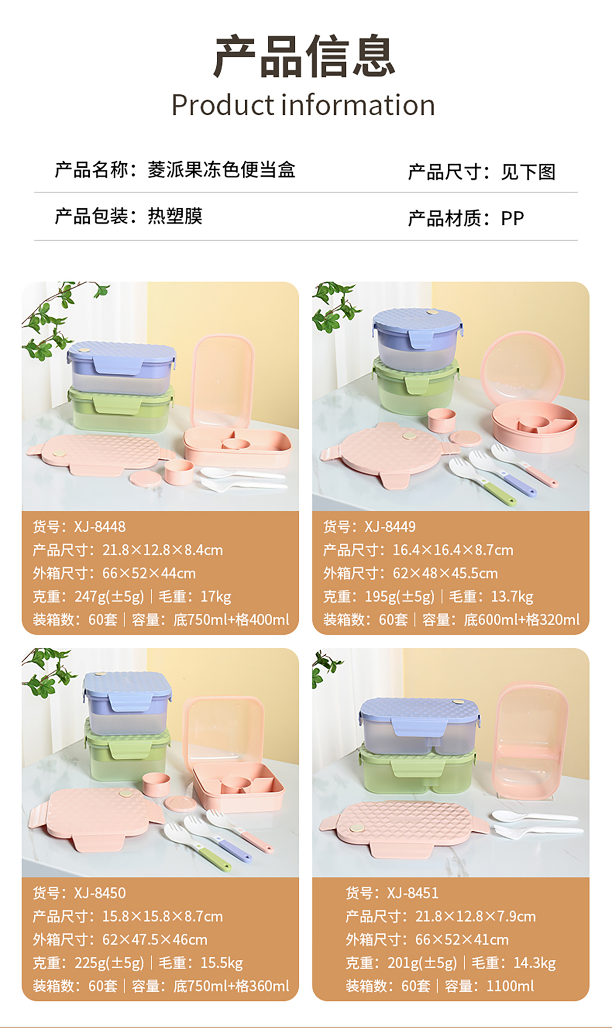 菱派果凍色圓形/方形/分格便當(dāng)盒