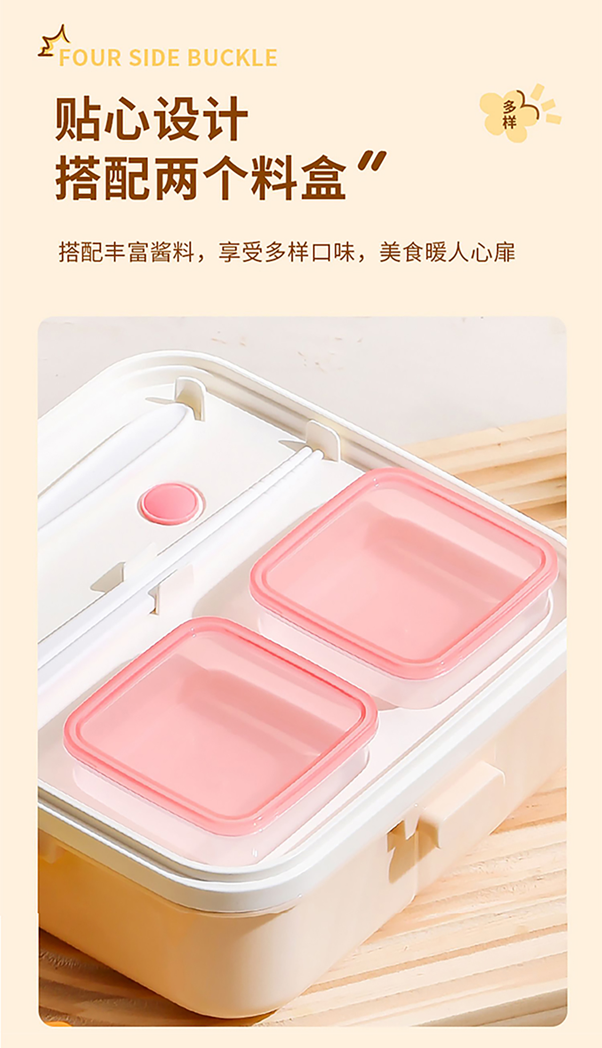 正方形飯盒(帶醬料盒)