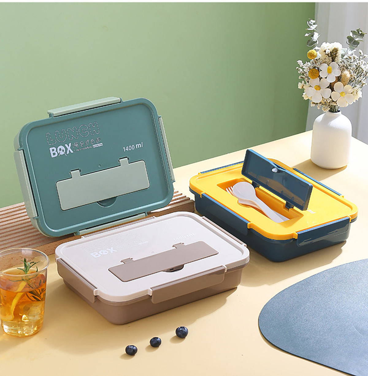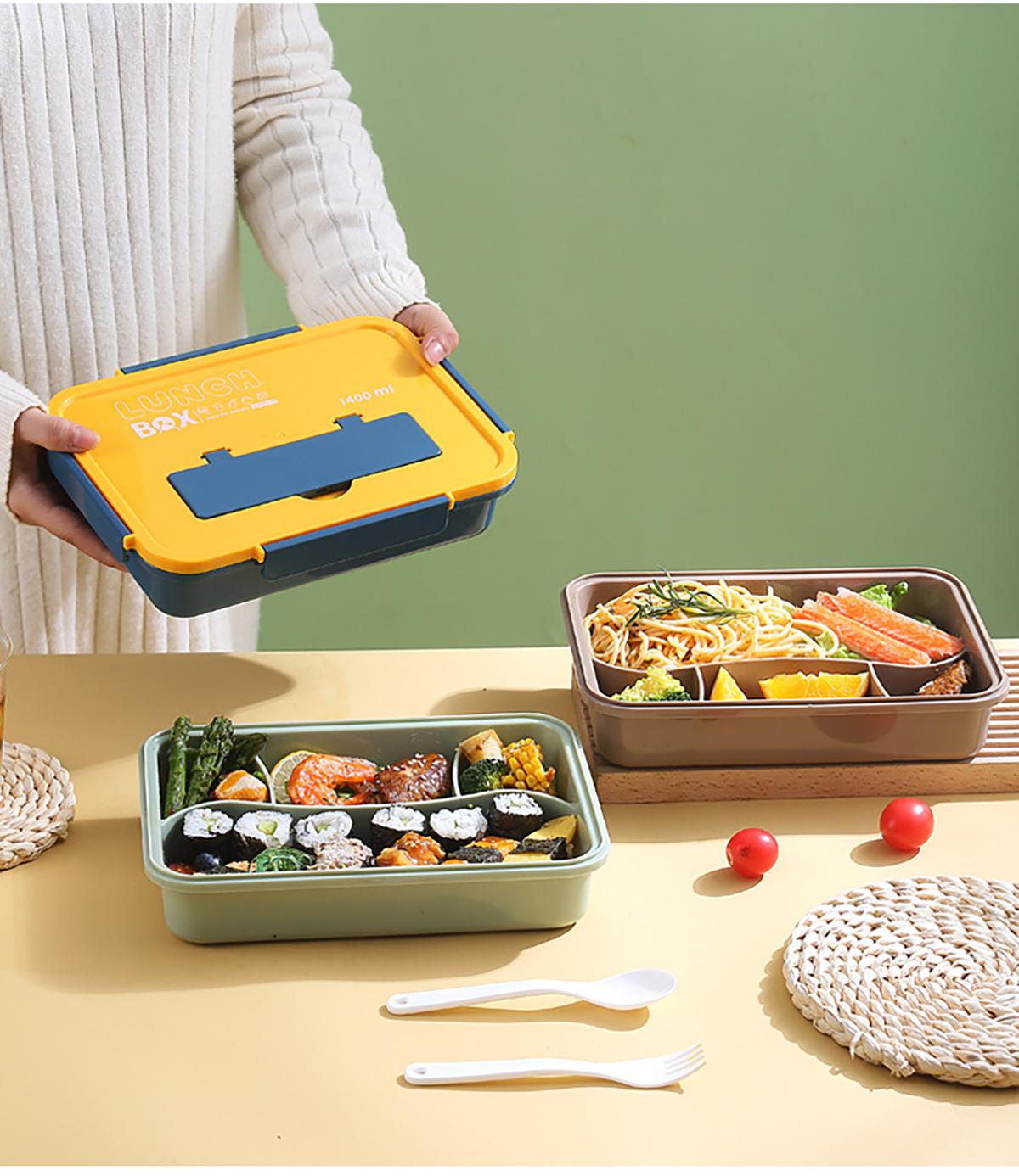 尚品塑料餐盒塑料款1400ml叉勺