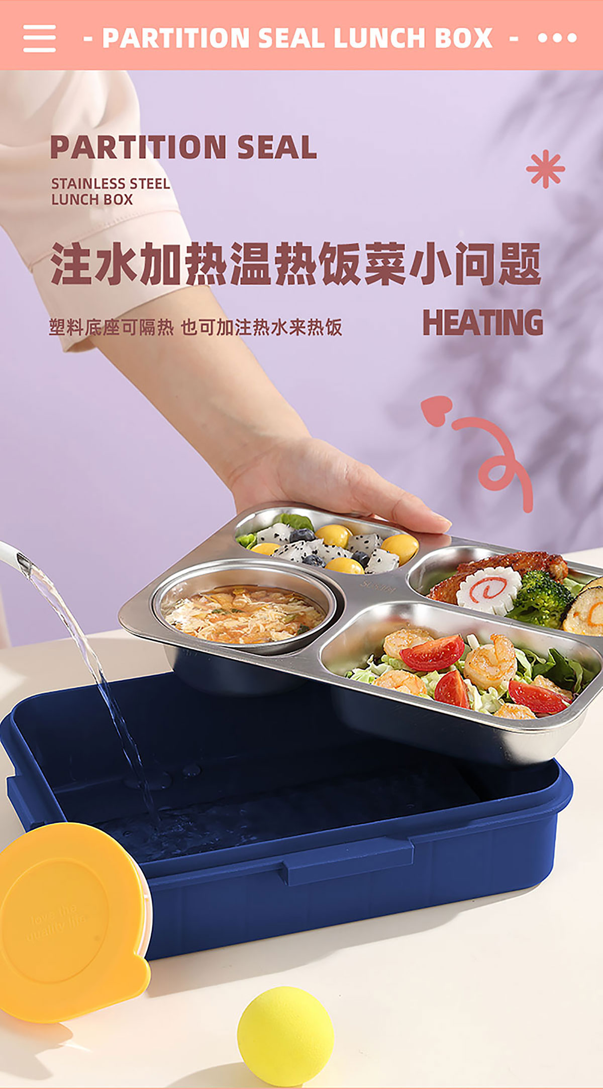 AQX-2623:262*193*65mm/不銹鋼4格900ml+鋼碗150ml