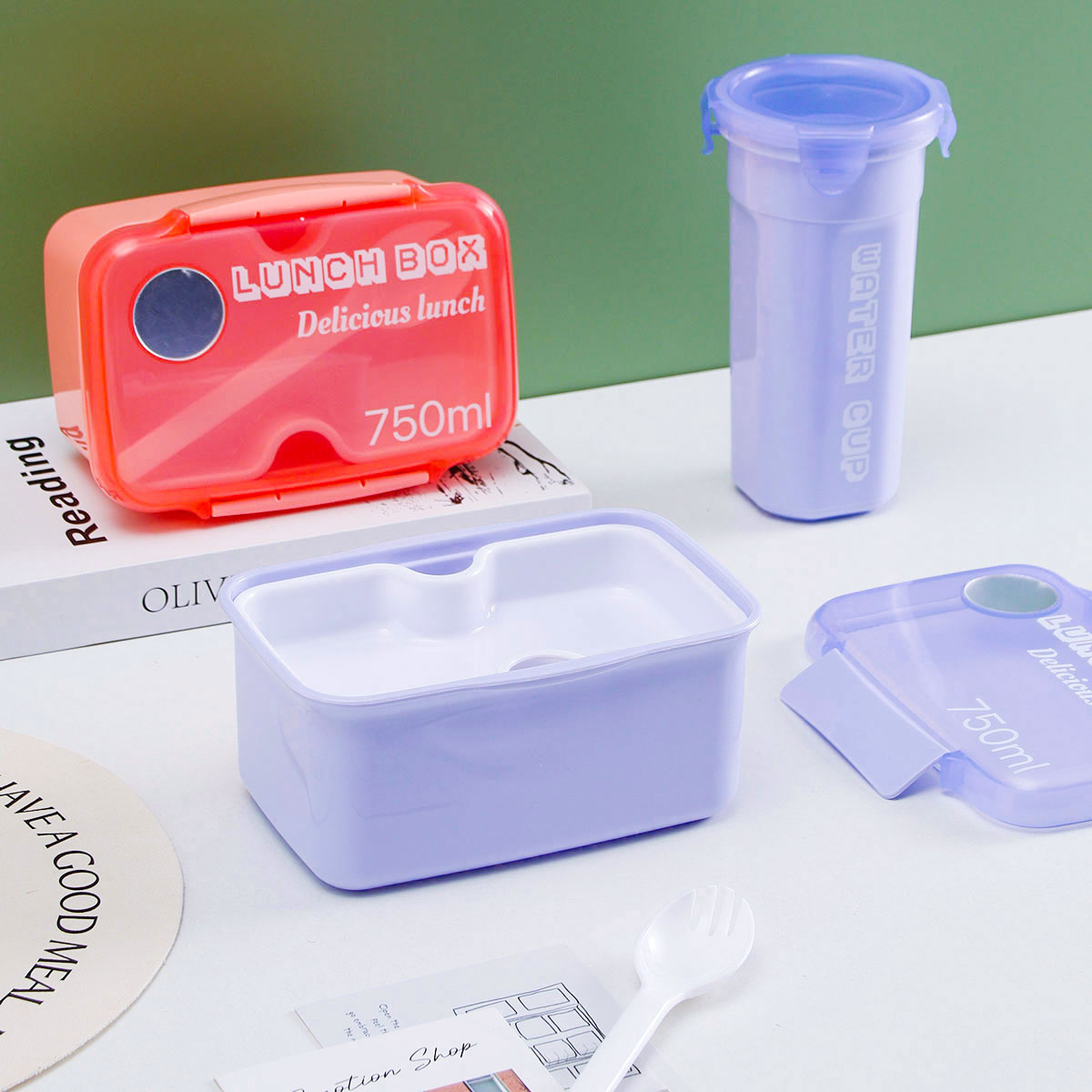 Size: 飯盒:165*120*214mm/750ml 水杯:?85*170mm/500ml
