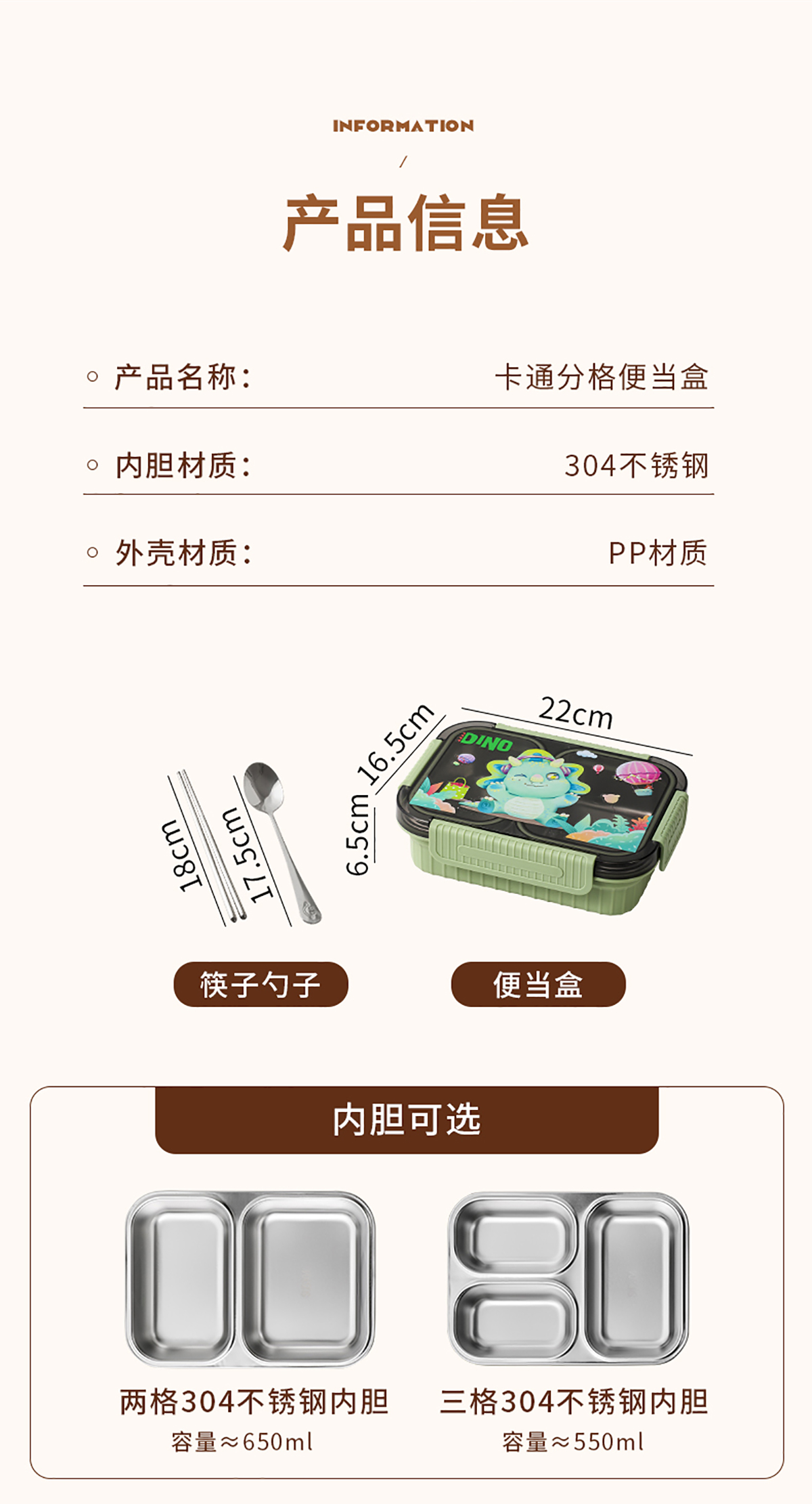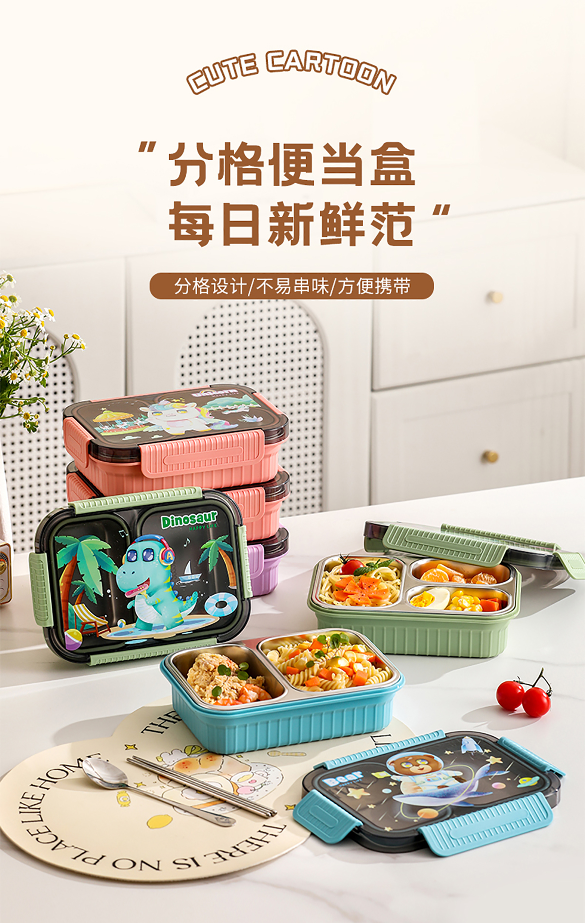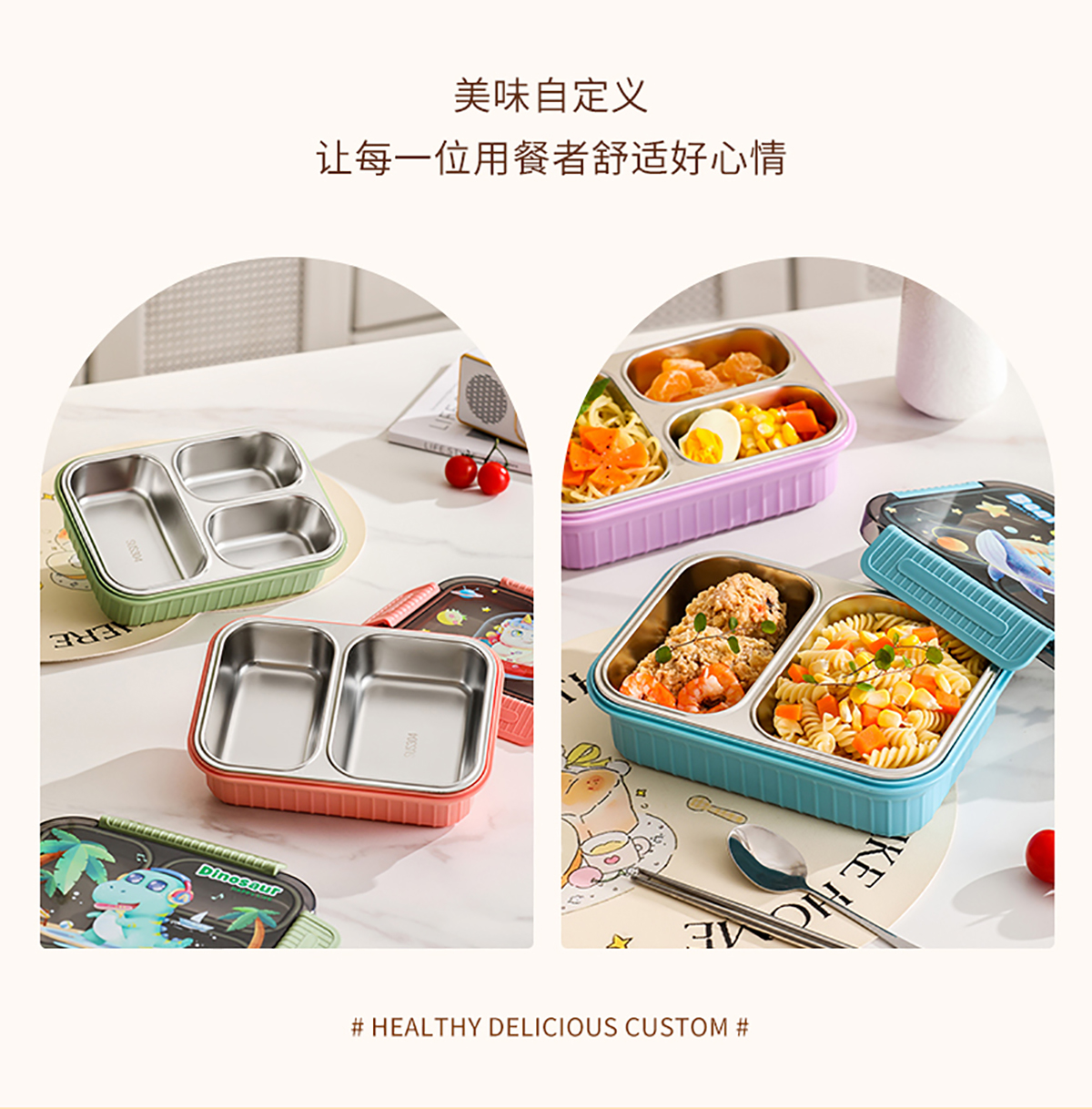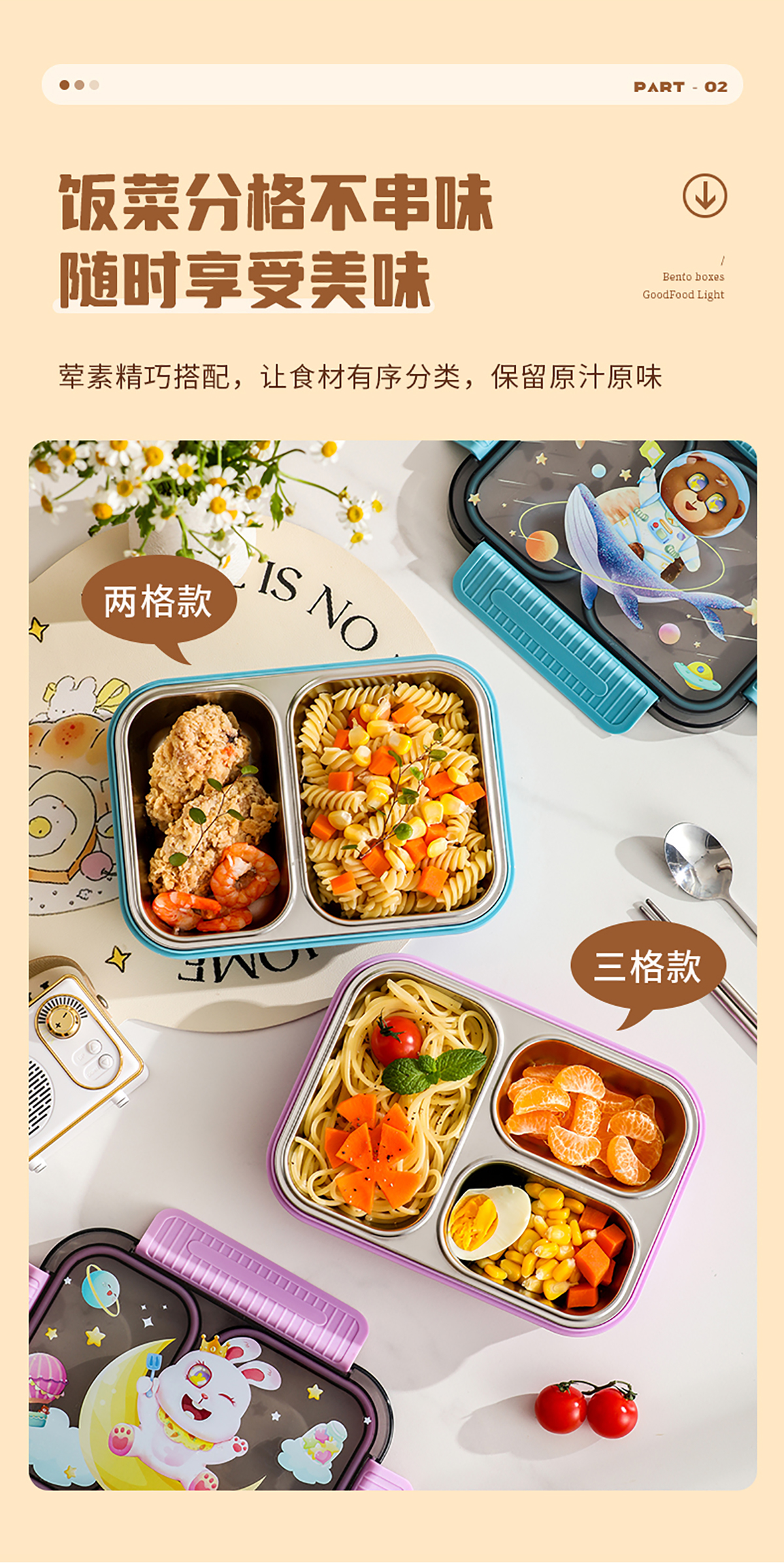小號(hào)卡通密封不銹鋼餐盒(二格/三格)