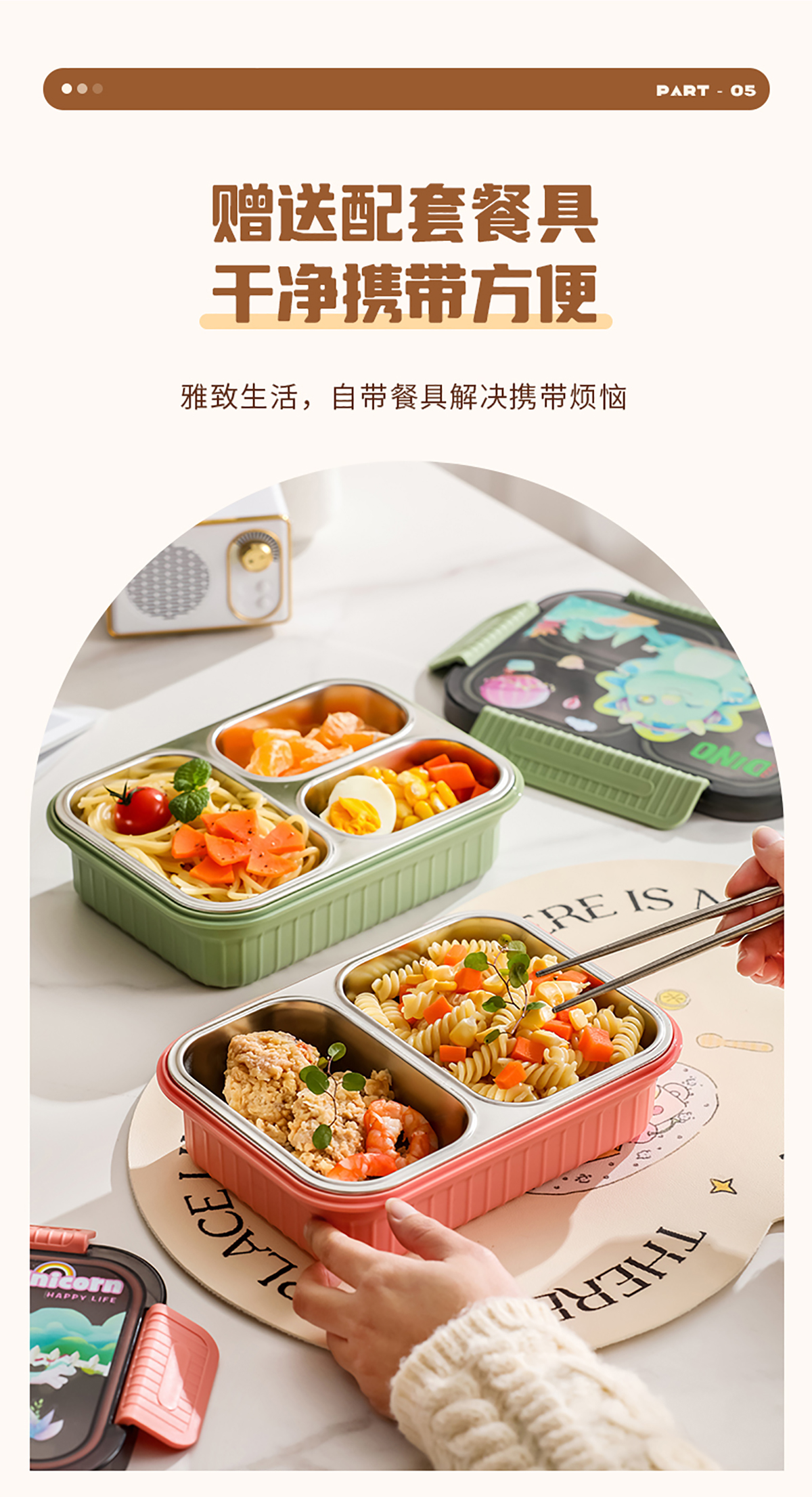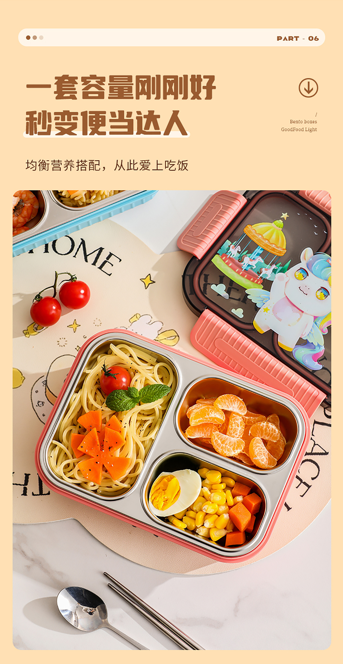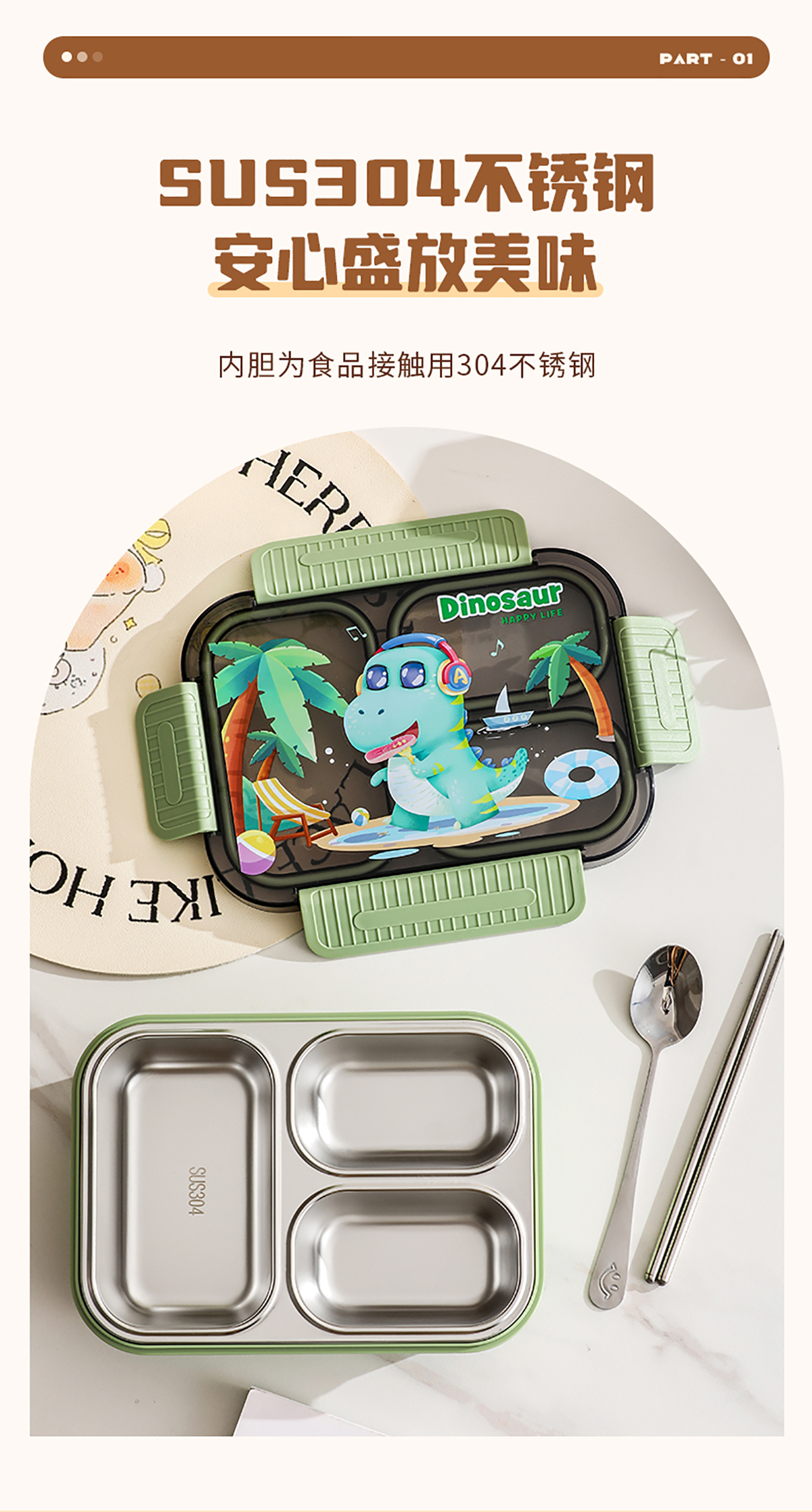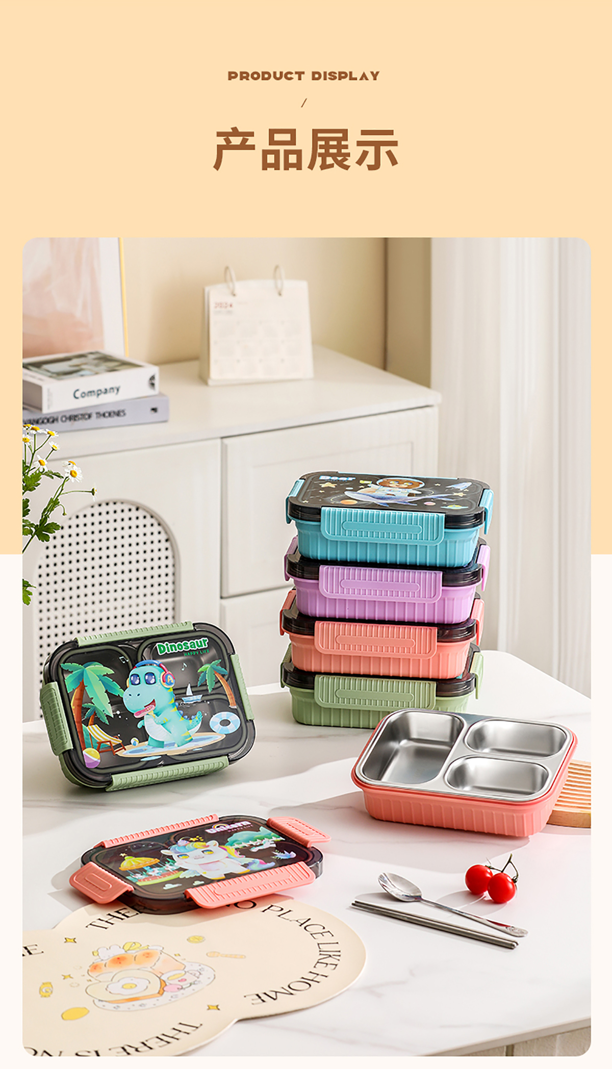 小號(hào)卡通密封不銹鋼餐盒(二格/三格)