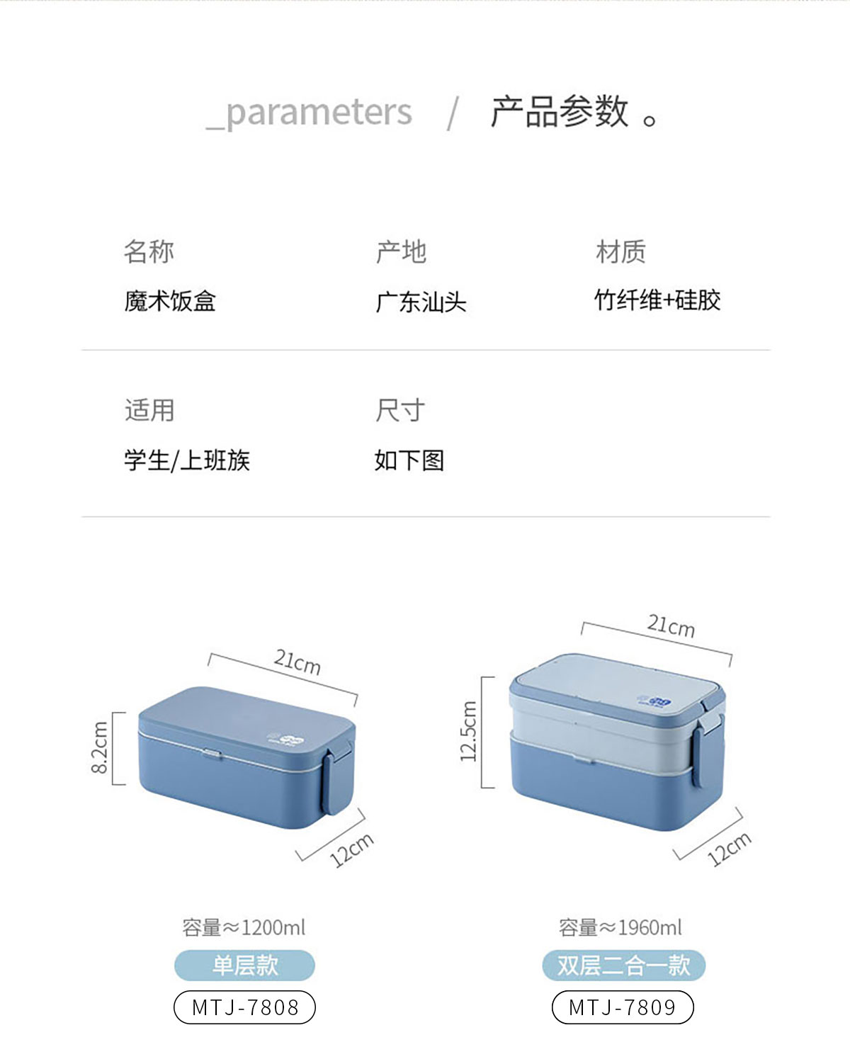 MTJ-7808(單層):210*120*82mm/1200ml