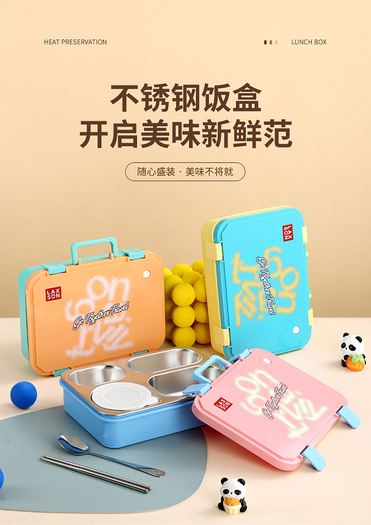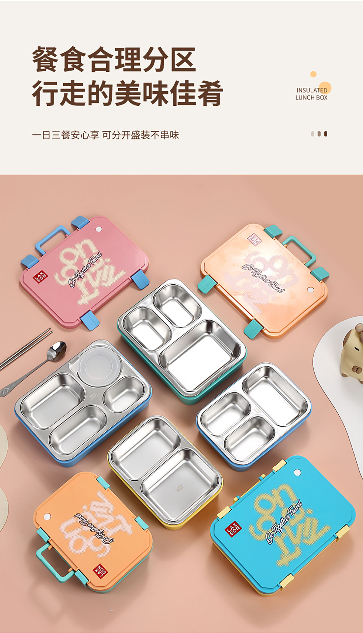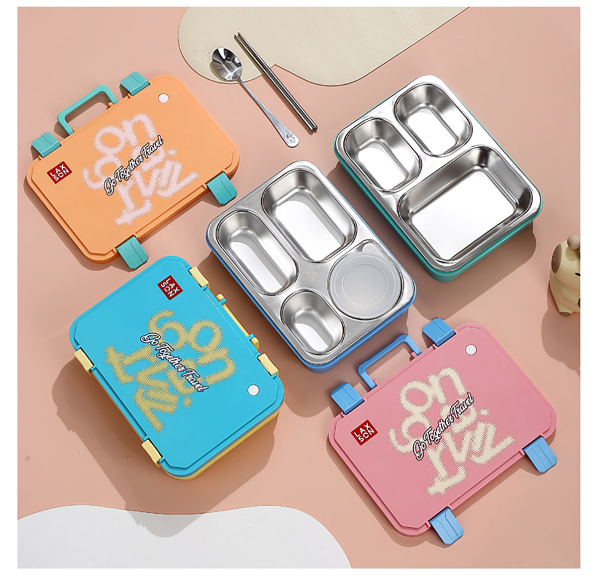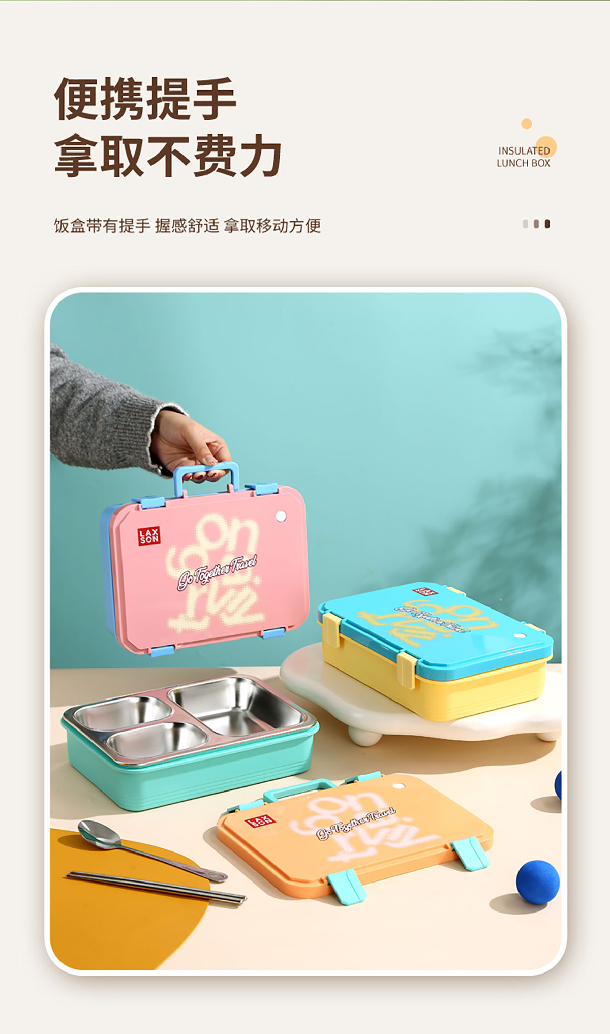 手提旅行箱獨立密封二格/三格/四格帶碗不銹鋼餐盒
