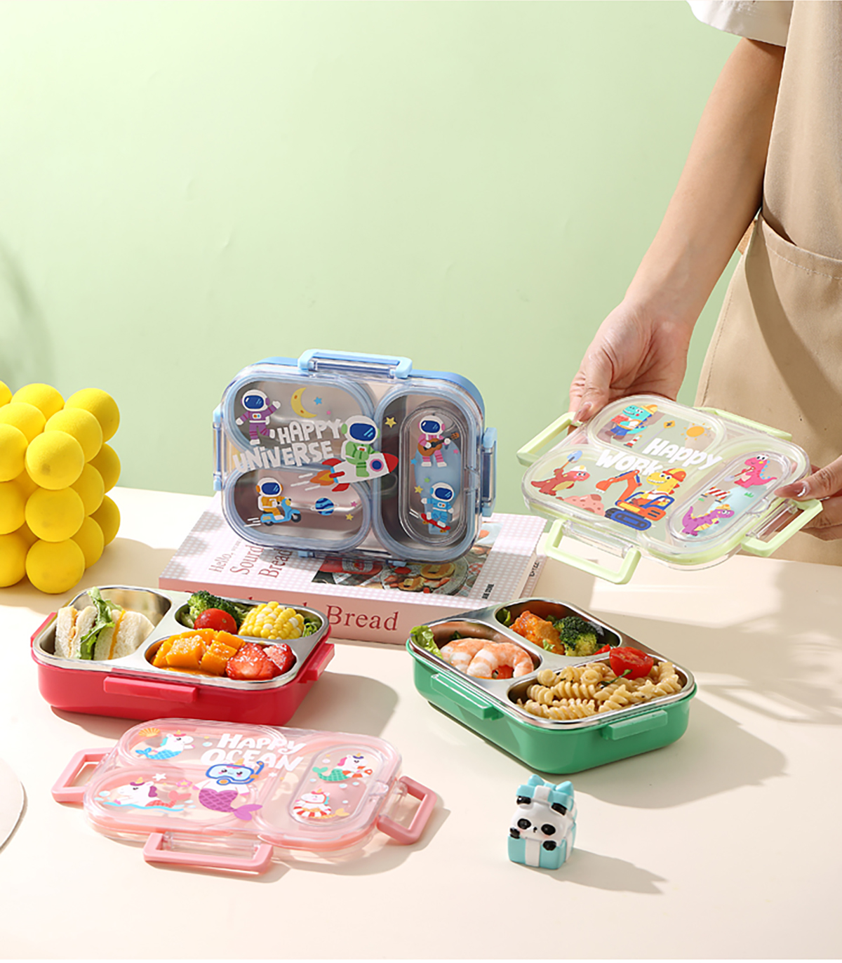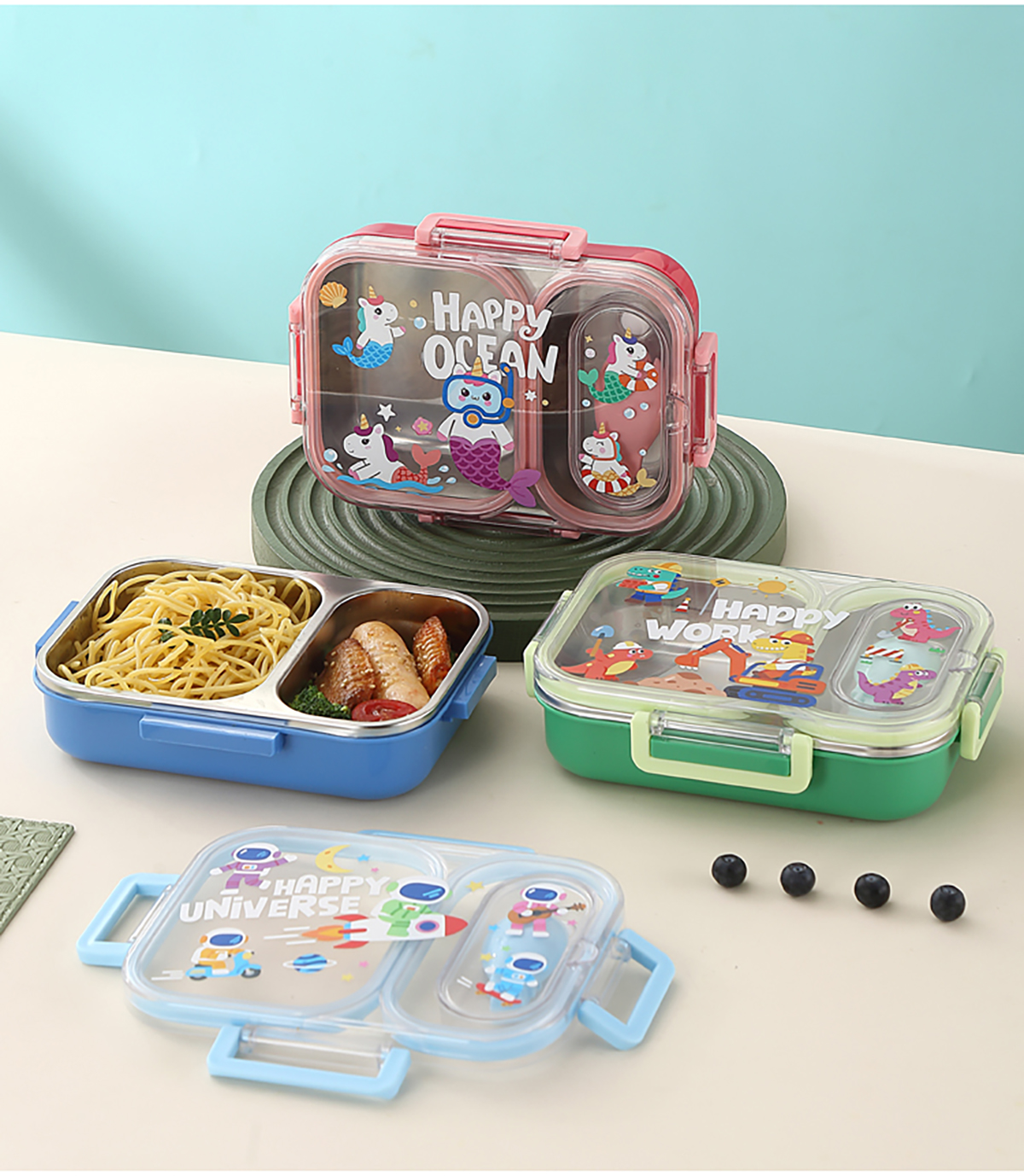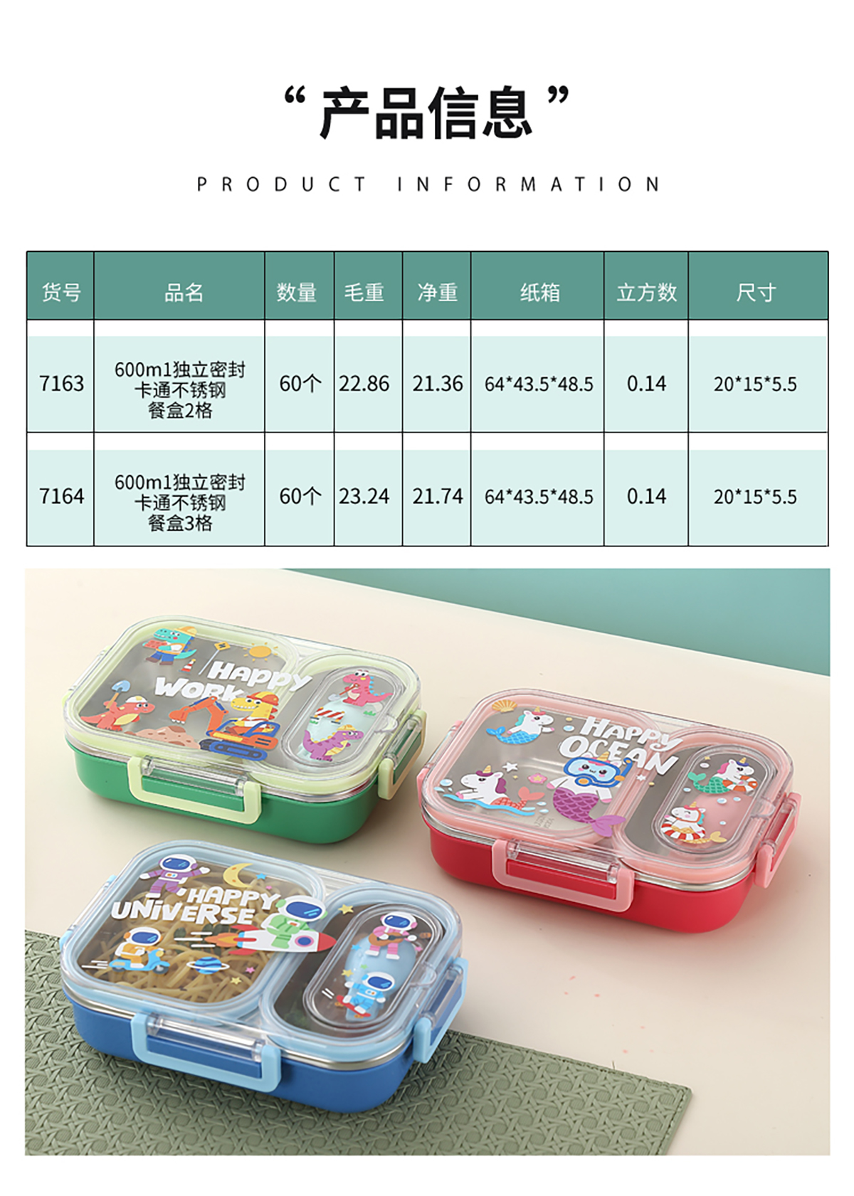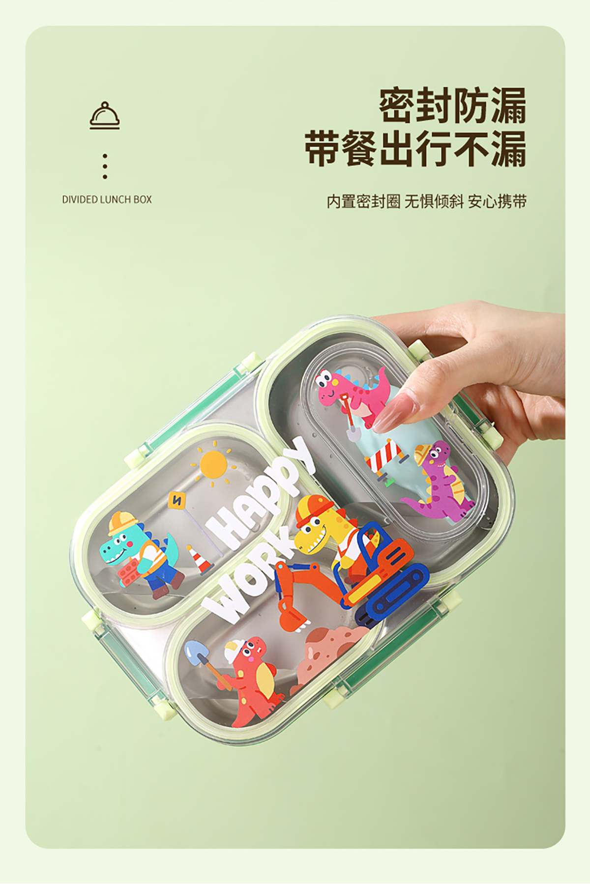 600ml UV獨(dú)立密封卡通不銹鋼餐盒2格/3格 (配PP折疊湯勺)