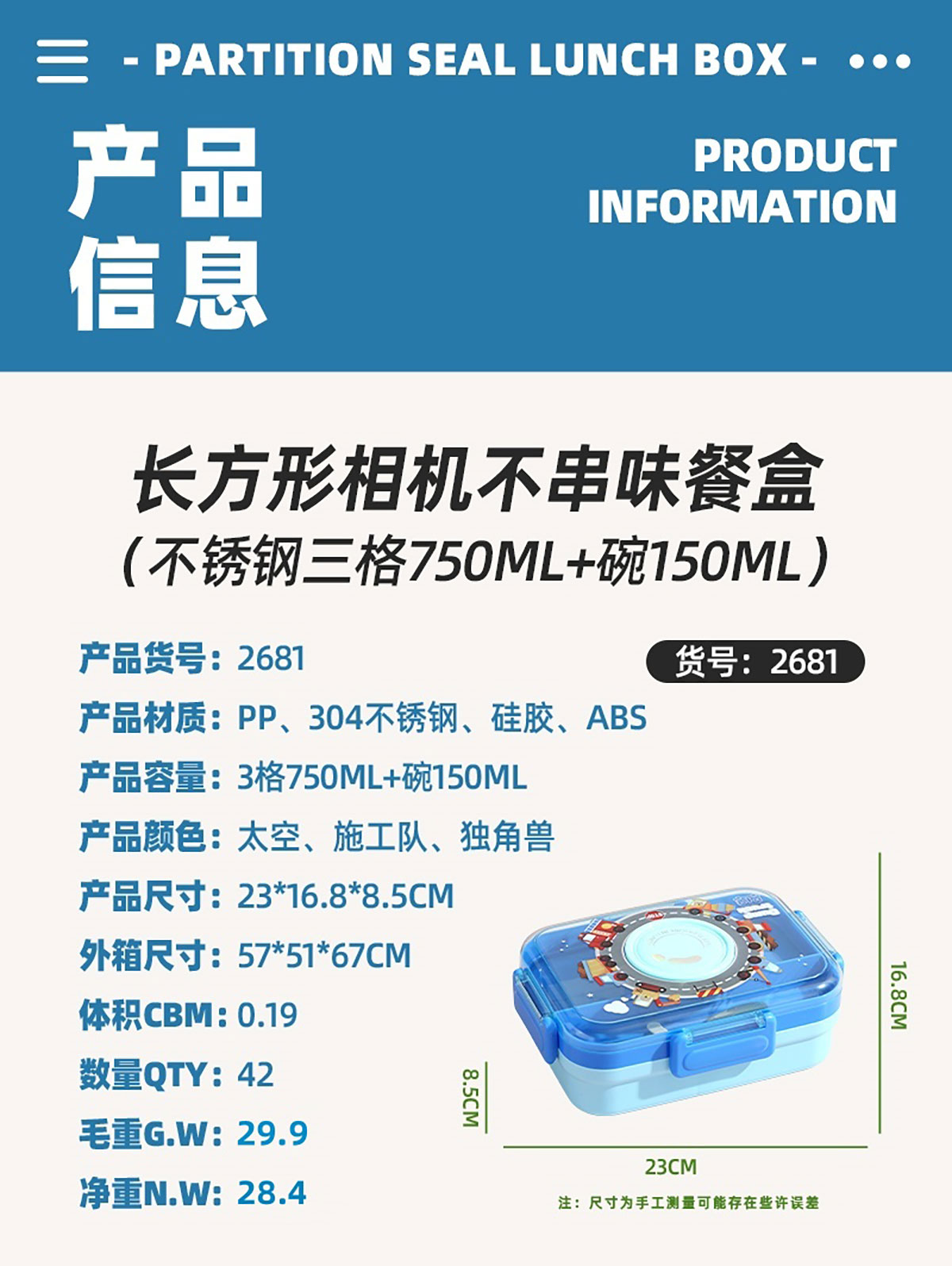 Size: 230*168*85mm/750ml+碗150ml