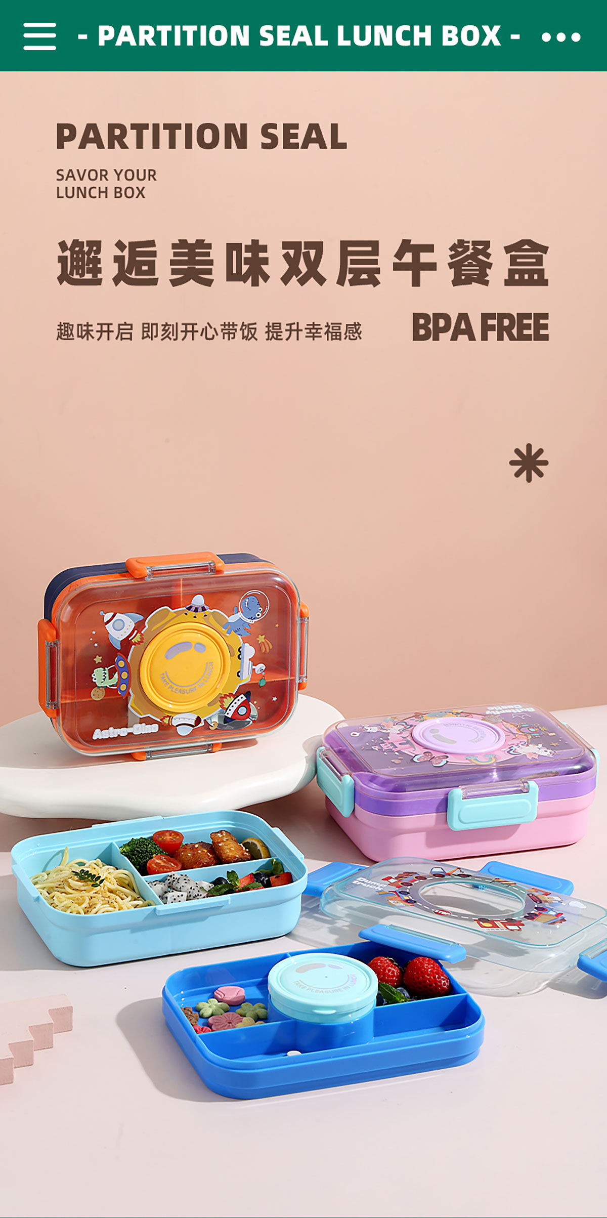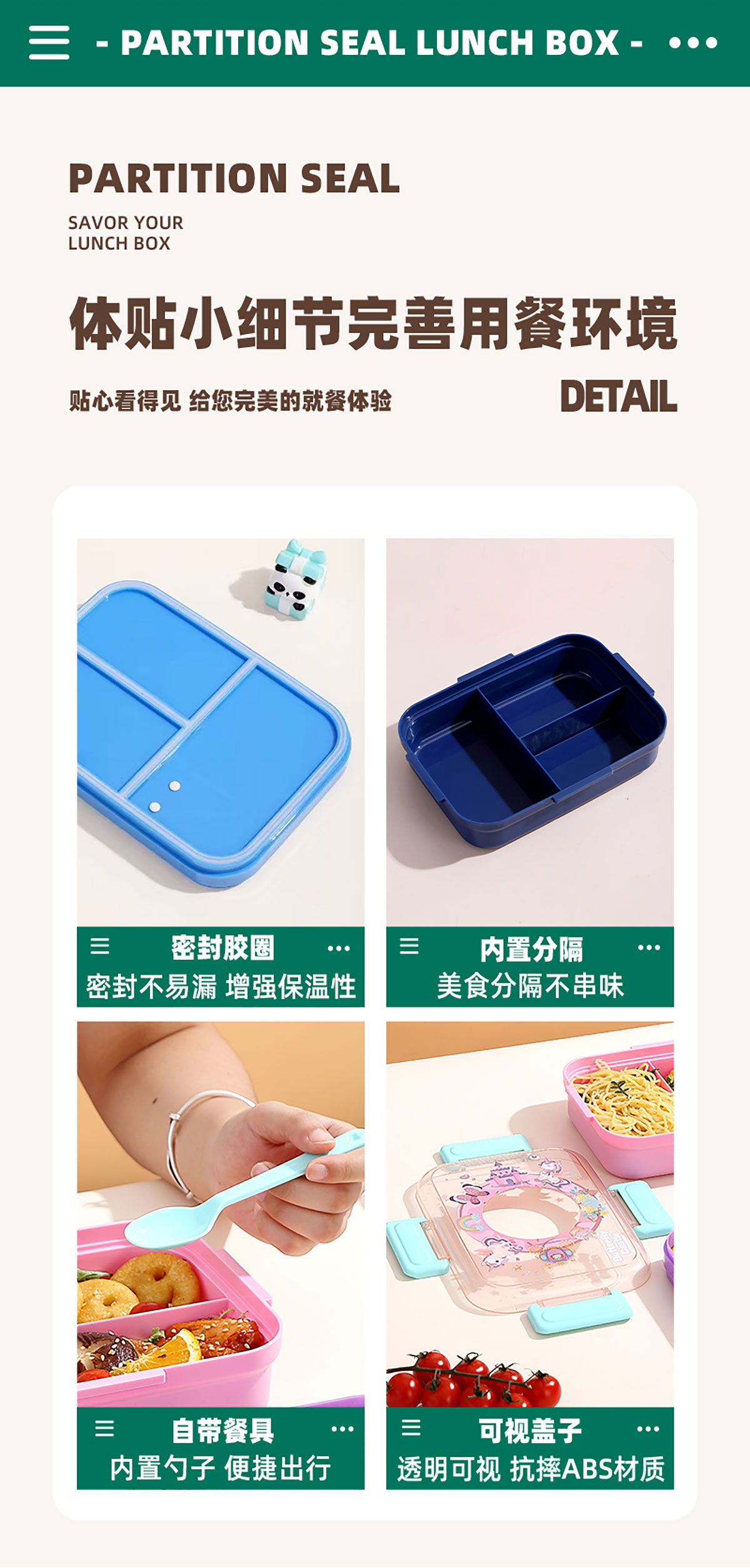 相機(jī)不串味餐盒(長(zhǎng)方形塑料三格1270ml+碗150ml+PP勺)