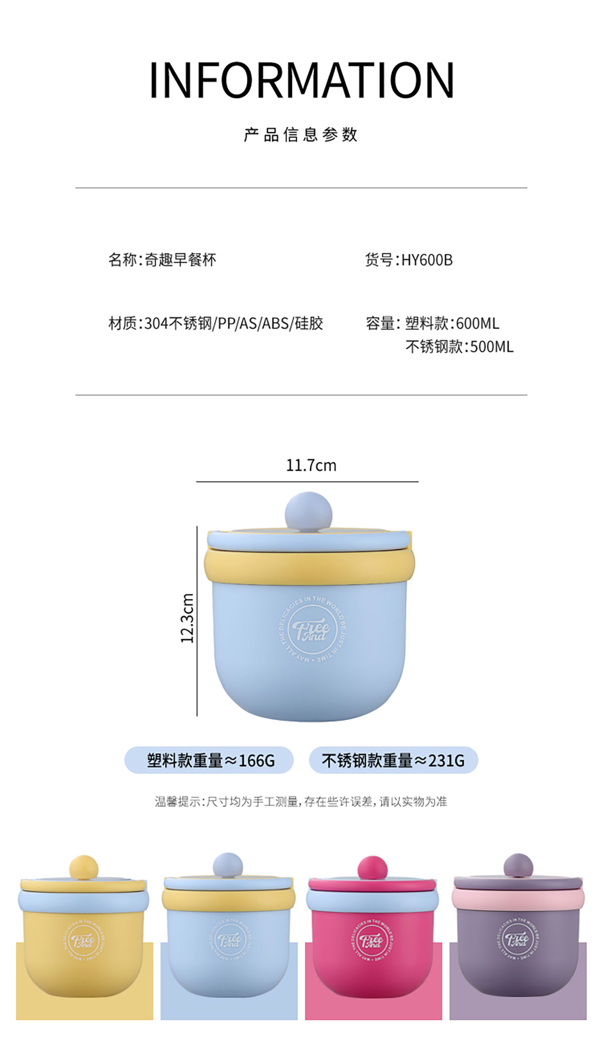 Size: PP款:直徑117*123mm/600ml