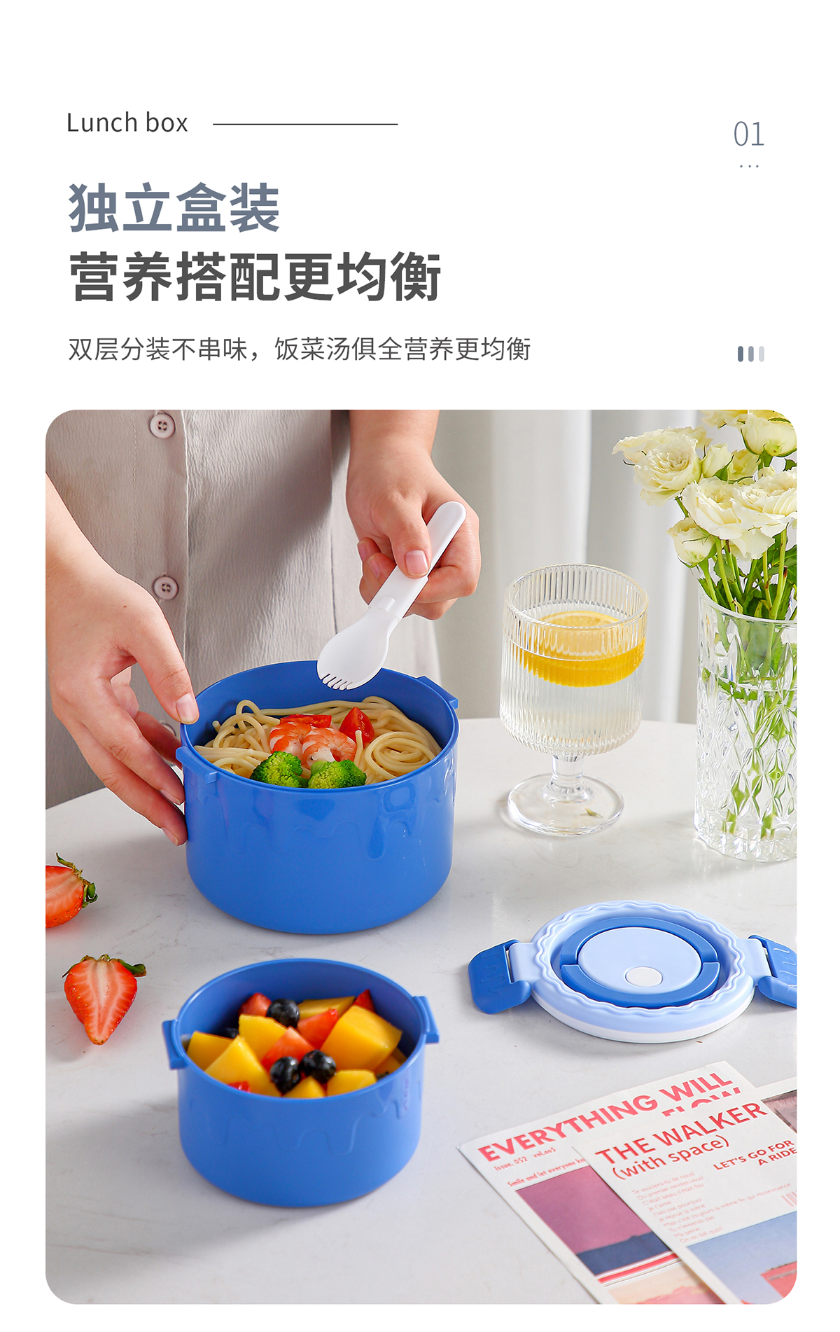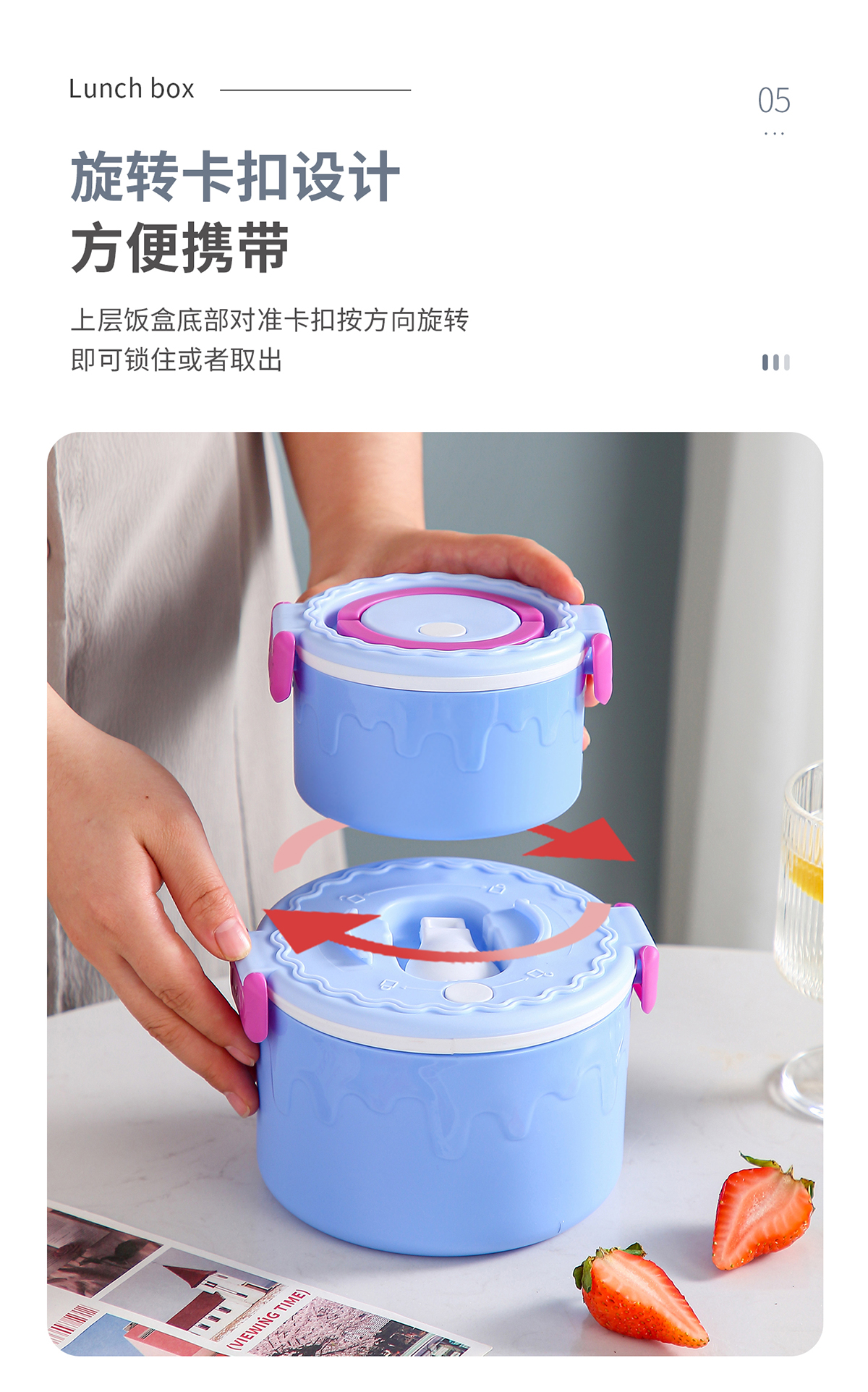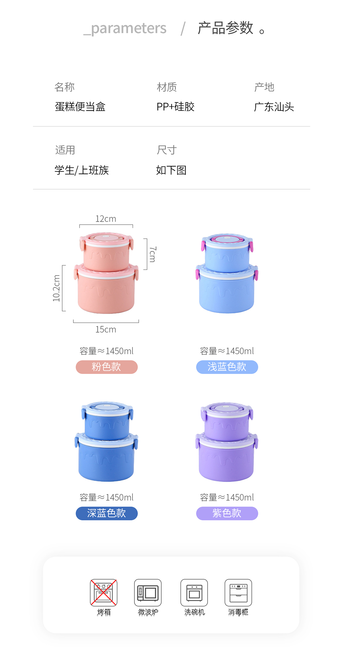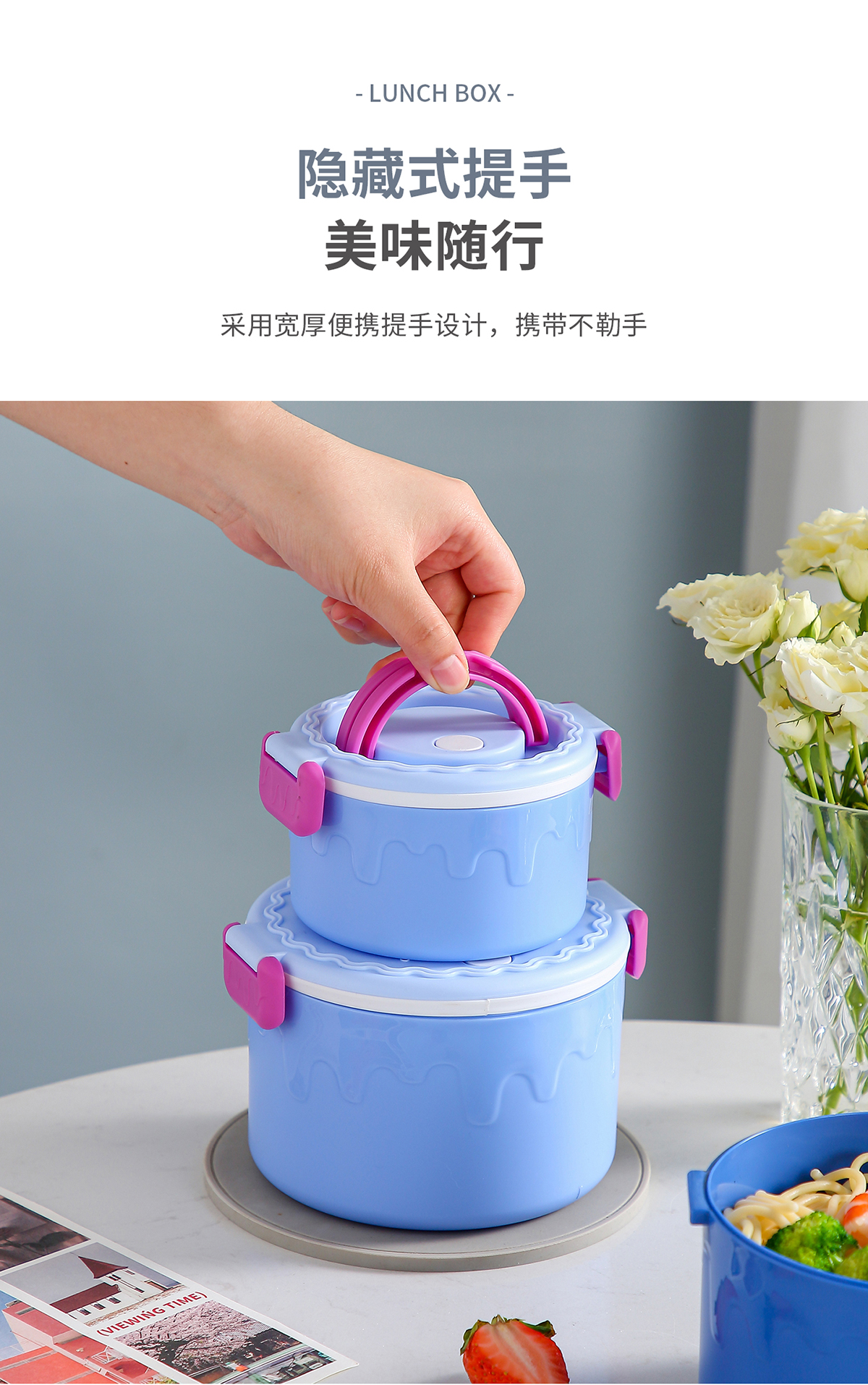 蛋糕圓形塑料雙層飯盒1000ml+380ml