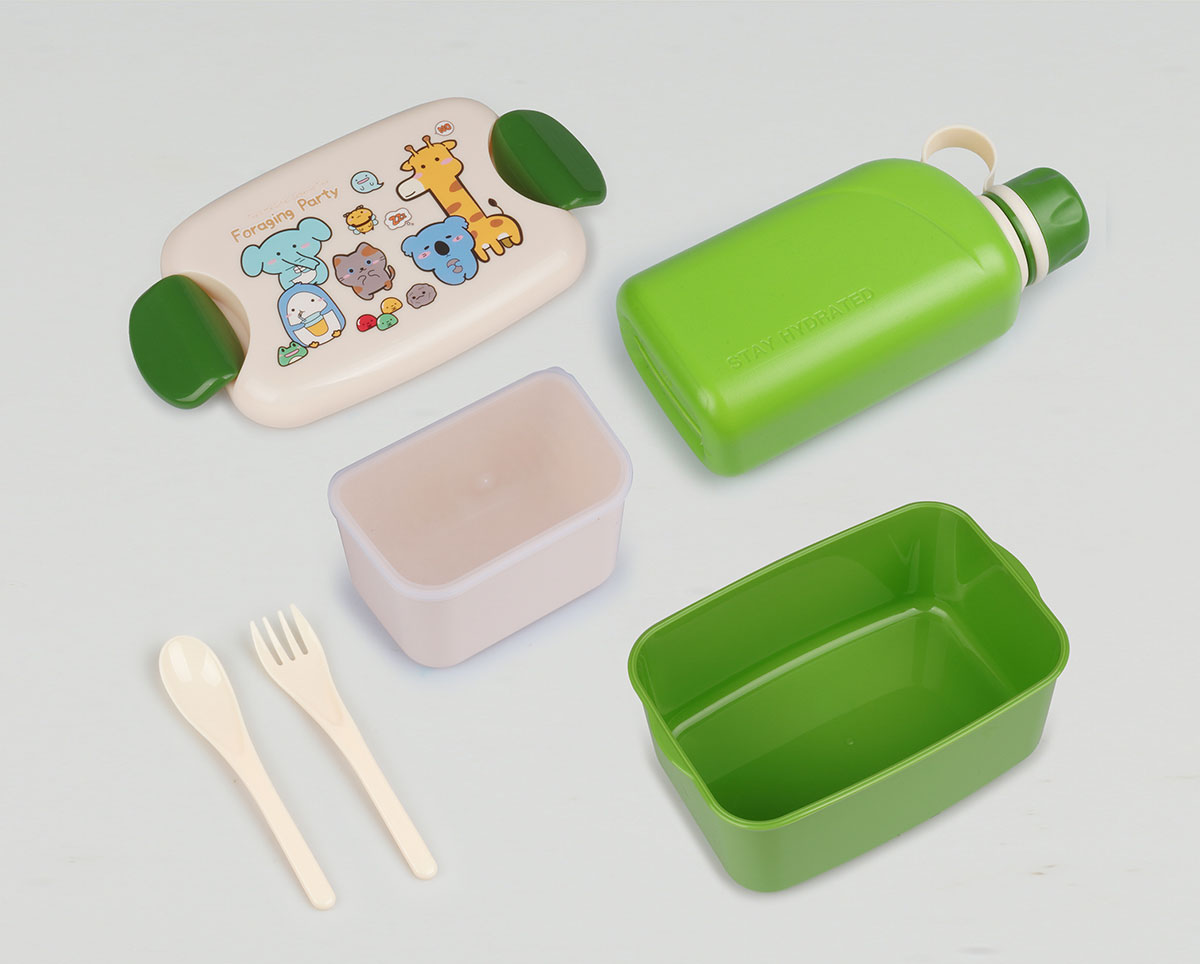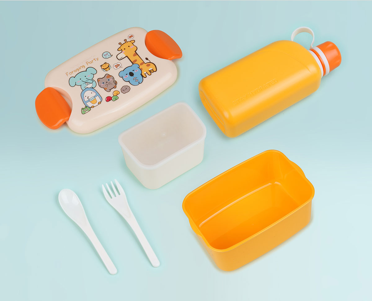 尚趣迷你耳朵飯盒(900ml)(含格子)+方形運(yùn)動(dòng)水壺(500ml)