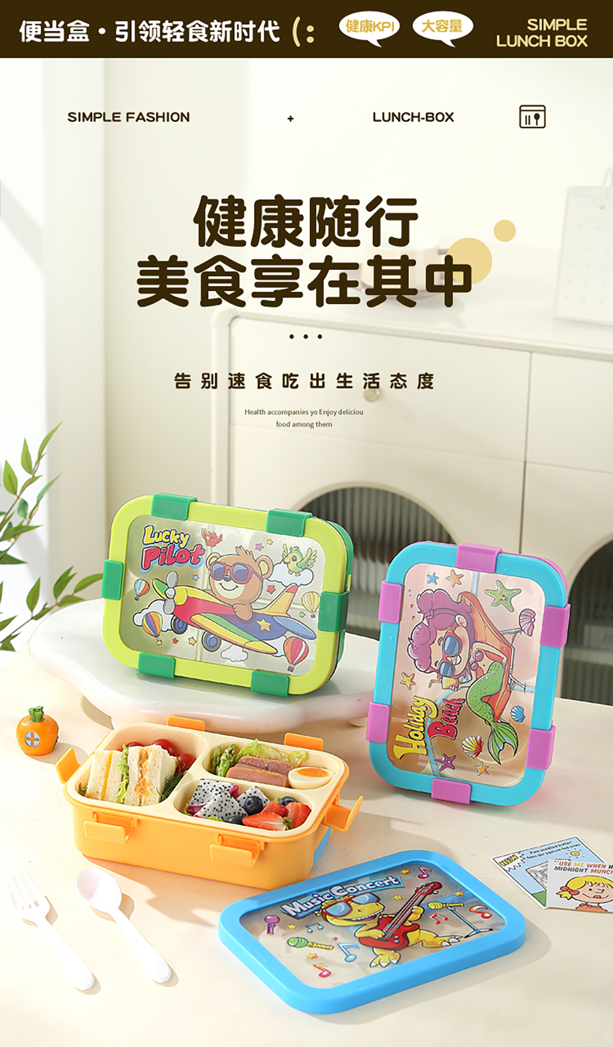 星樂便當盒PP/卡通款 下單可選(三格700ml)/(三格碗型650ml)