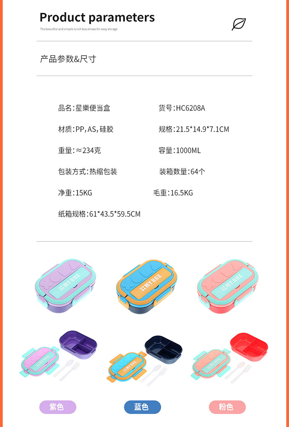 Size: SWY-HC6208A(三格PP款):215*149*71mm/1000ml