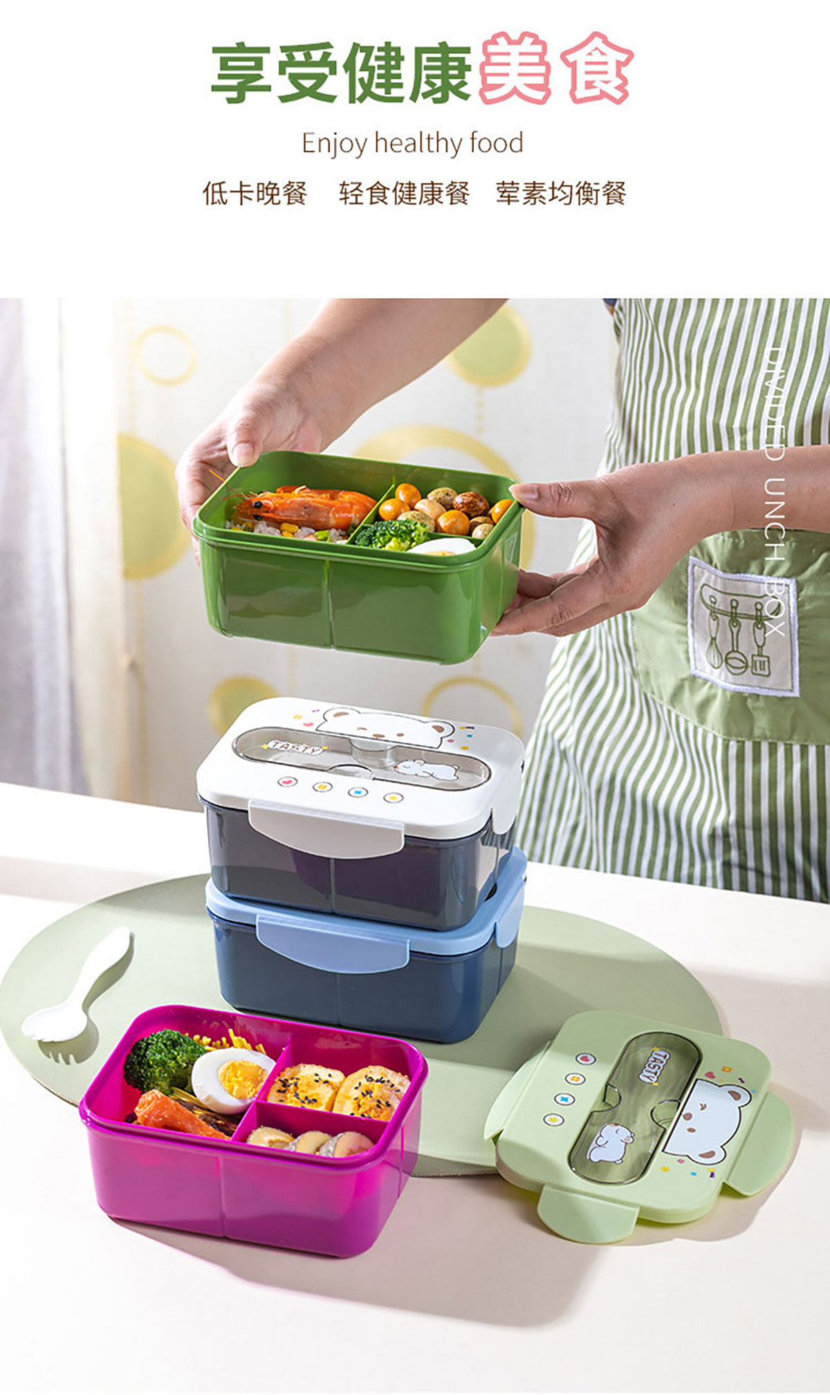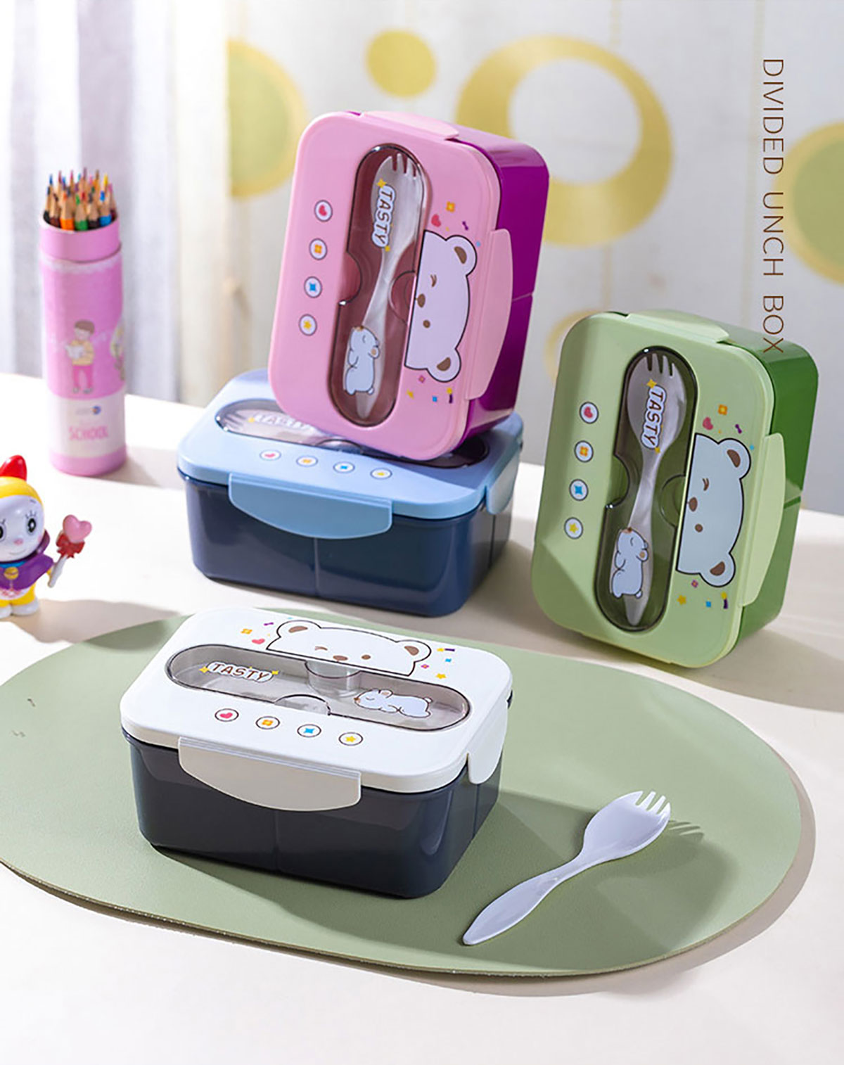 小熊三格飯盒1200ml