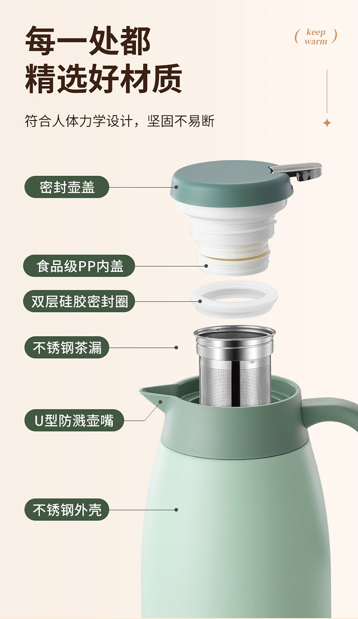 2.0L砂光不銹鋼吉祥壺