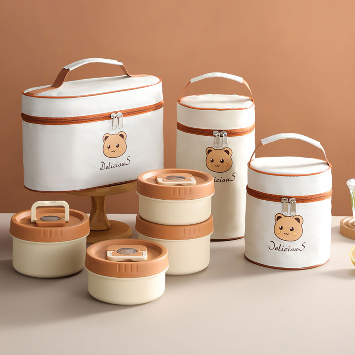 兩個(gè)/三個(gè)/四個(gè)裝帶保溫袋圓形飯盒套裝