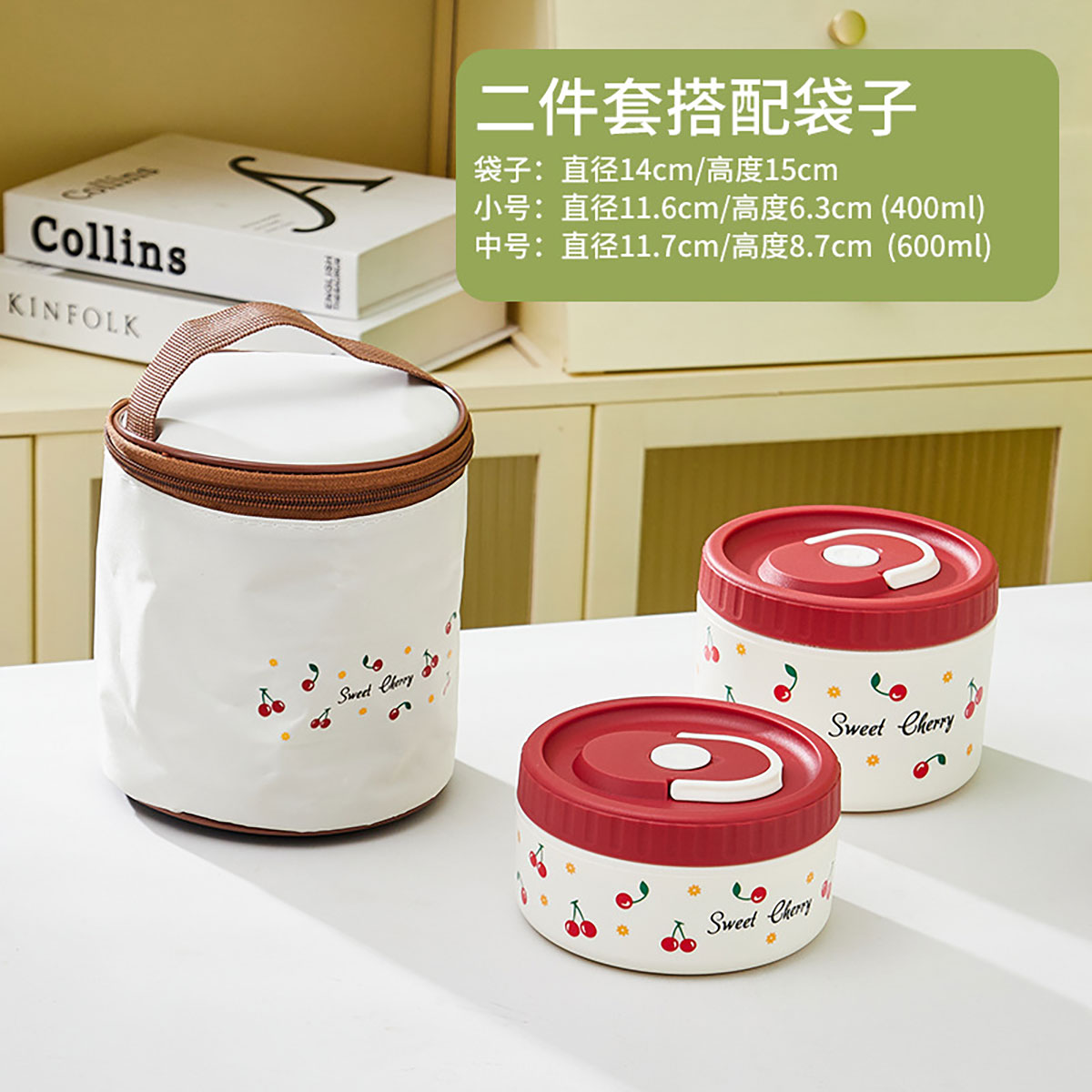 Size: MSN-1038(二層):袋子:直徑140*150mm 小號(hào):直徑116*63mm(400ml) 中號(hào):直徑117*87mm(600ml)